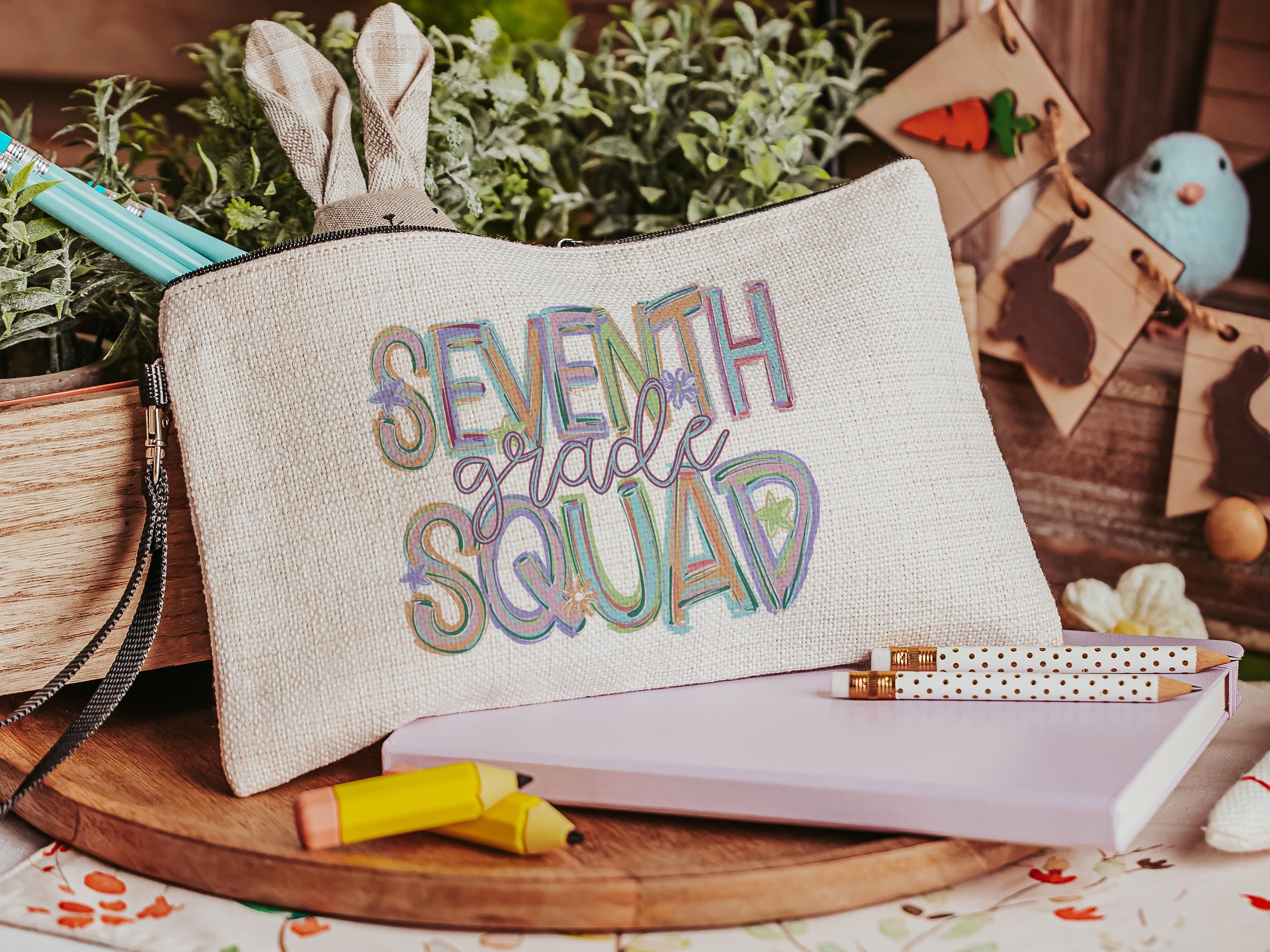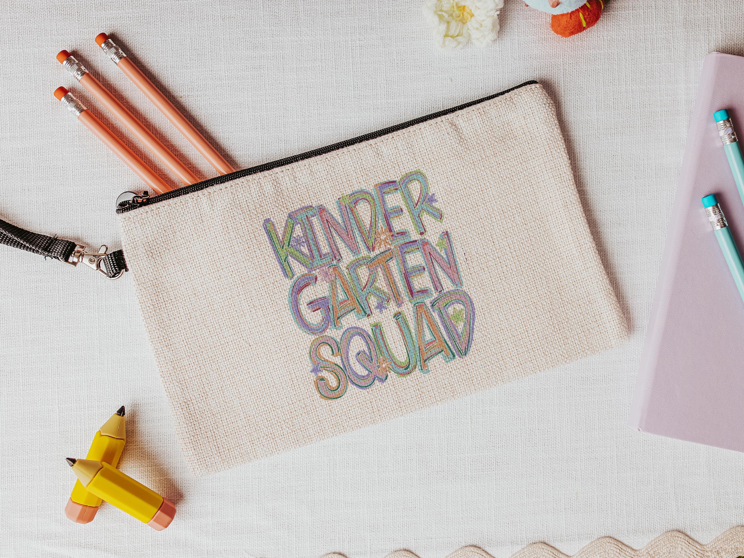 A fun and practical way to keep school supplies organized, this Pre-K Squad pencil pouch with zipper is perfect for preschoolers, teachers, or first day of school gifts. Great for backpacks, teacher supplies, or preschooler surprises. Other grade levels are available too for the whole school crew!