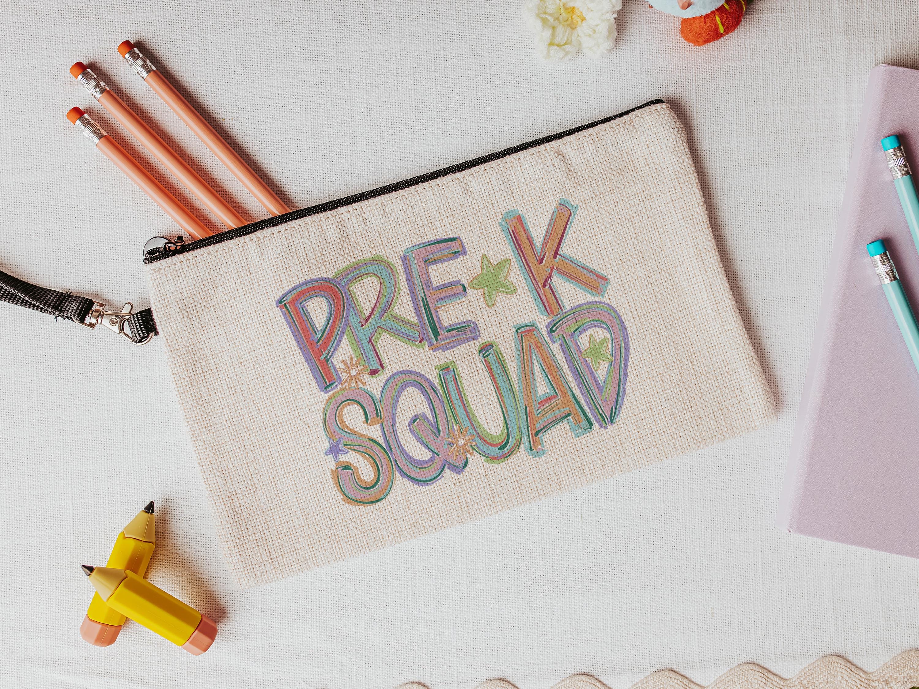 pre k squad pencil pouch with zipper, first day of preschool teacher supplies, preschooler gifts for kids, back to school gifts for girls