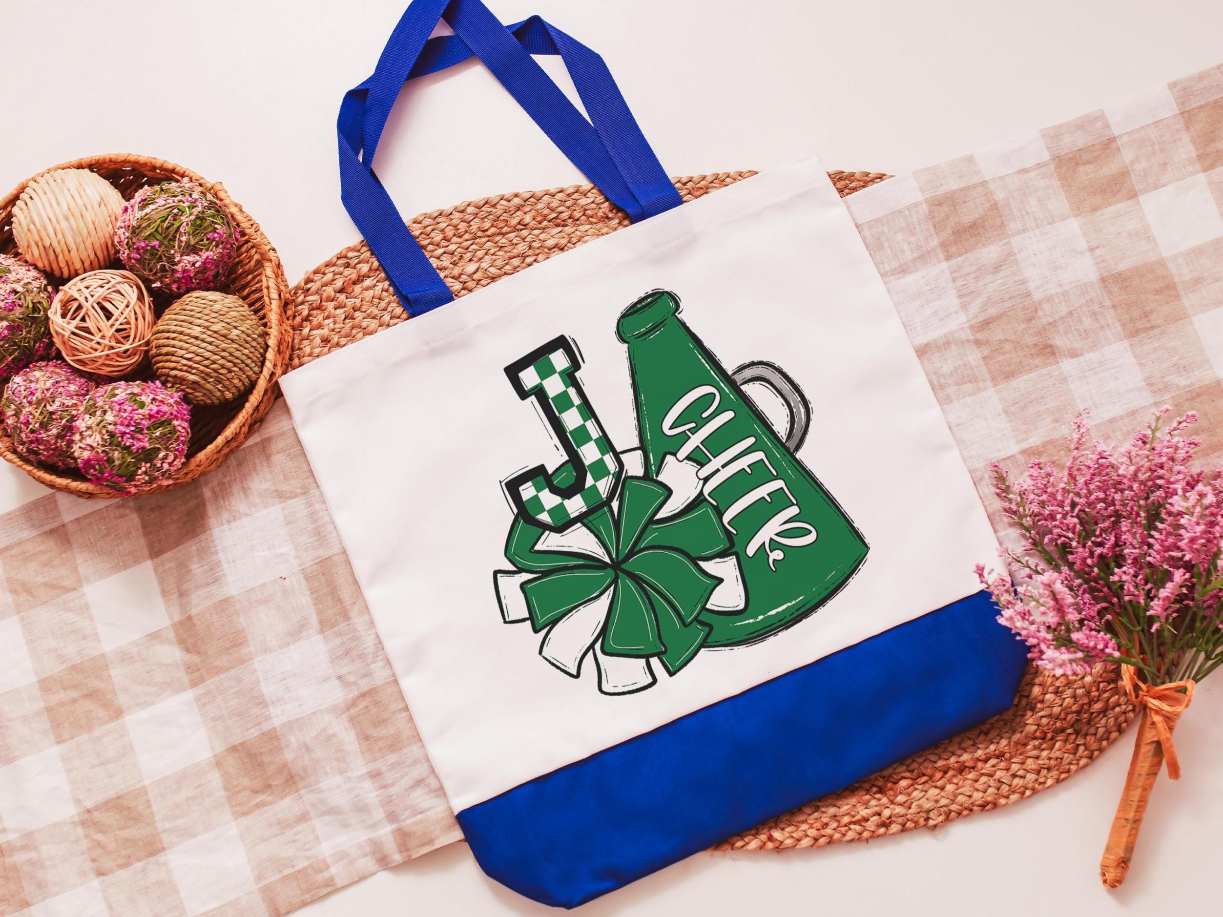 personalized Carolina blue cheer coach tote bags for women, cheer squad gifts, initial tote bag for teen girls, cheerleader gifts for girls