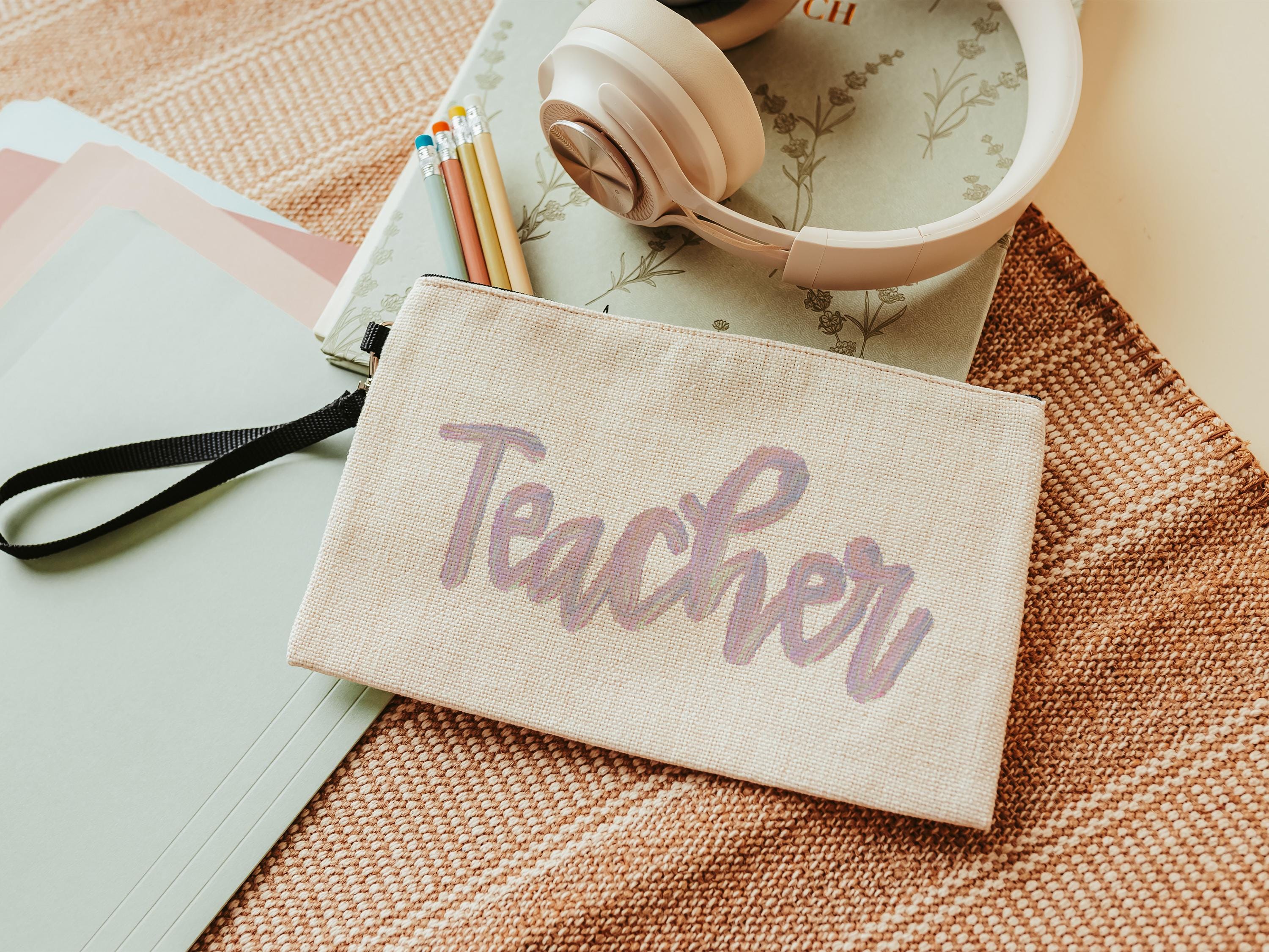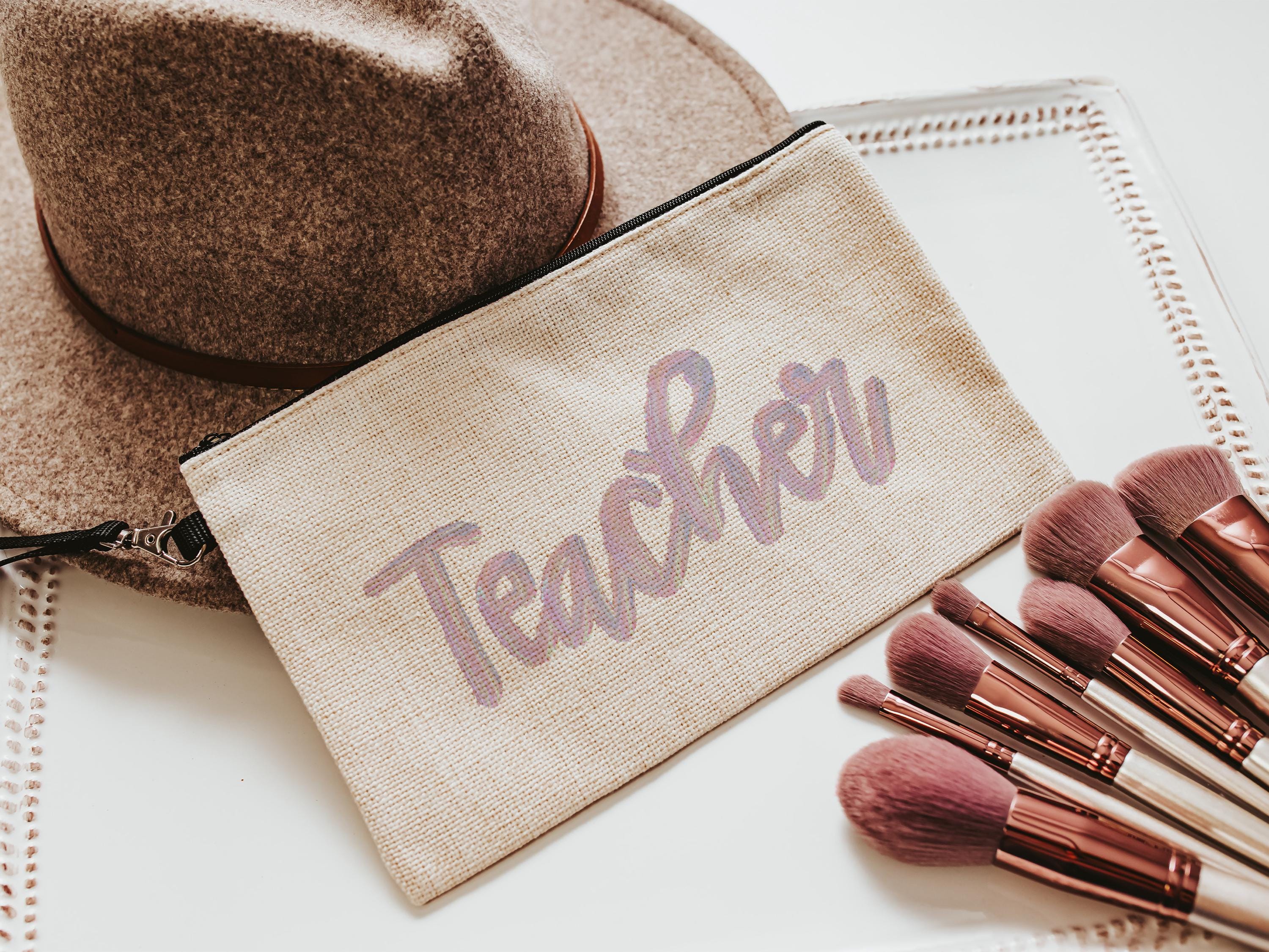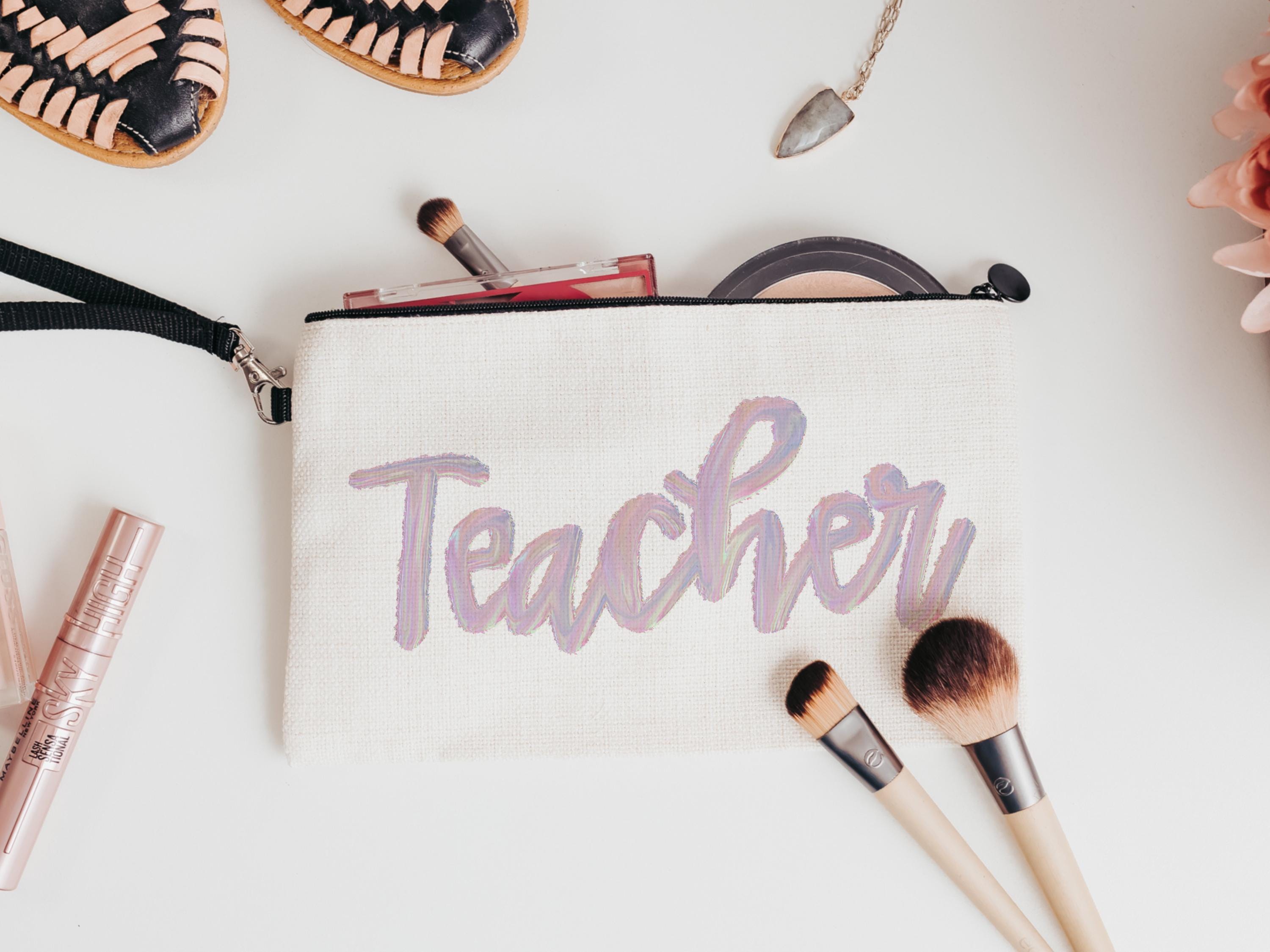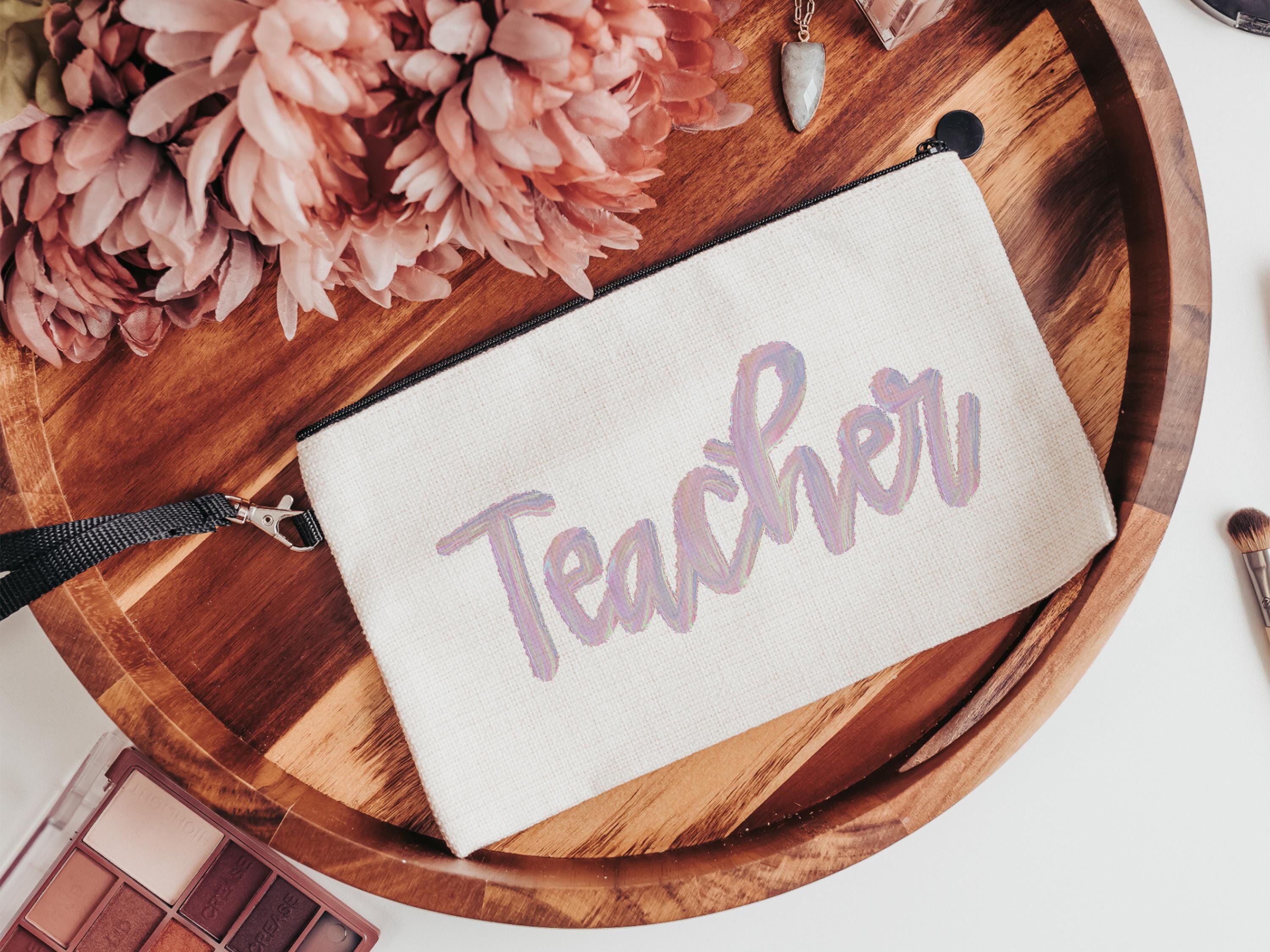 A cute pencil bag made just for teachers—perfect for holding pens, markers, or a little makeup on the go. It makes an easy stocking stuffer, a fun secret-Santa gift for a coworker, or a simple everyday pick-me-up for teachers who love practical but fun accessories.
