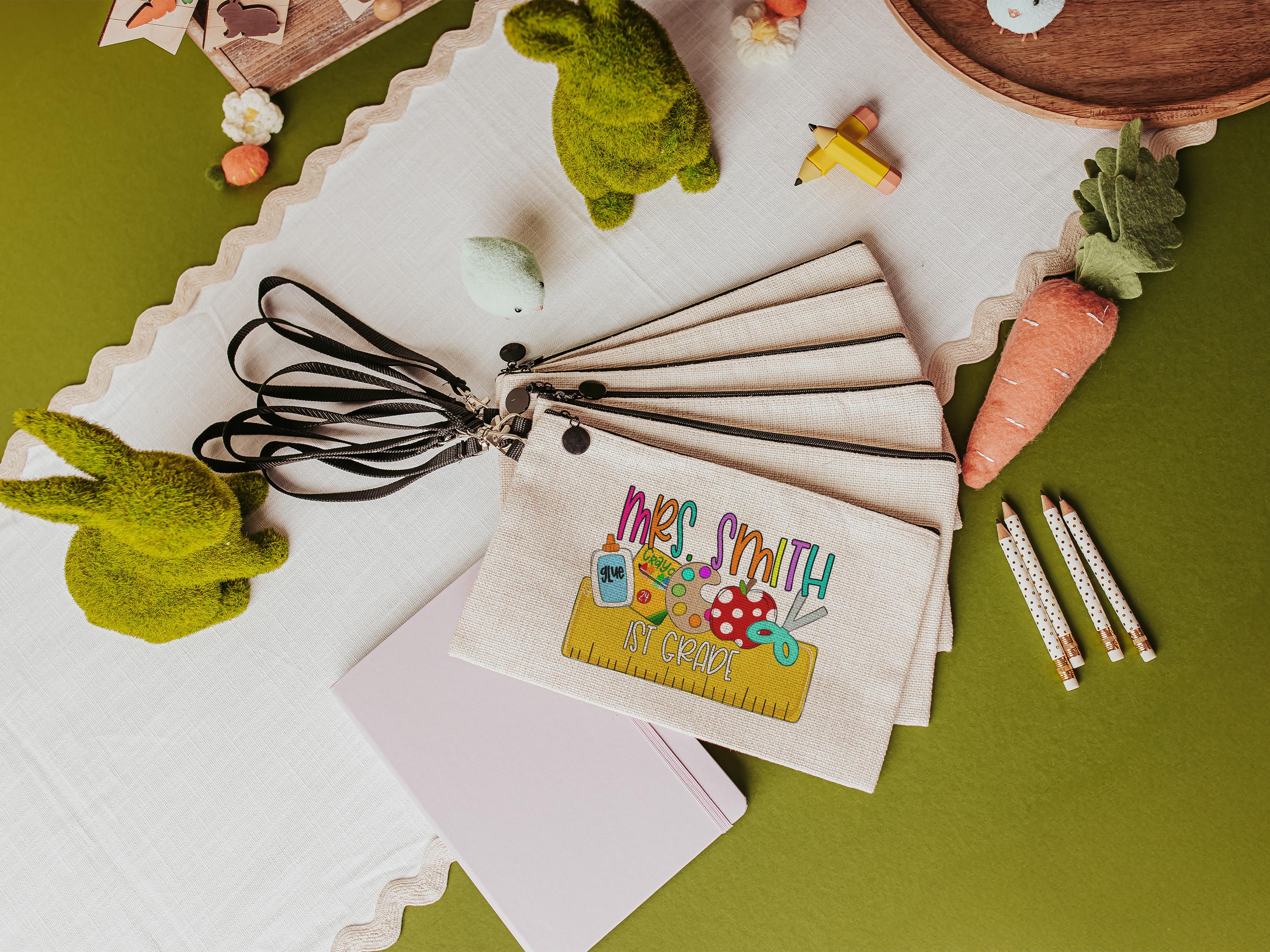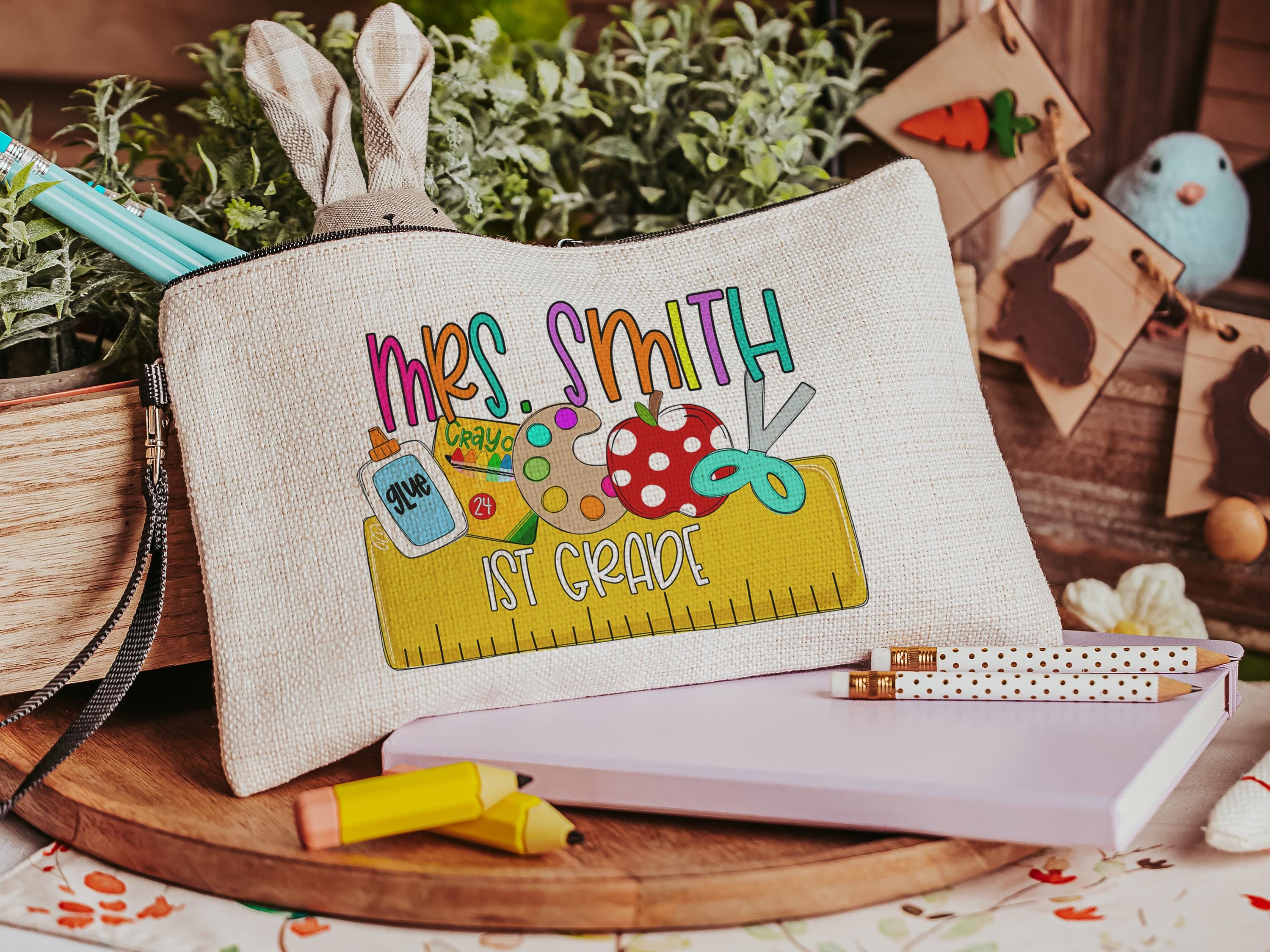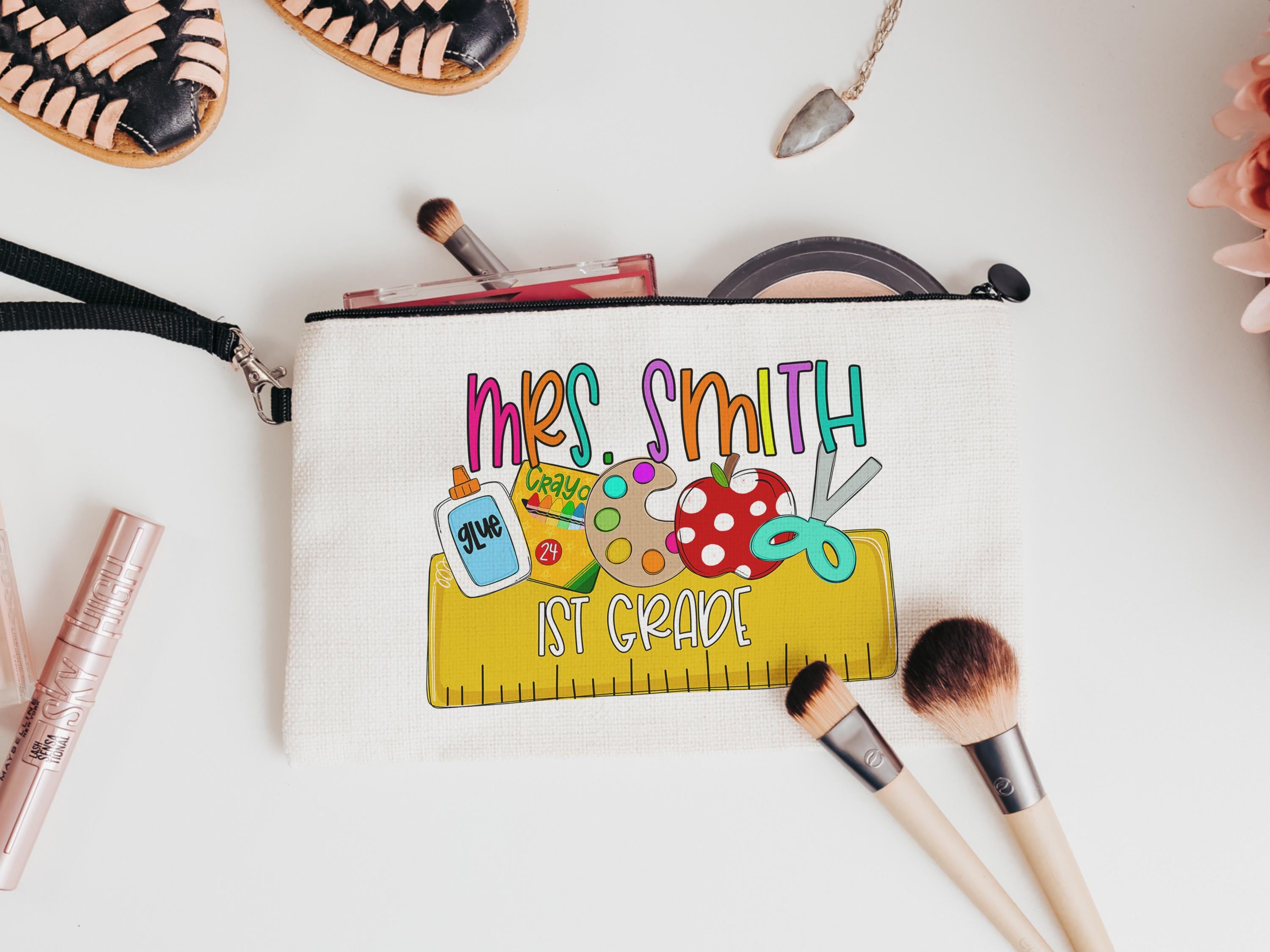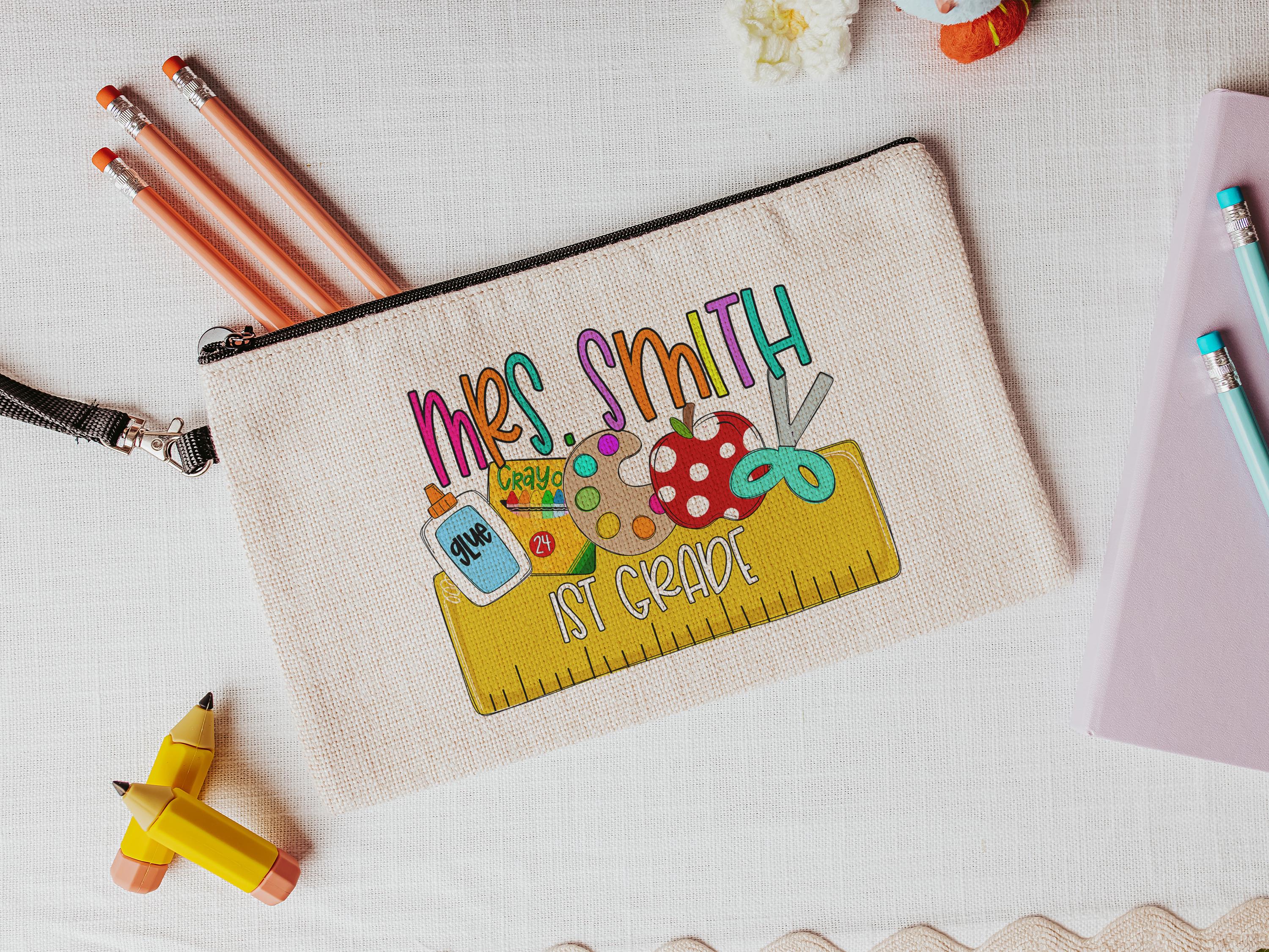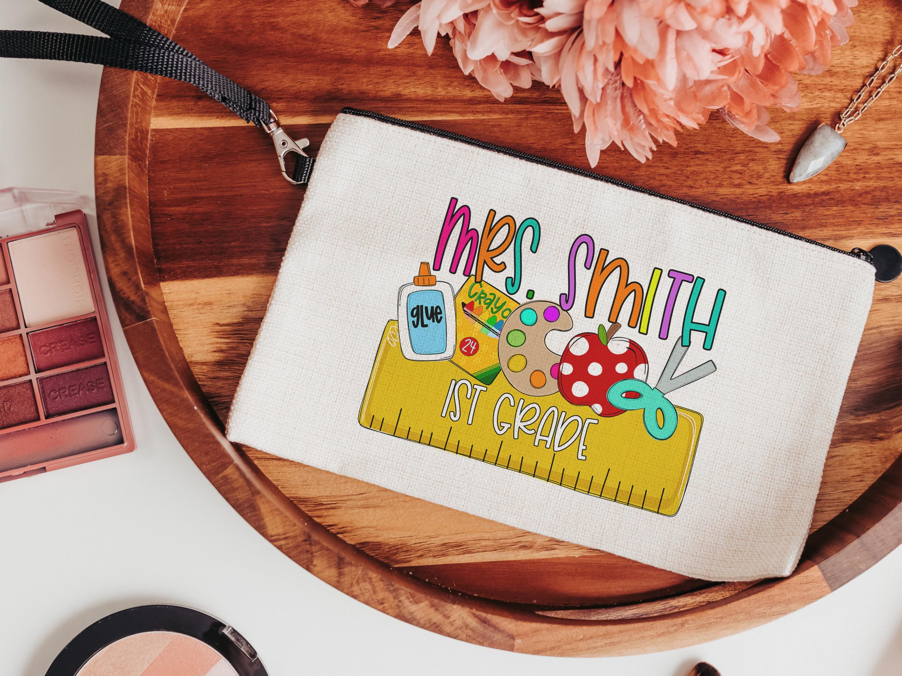personalized pencil pouch for teachers, school supplies, cute pencil bag for purse, back to school gifts for coworkers, first grade teacher