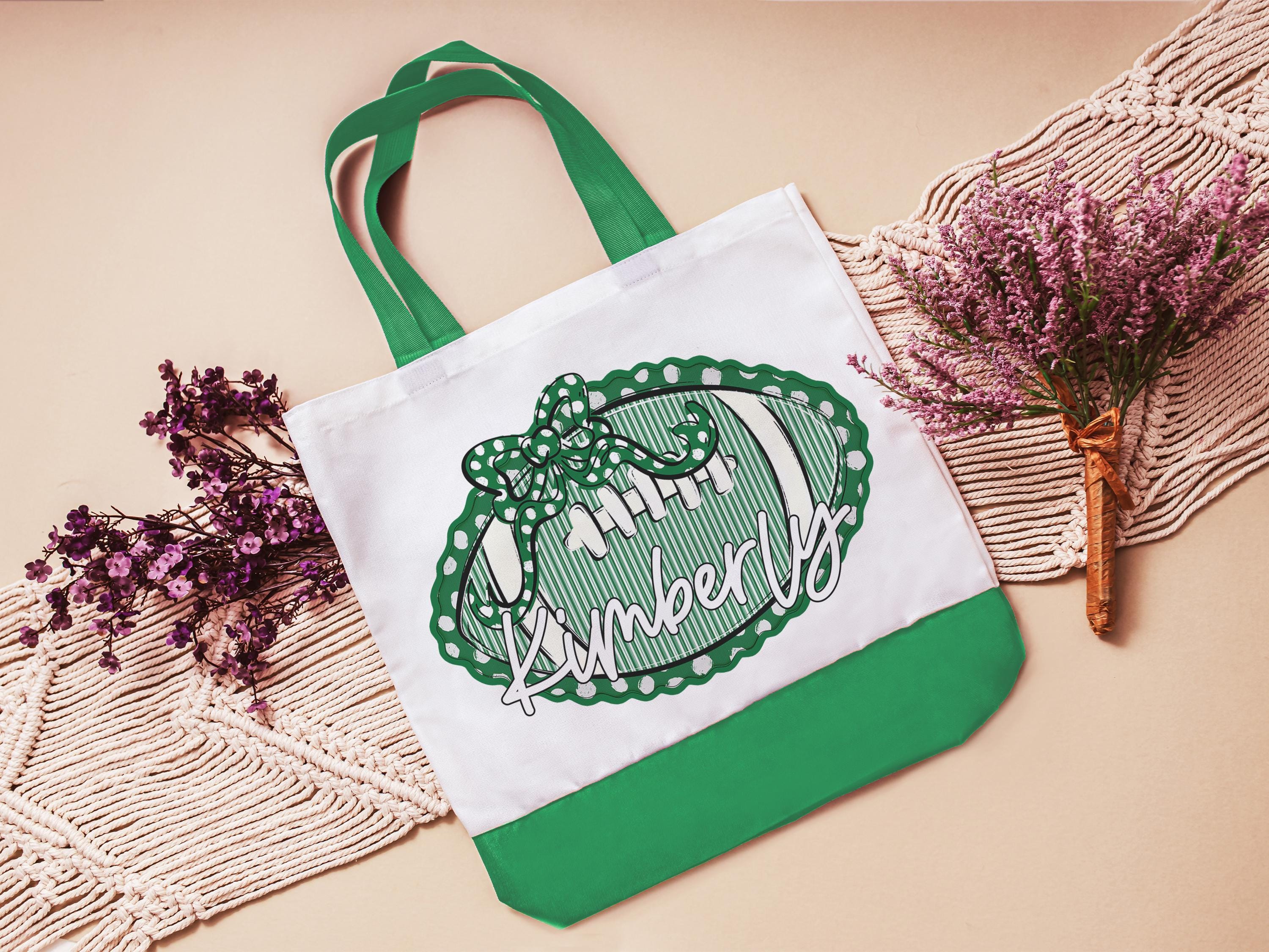 A personalized seersucker football tote bag adds a girly touch to back-to-school and game days. Perfect for girls and women, this cute football tote is a great choice for football mom gifts, high school spirit items, or carrying essentials to games.