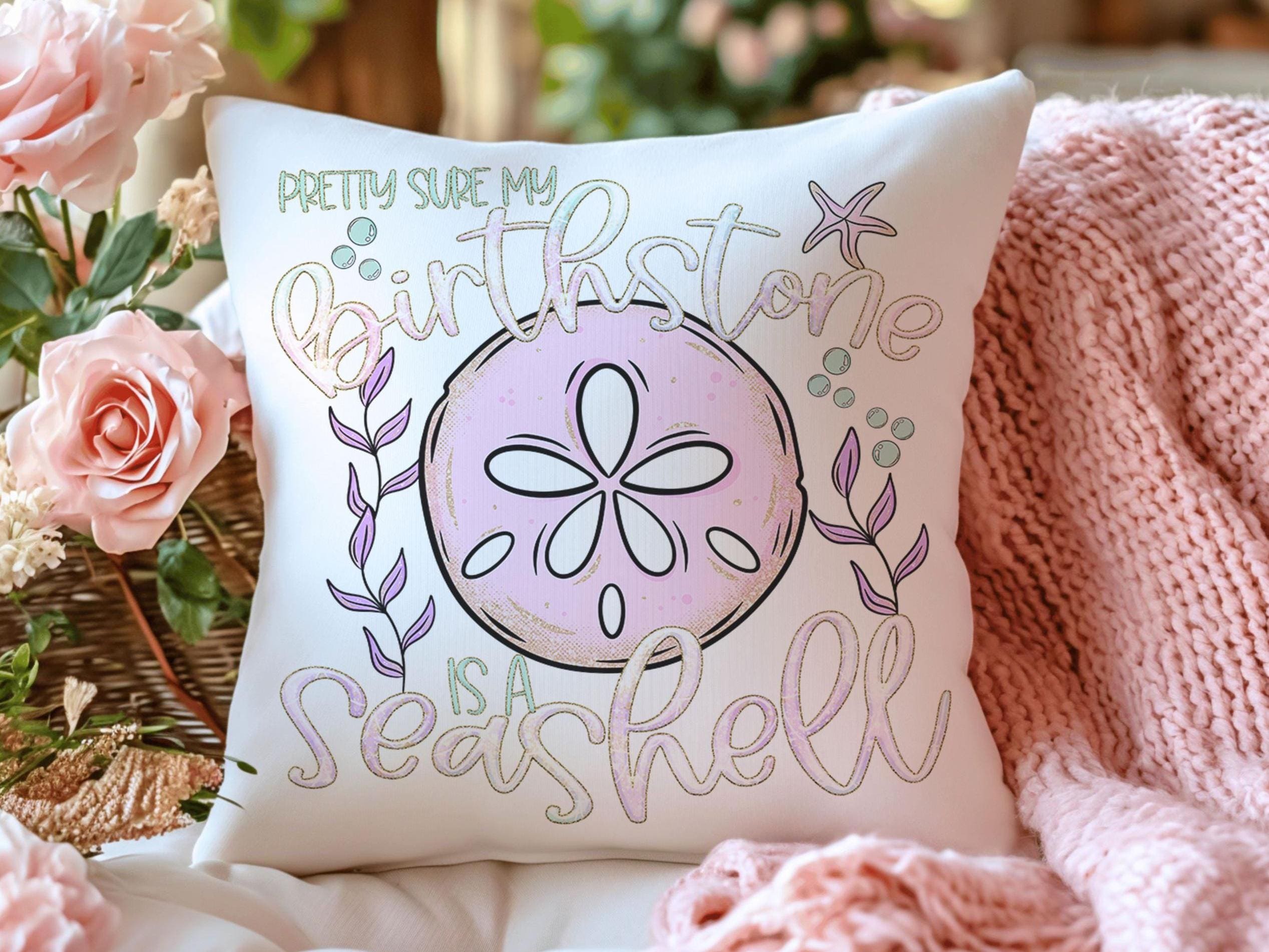 Add a fun coastal touch with this “Pretty Sure My Birthstone Is a Seashell” throw pillow — perfect for pink bedrooms, beach house decor, or lanai lounging. A perfect gift for beach lovers and college girls who enjoy summer style and seaside cuteness.