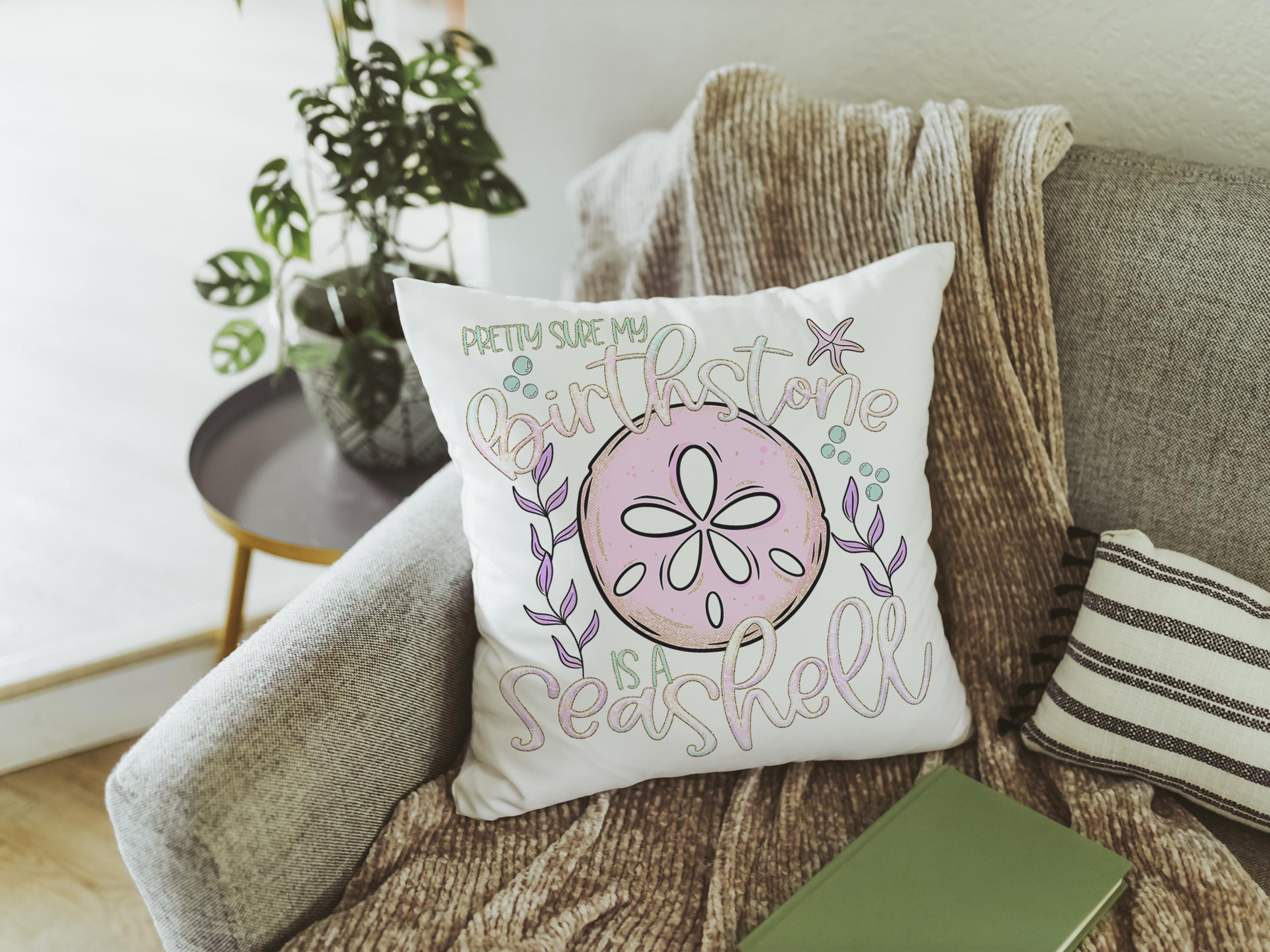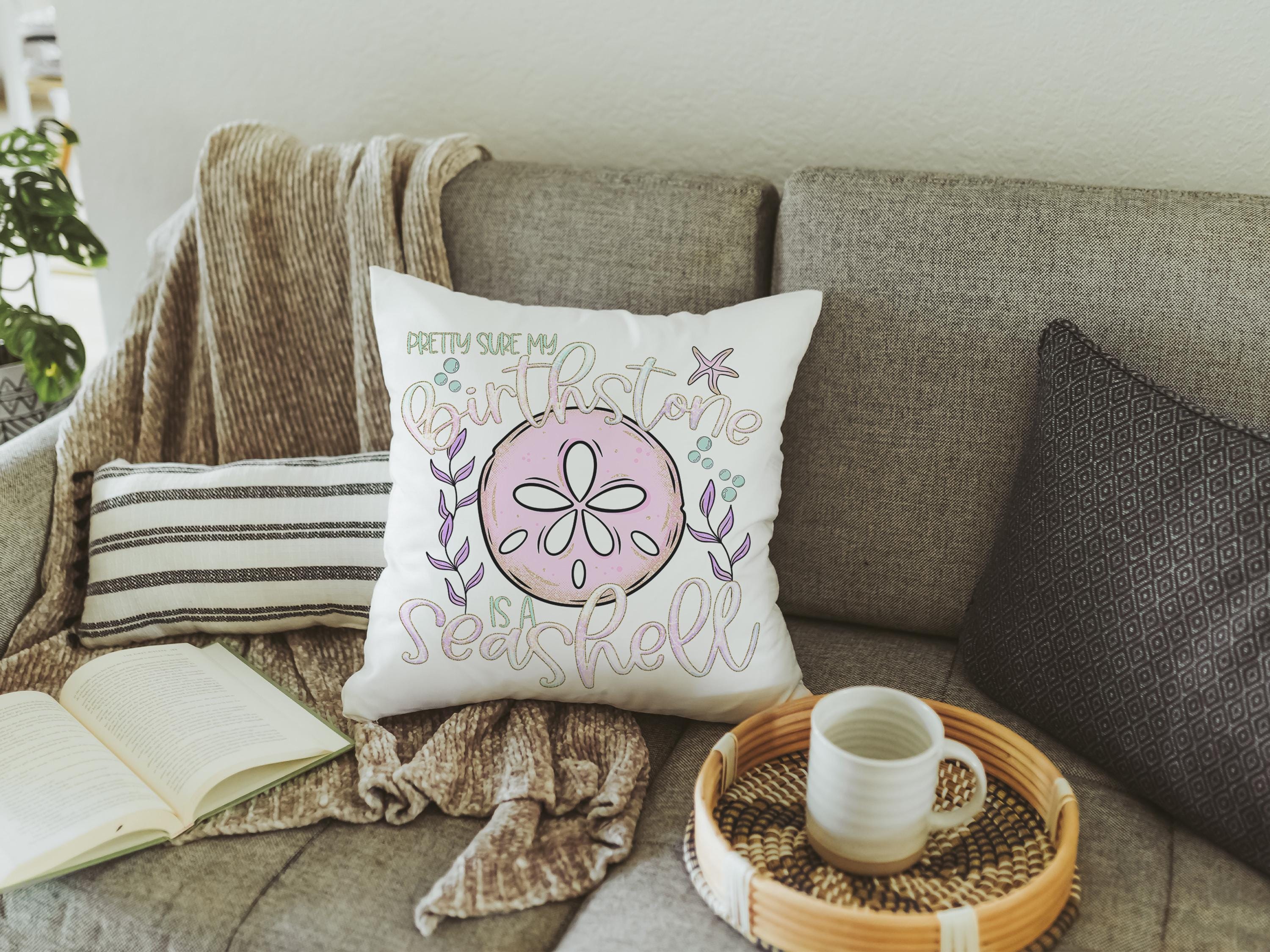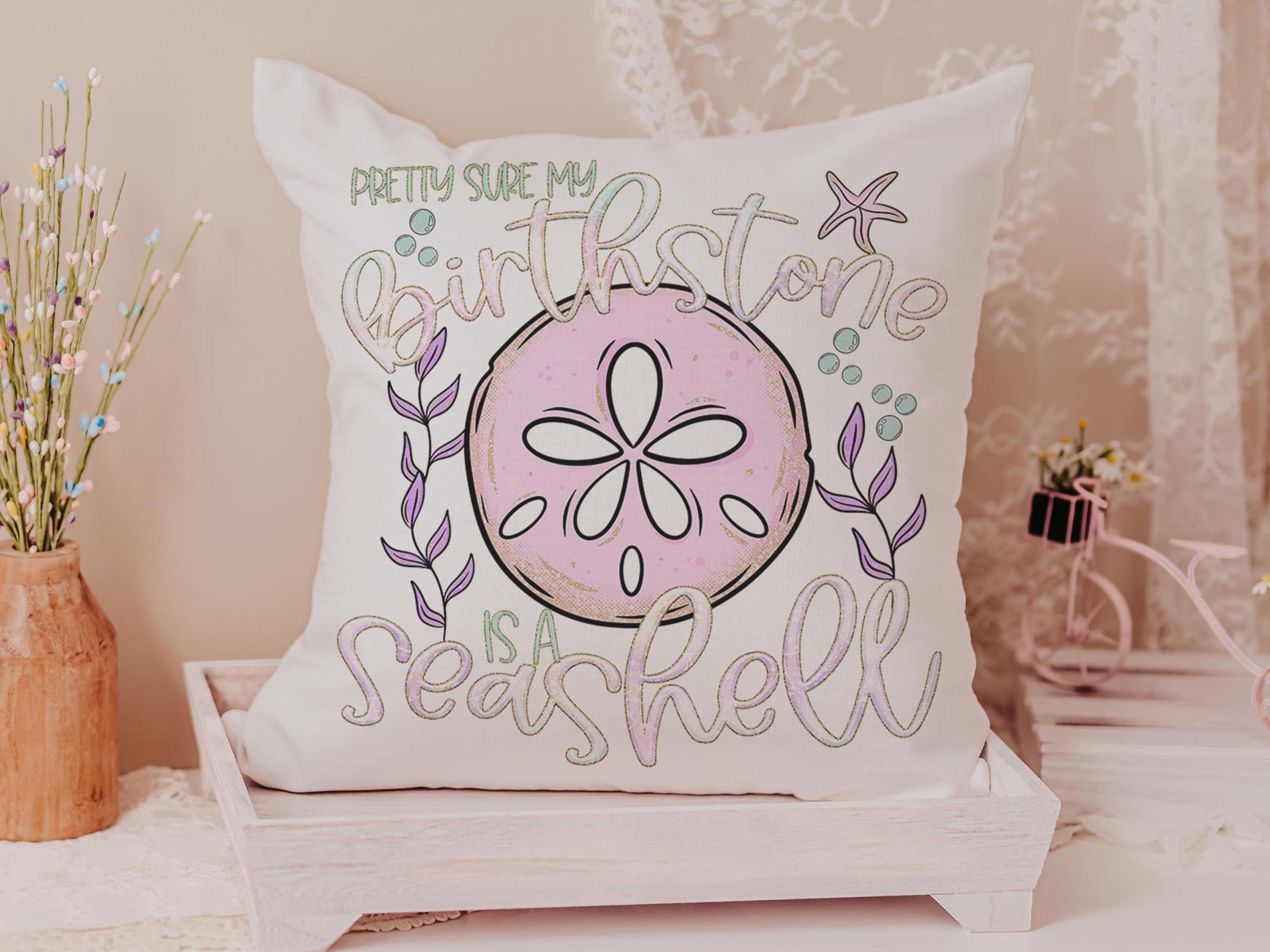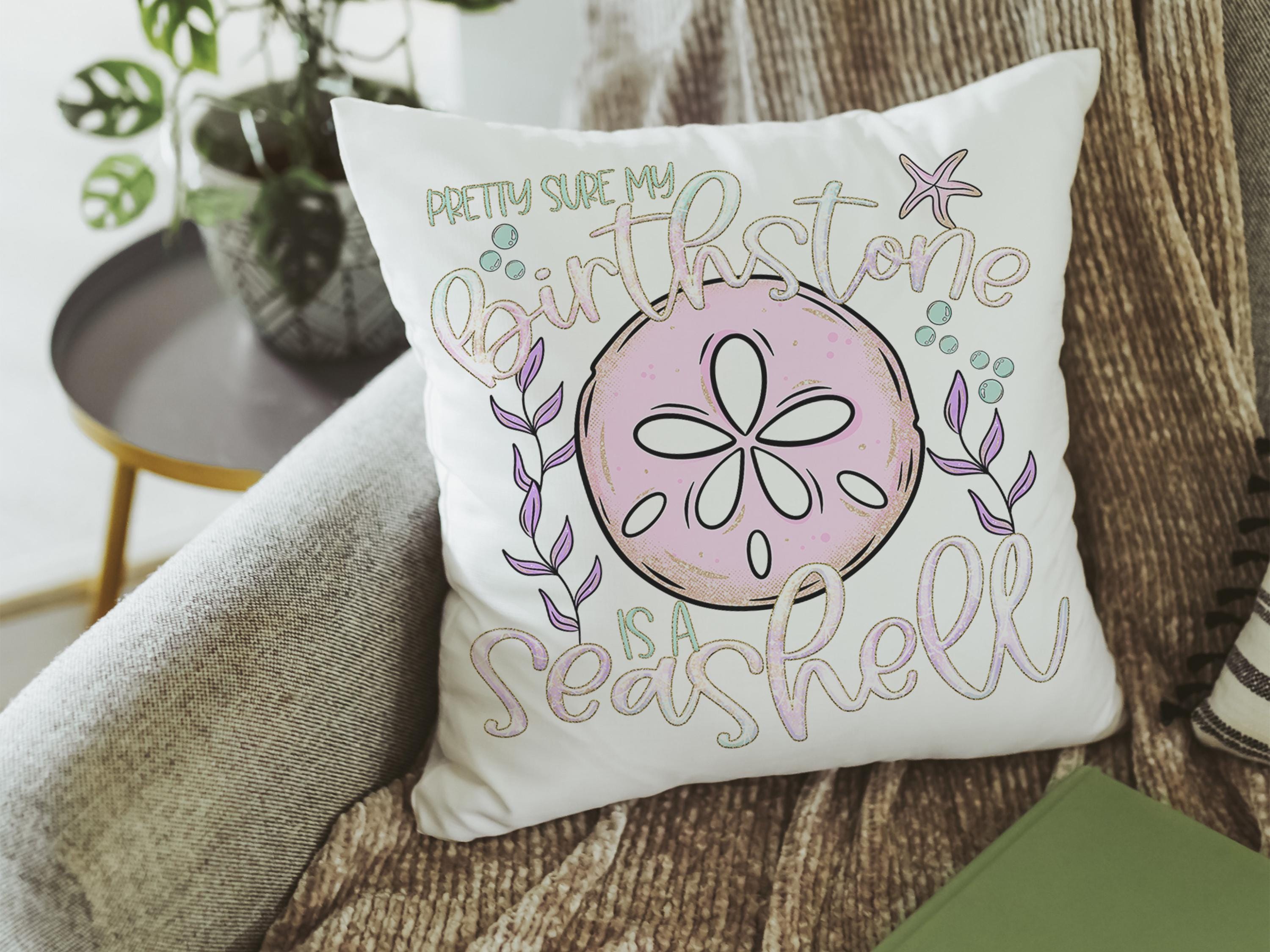 pretty sure my birthstone is a seashell funny throw pillows for pink bed, beachcomber finds, coastal gifts for college girls, lanai decor