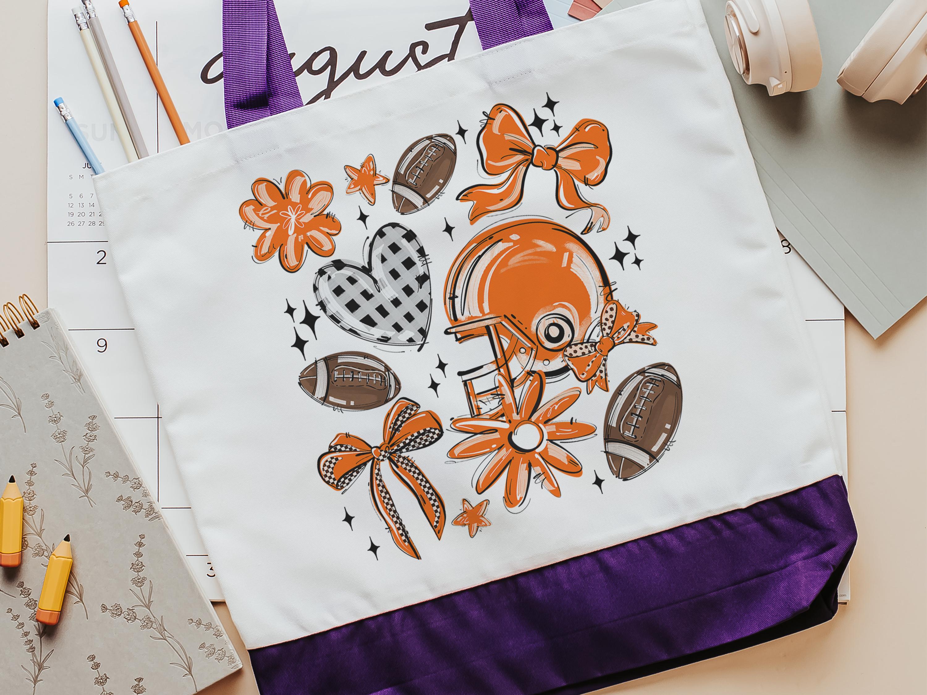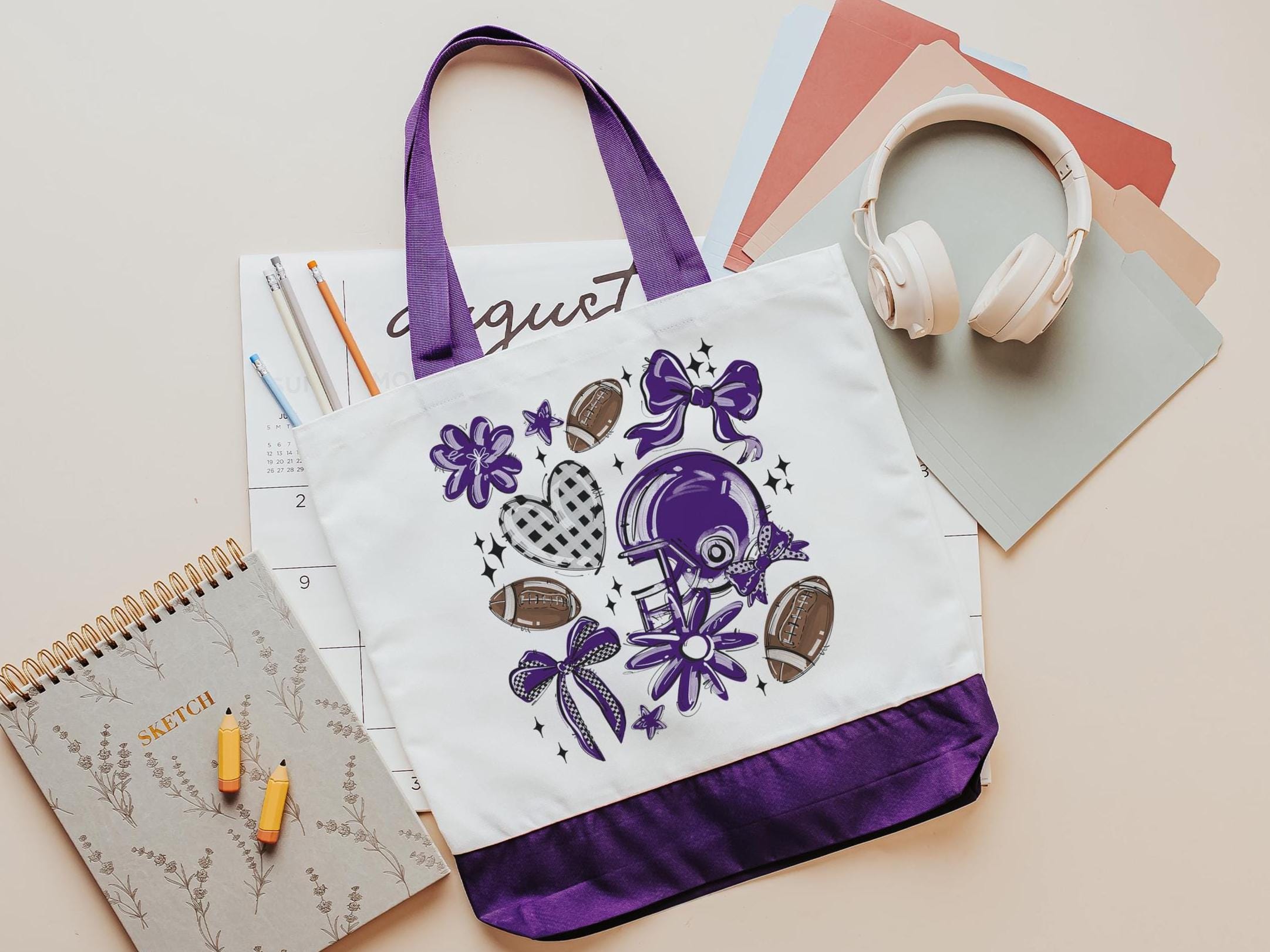 Show off your maroon school pride with this football coquette tote bag, perfect for game day, school events, or everyday use. Great for carrying trendy school supplies, it’s a fun and functional gift for football moms, students, or teen girls.
