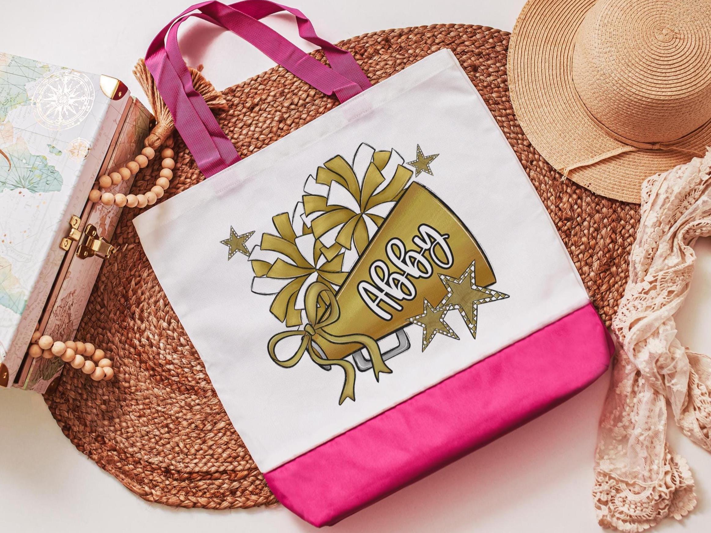 Brighten her game days with this personalized cheer tote bag featuring her name in yellow school spirit style. Perfect for carrying books and essentials, it makes a thoughtful gift or fun stocking stuffer for cheerleaders and high school students.