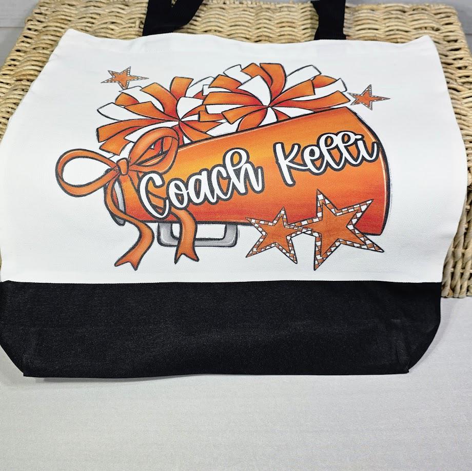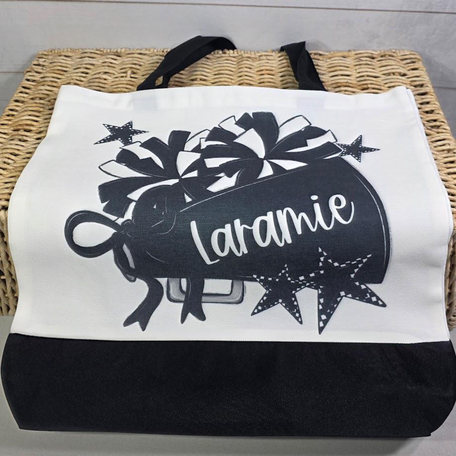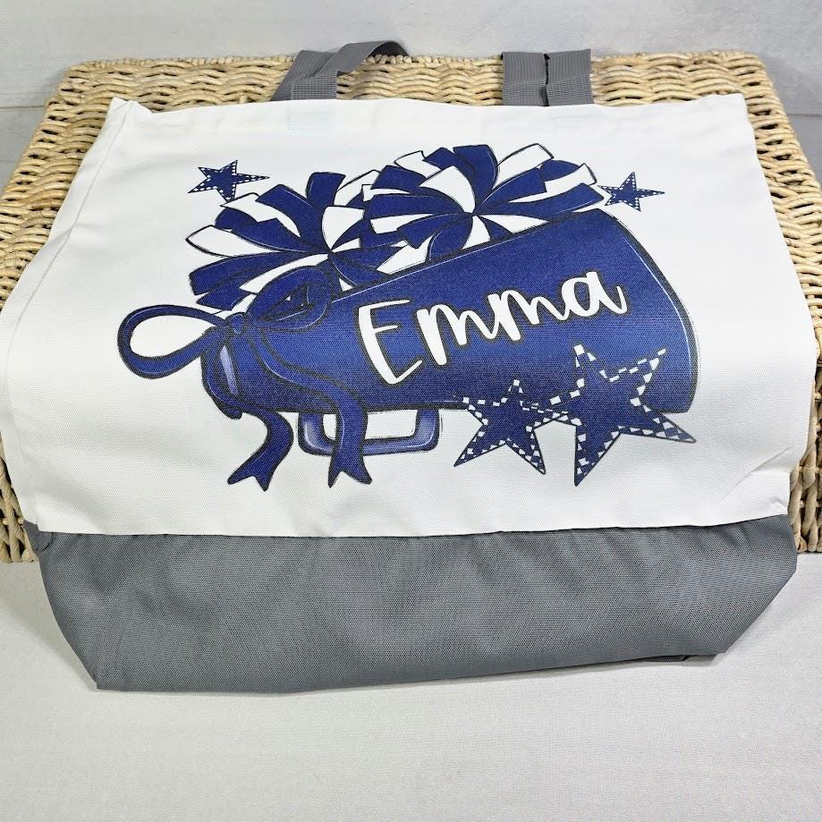 Show off your school pride with this personalized cheer tote bag featuring a name and a red cheer design. Perfect for college cheerleading gear, it’s a thoughtful Christmas gift or fun stocking stuffer for cheerleaders, teenage girls, or daughters headed off to campus.