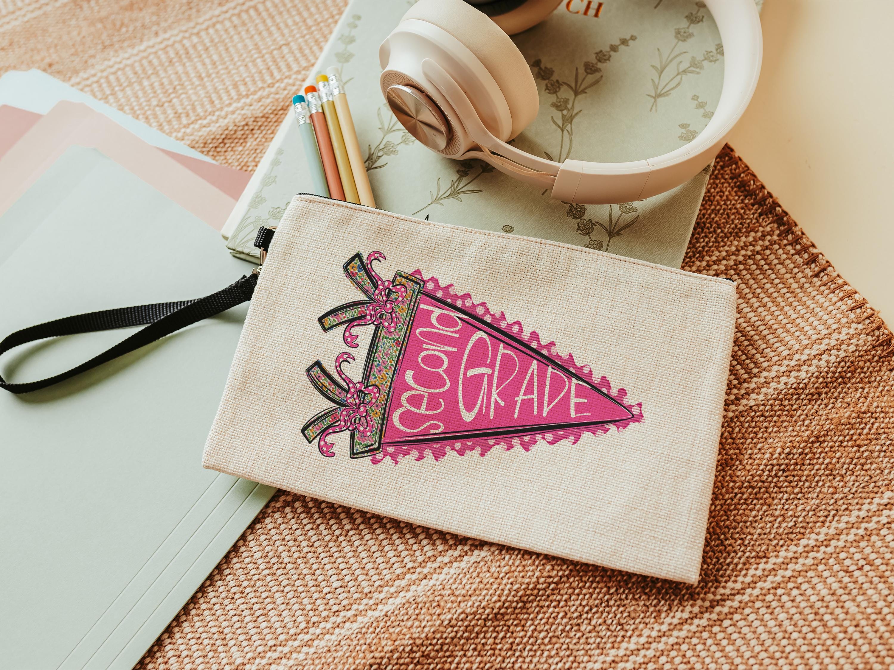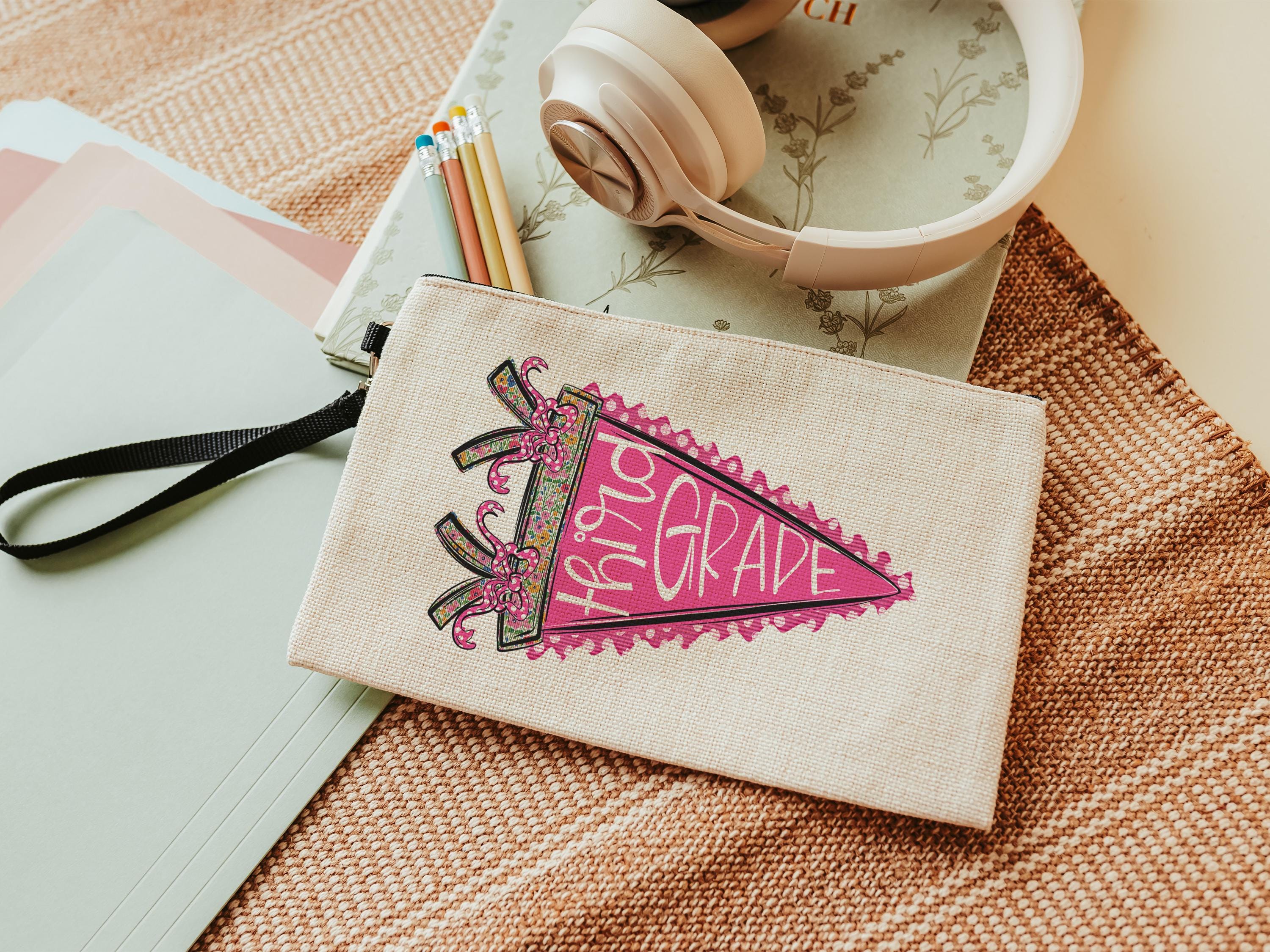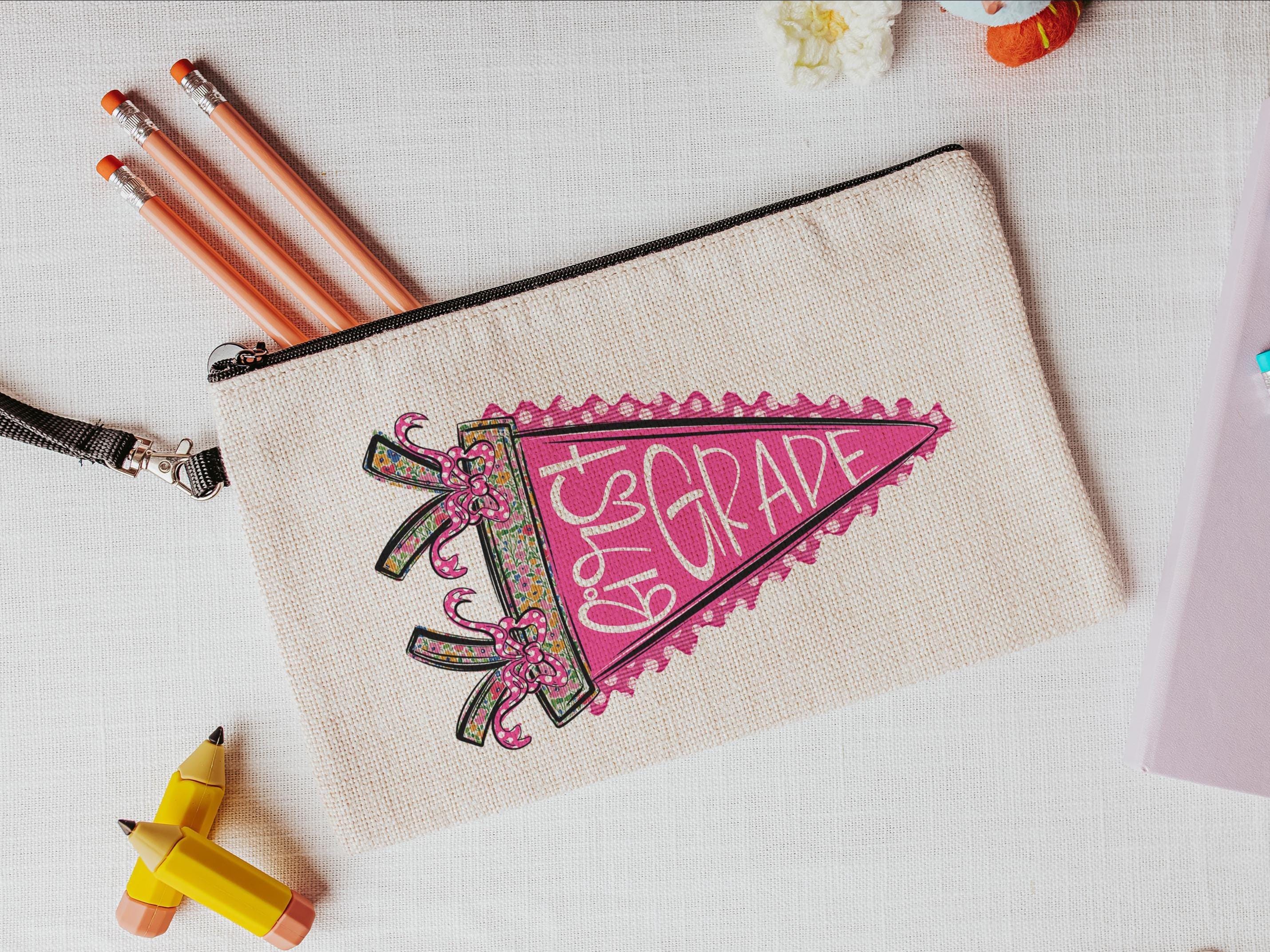 Perfect for preschool and back-to-school season, this pink pennant coquette pencil pouch with a zipper is a fun and practical way to keep supplies organized. A sweet gift for teachers, paras, or girls who love cute school essentials. Great for pencils, markers, and everyday classroom use.