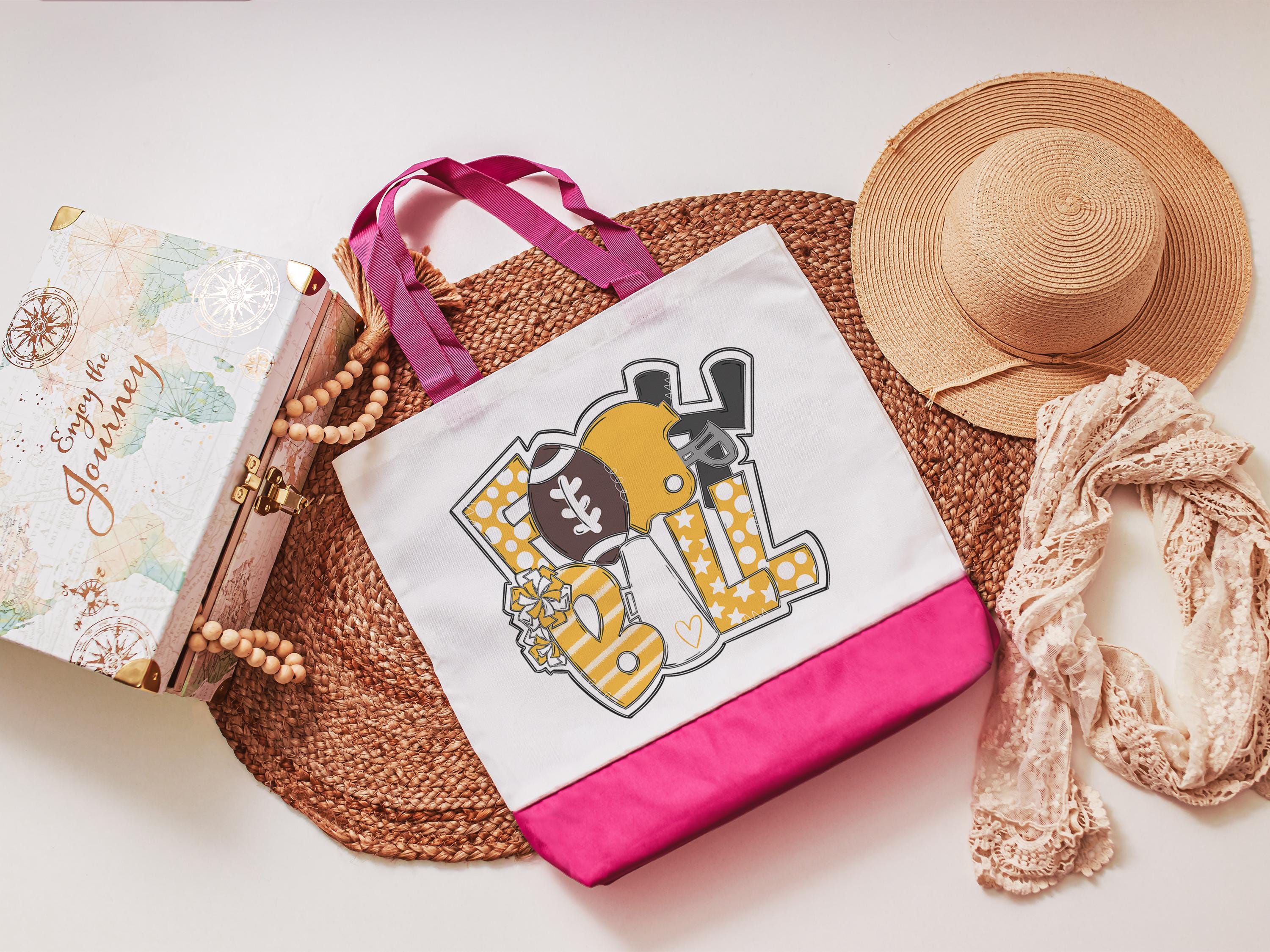 A fun tote bag with a Carolina blue football design is perfect for women who love cheering on the game. This cute football tote doubles as a school spirit accessory and makes a fun game day bag for moms, teens, or anyone showing football cheer.