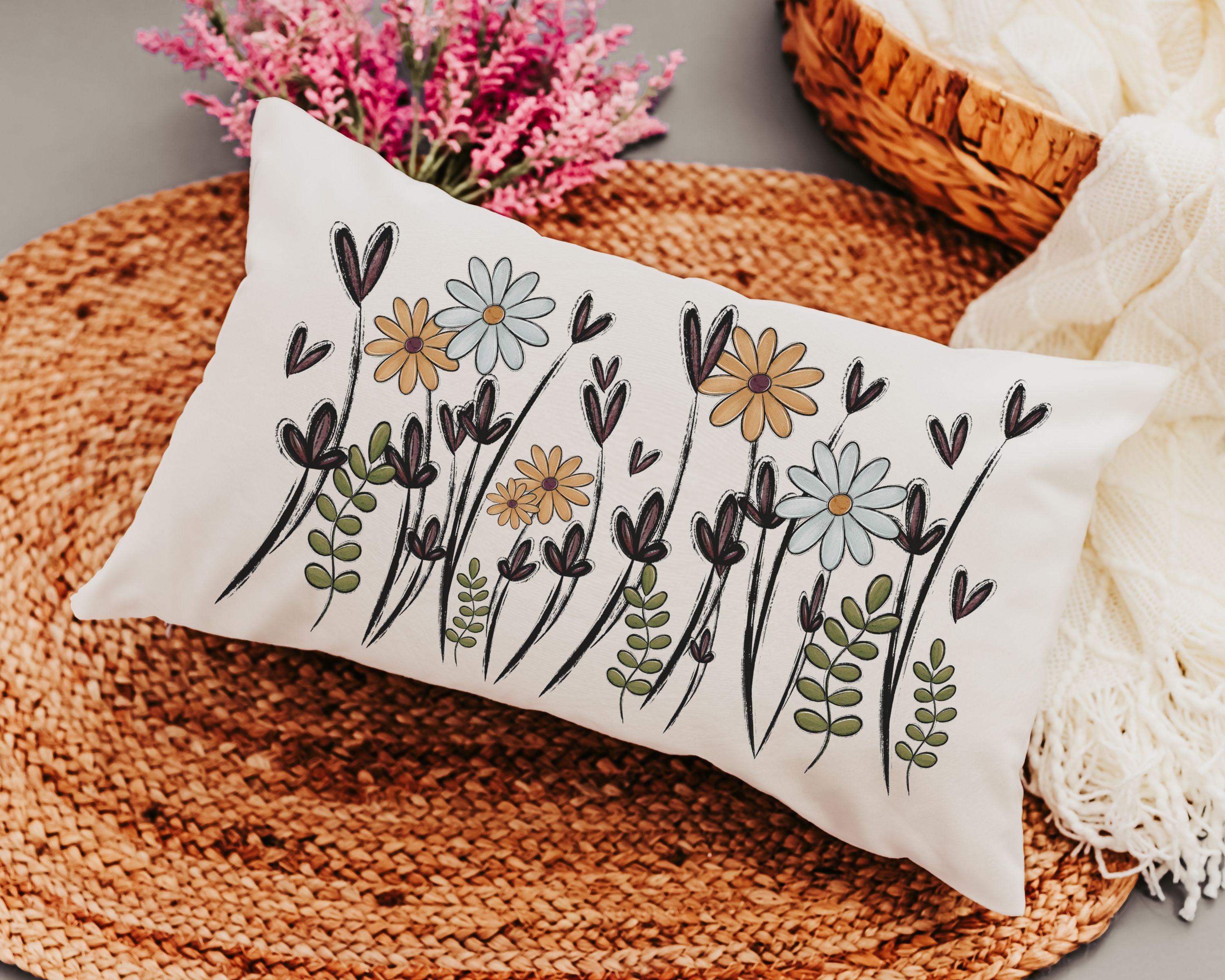 wildflower throw pillow for sofa, plant mom gift, Christmas gifts for gardeners, wildflower nursery decor, rocking chair pillow, lumbar