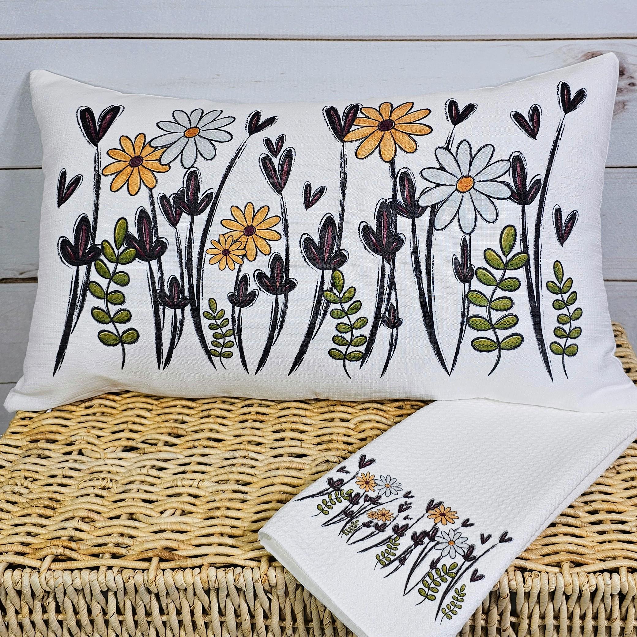 Bring a touch of nature indoors with this wildflower throw pillow and coordinating towels It's a beautiful plant mom gift or Christmas gift for gardeners. Perfect for a sofa, bedroom, or rocking chair, this pillow adds charm to nursery decor and makes a sweet gift for plant lovers. Available individually or as a matching set.