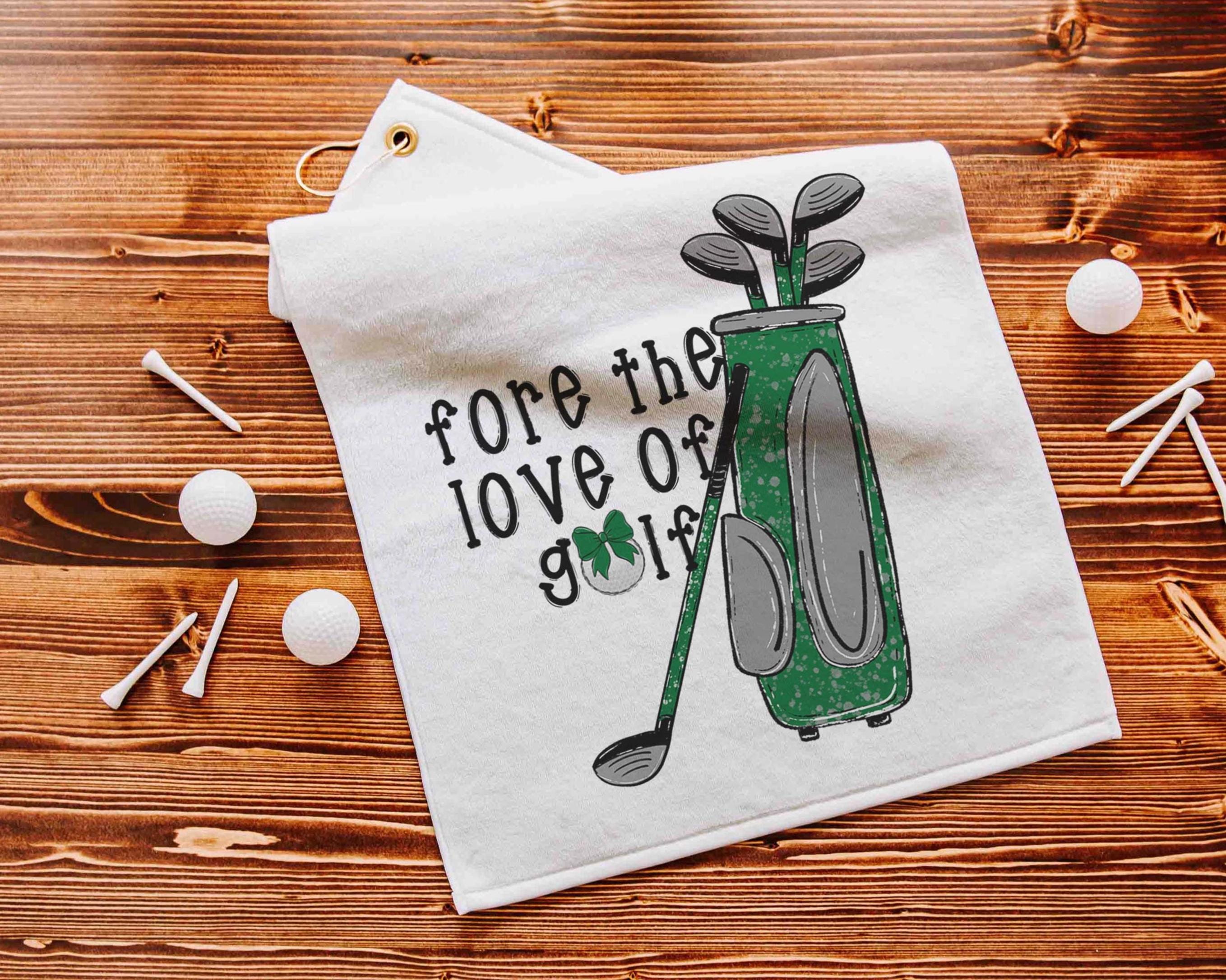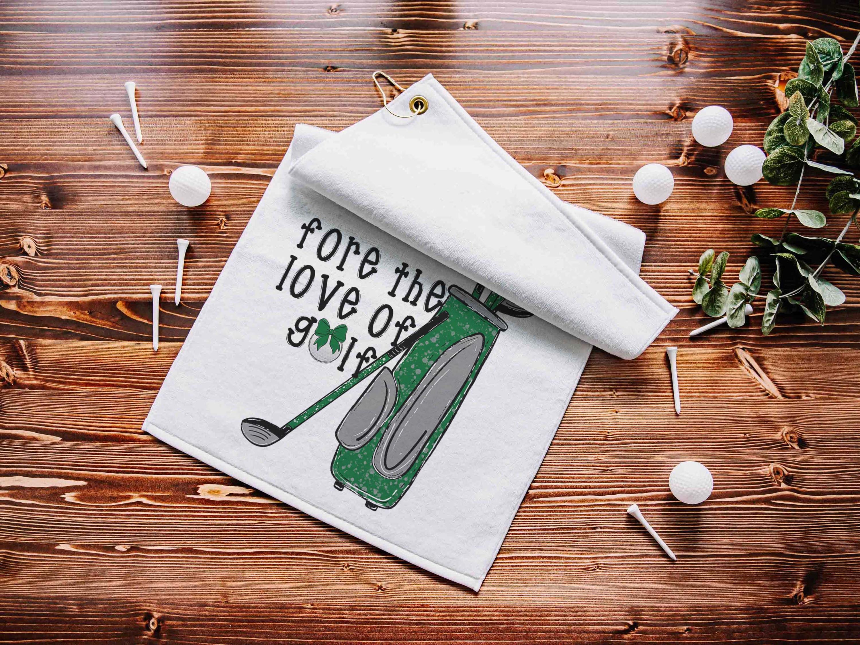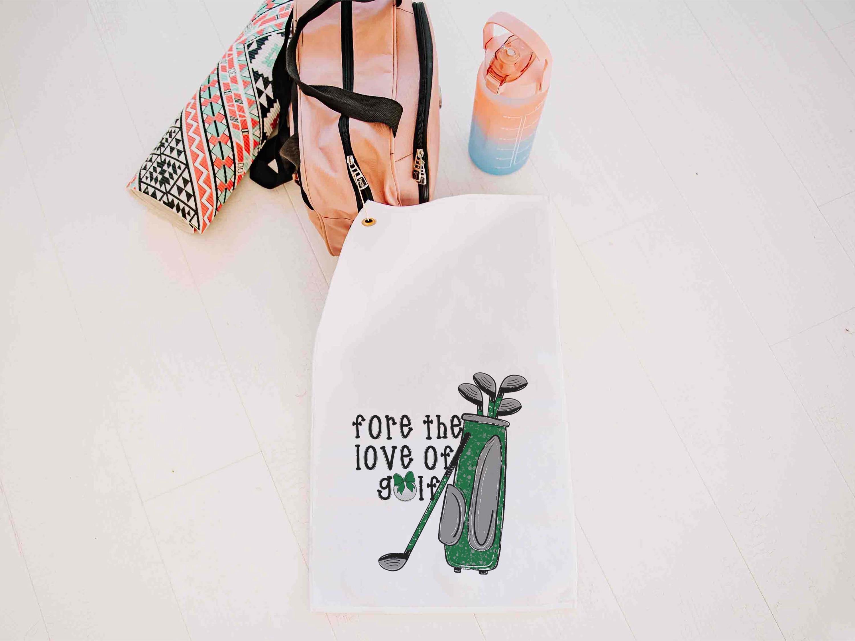 Add a fun touch to your golf bag with this Fore the Love of Golf towel, complete with hook and grommet for easy use. Perfect for golf moms, coquette golf accessories, or gifts for women who love spending time on the course. A practical pick for golfers and their gear.