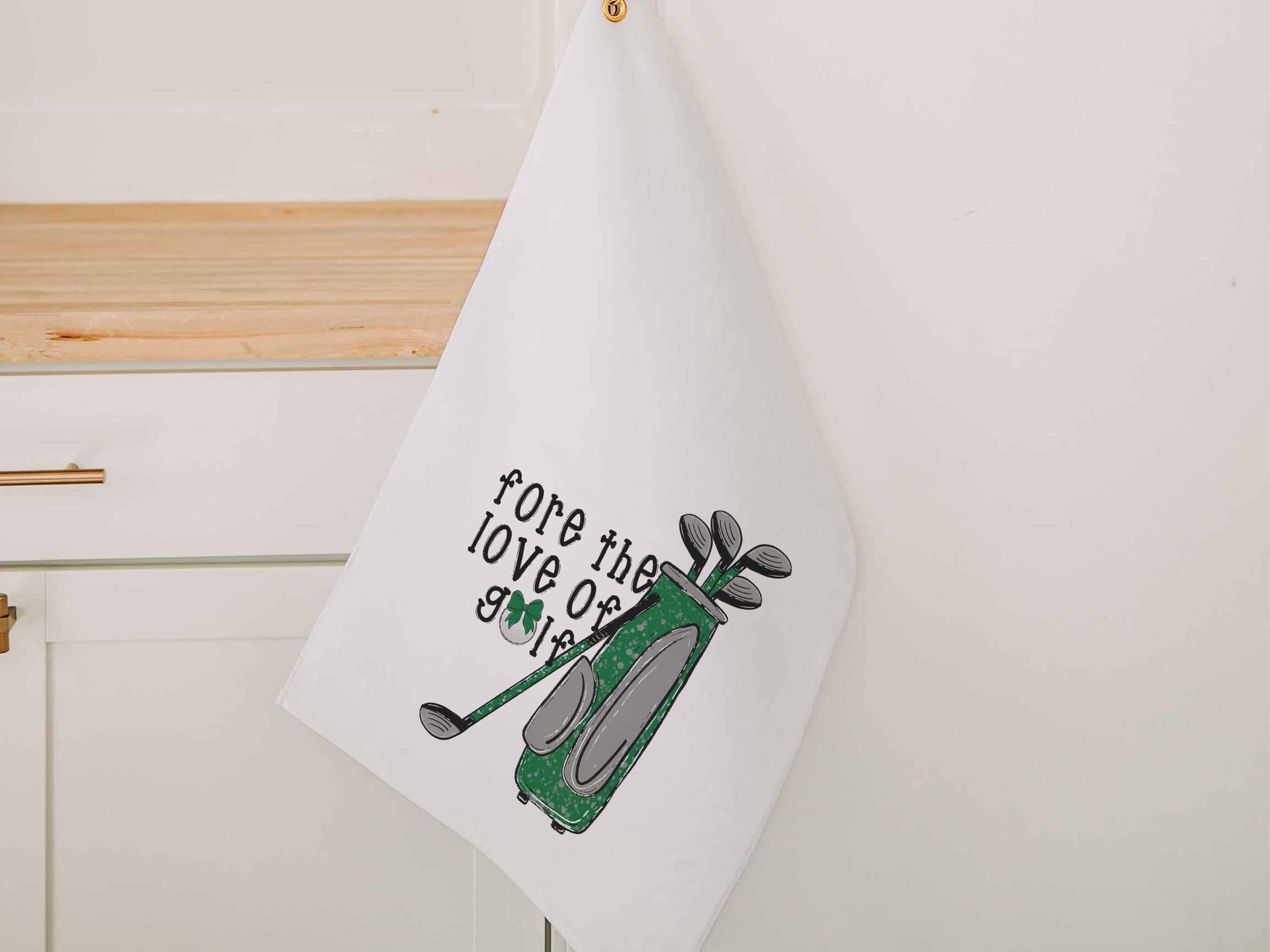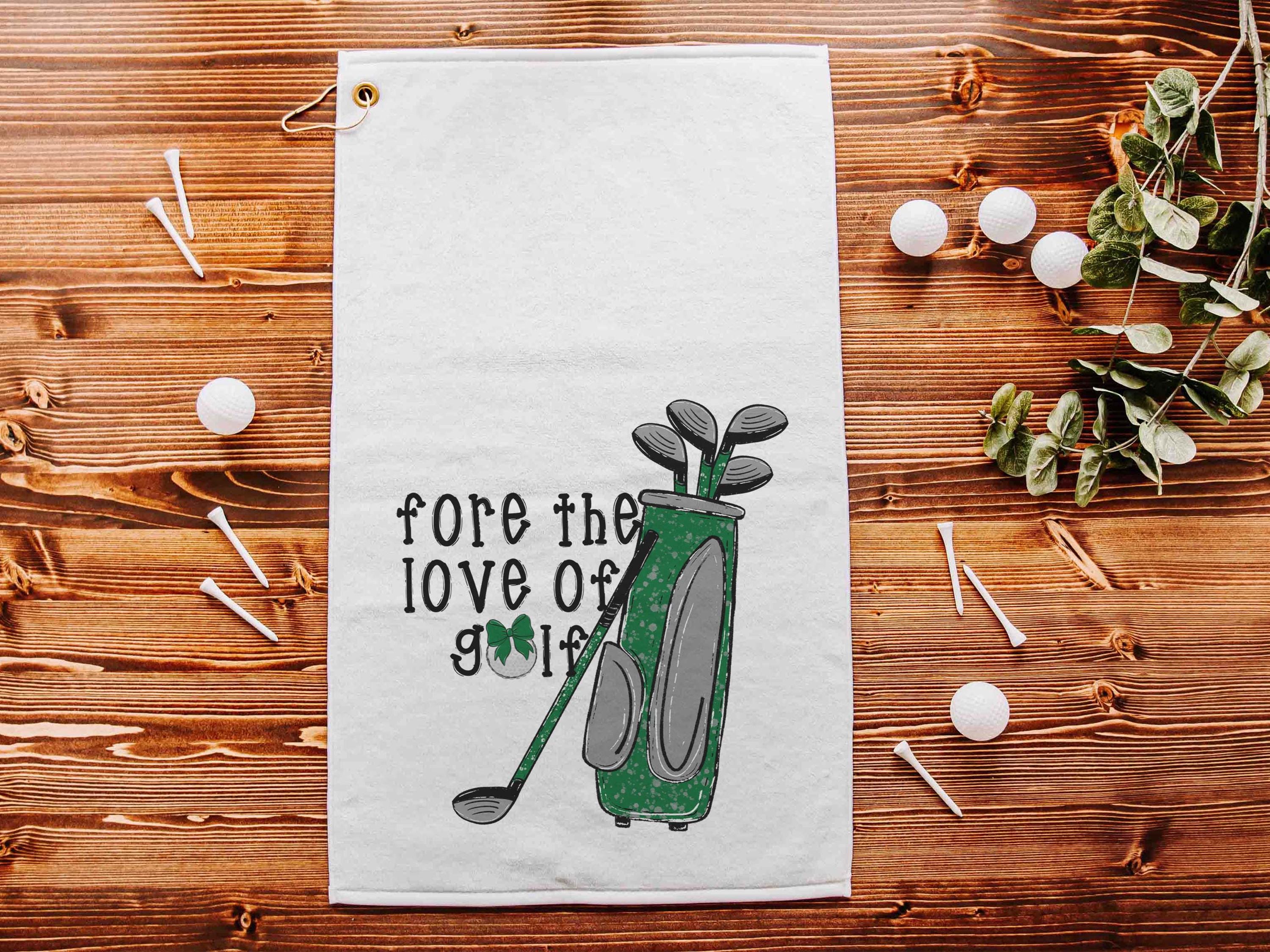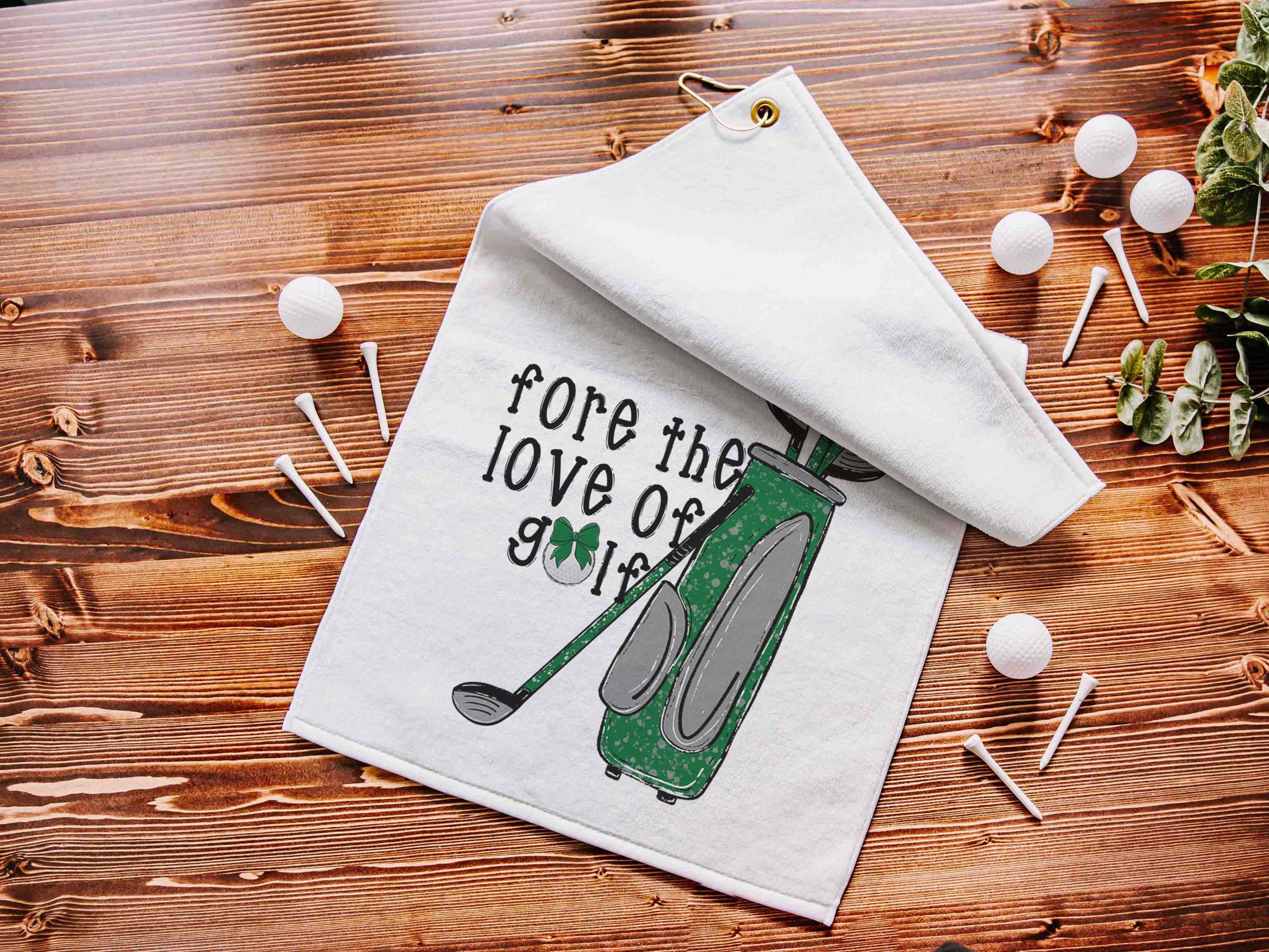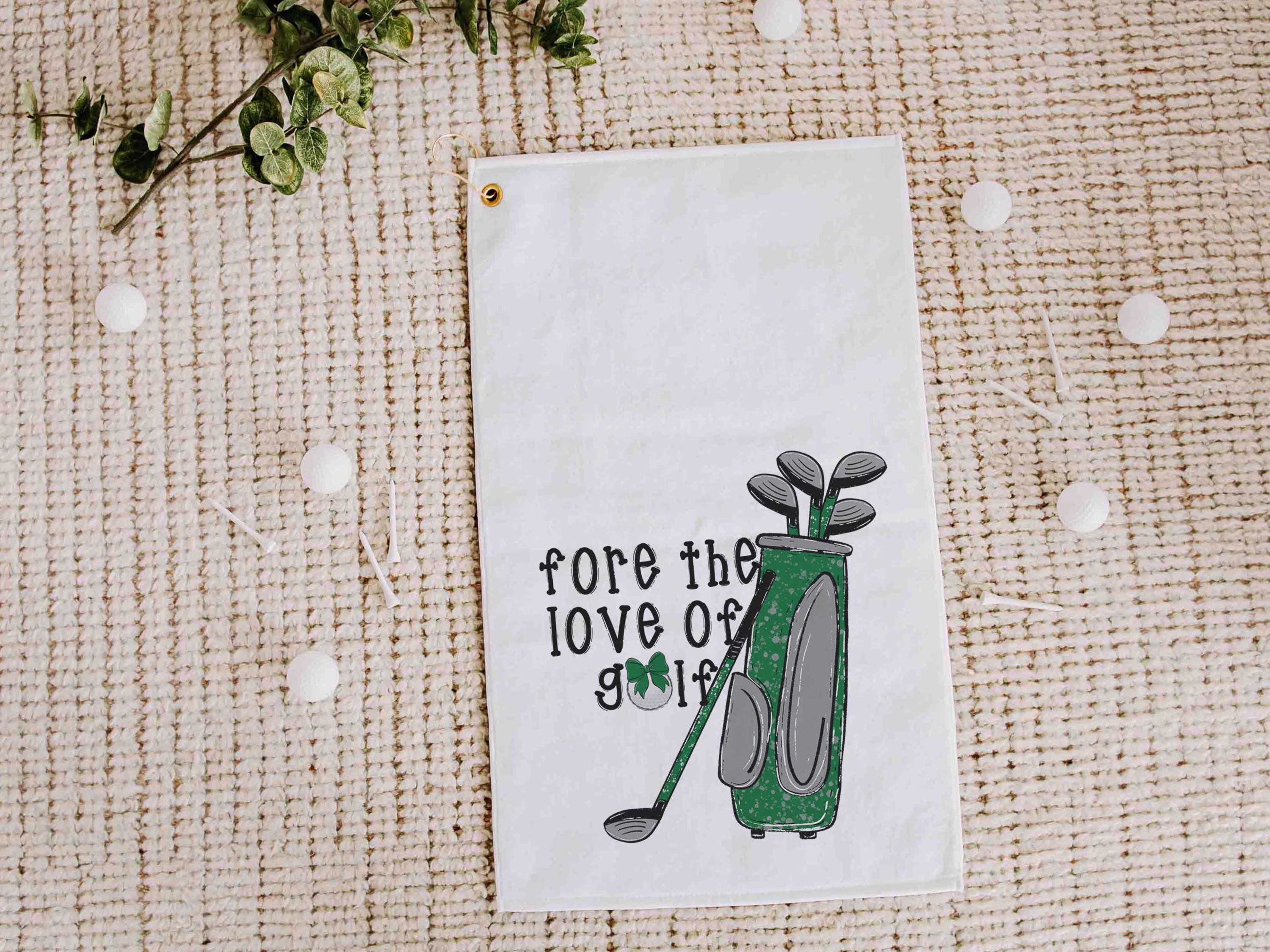 Add a fun touch to your golf bag with this Fore the Love of Golf towel, complete with hook and grommet for easy use. Perfect for golf moms, coquette golf accessories, or gifts for women who love spending time on the course. A practical pick for golfers and their gear.