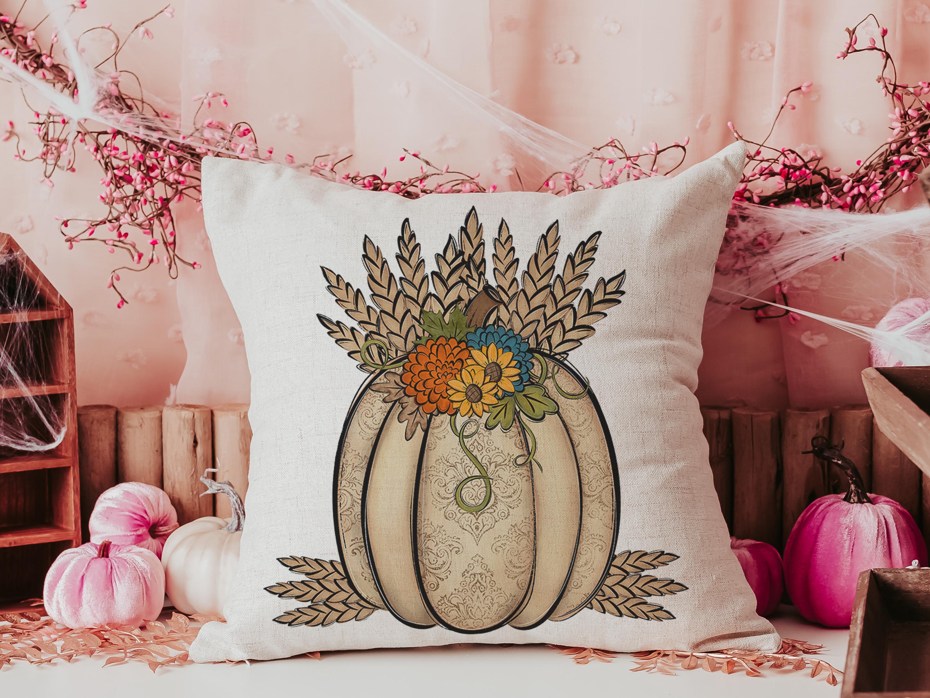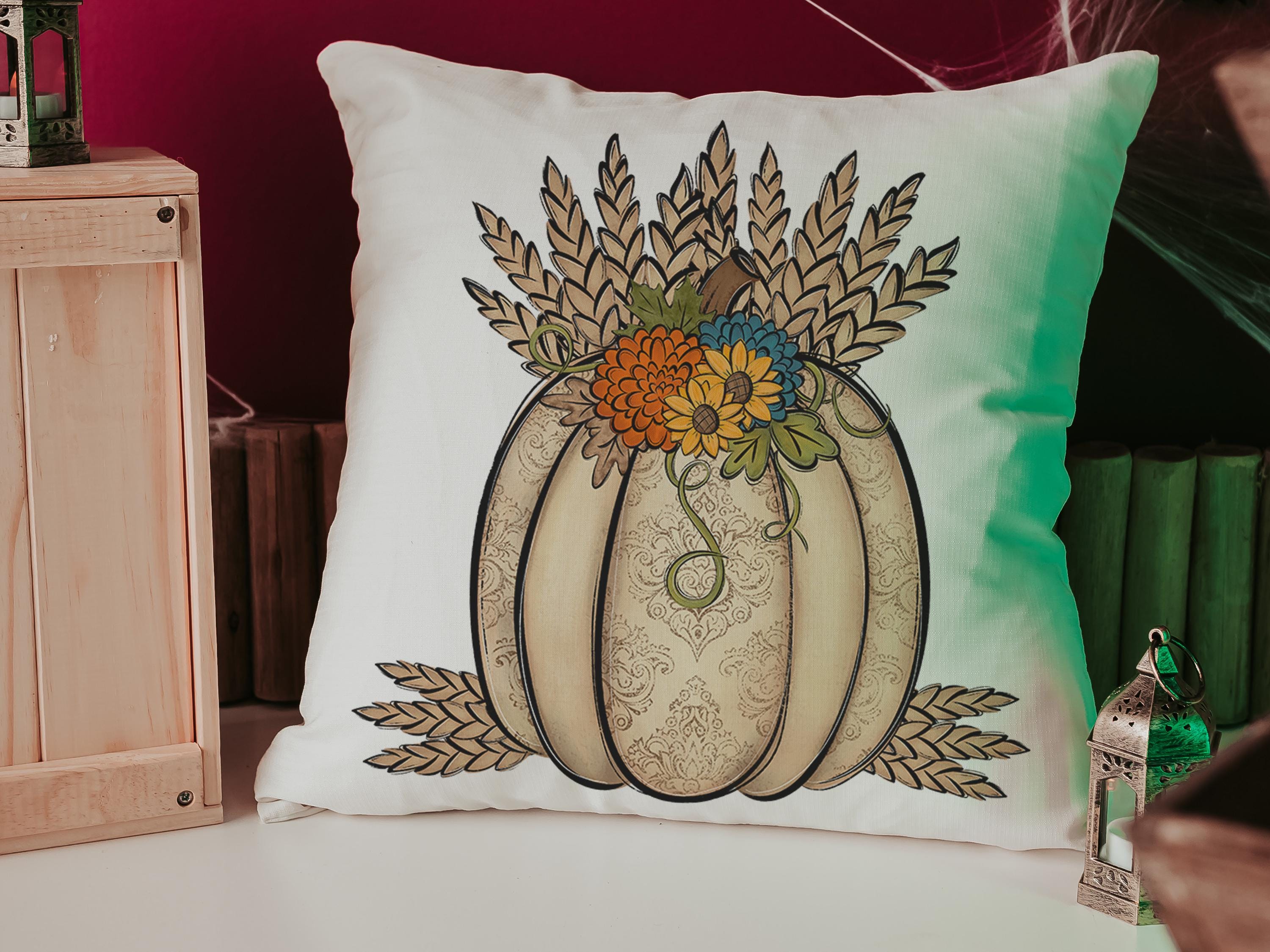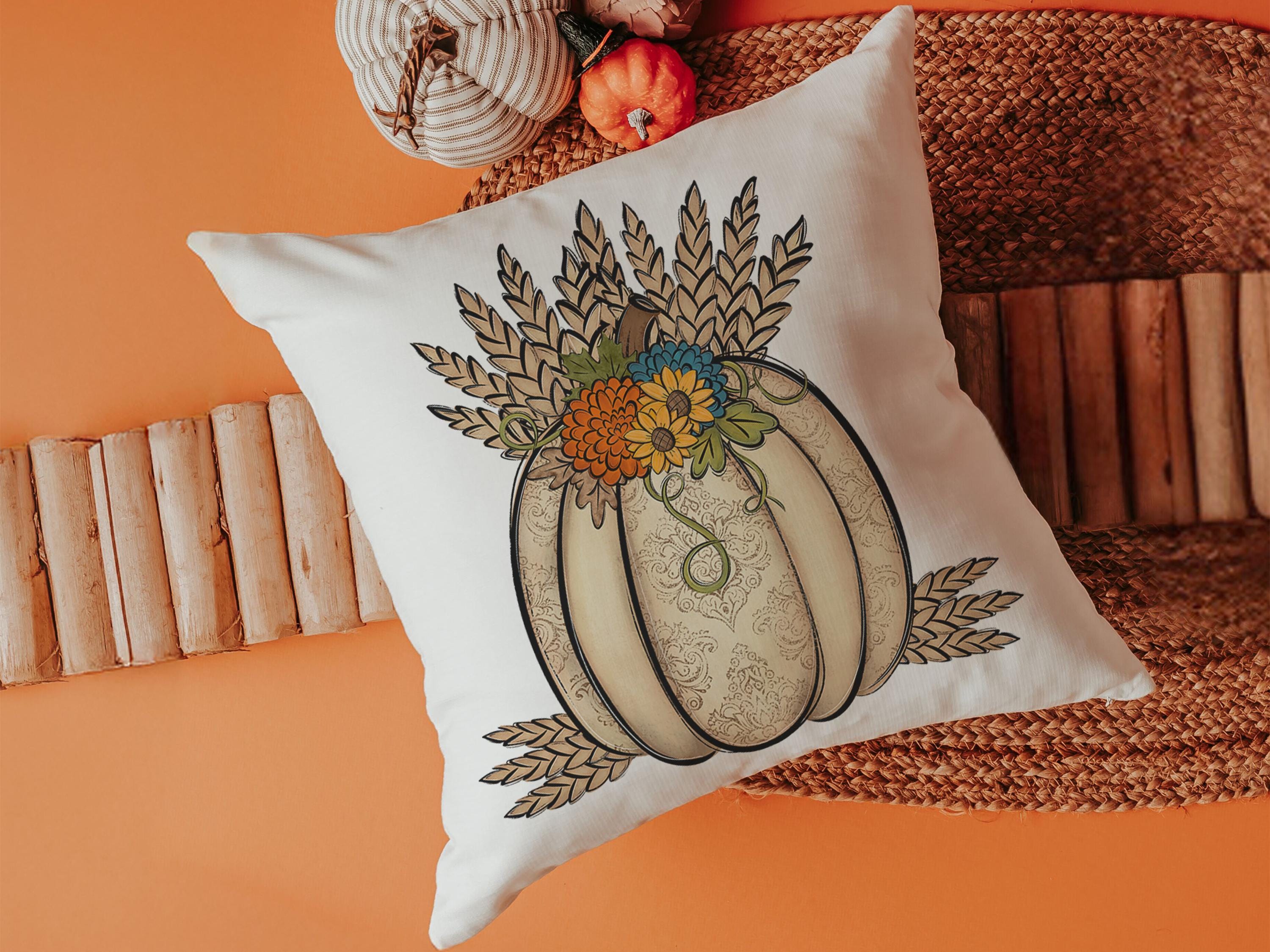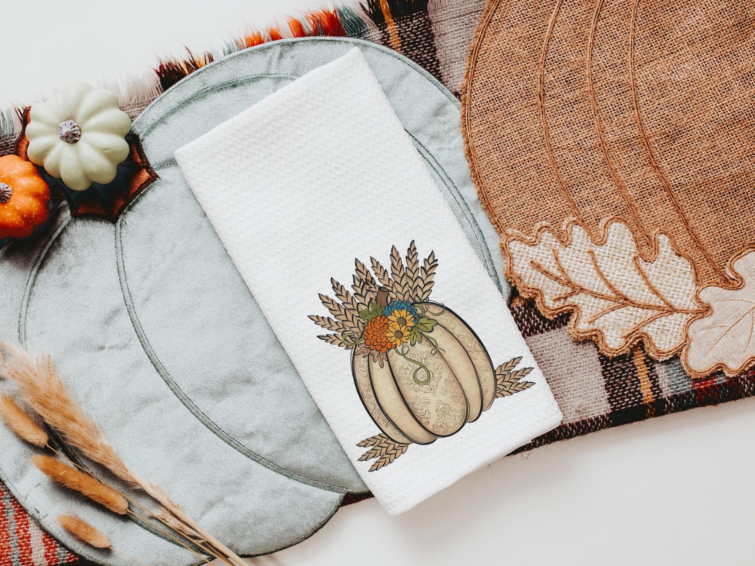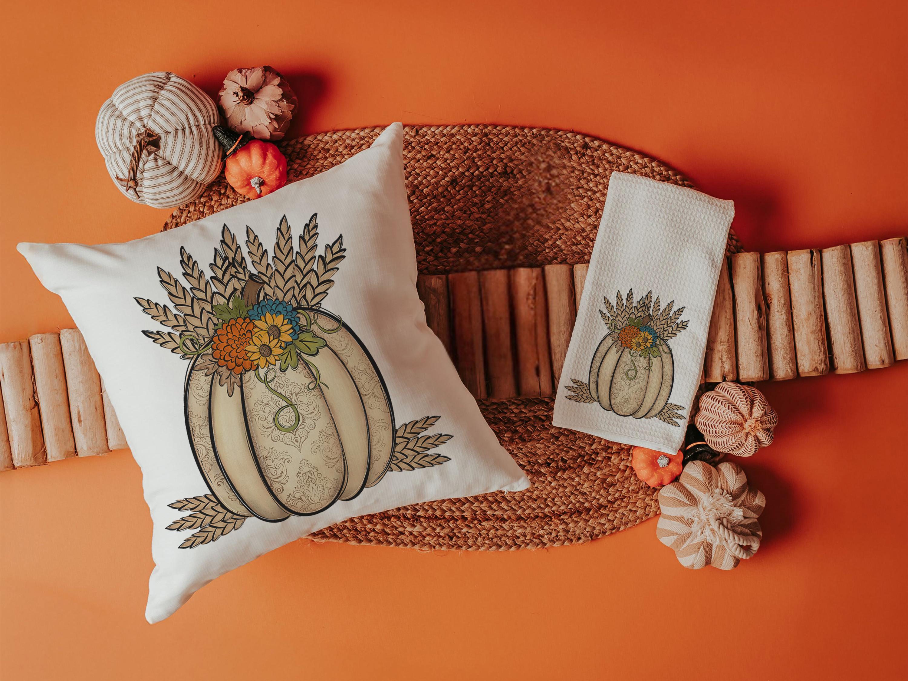 wheat pumpkin decorative pillows for couch, sunflower pumpkin kitchen towels, harvest decor, Thanksgiving hosting gift, pumpkin season gifts