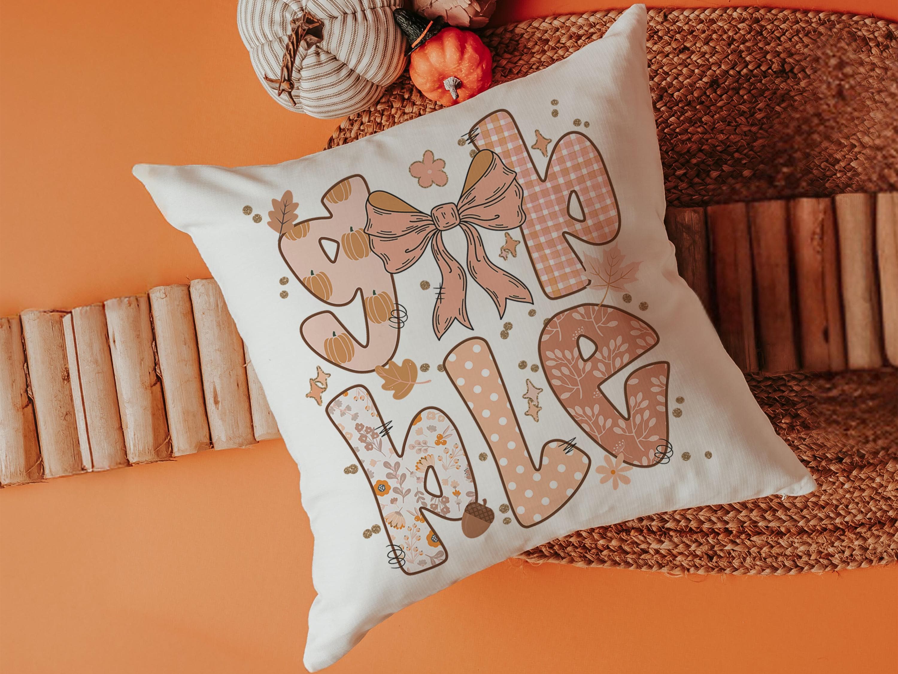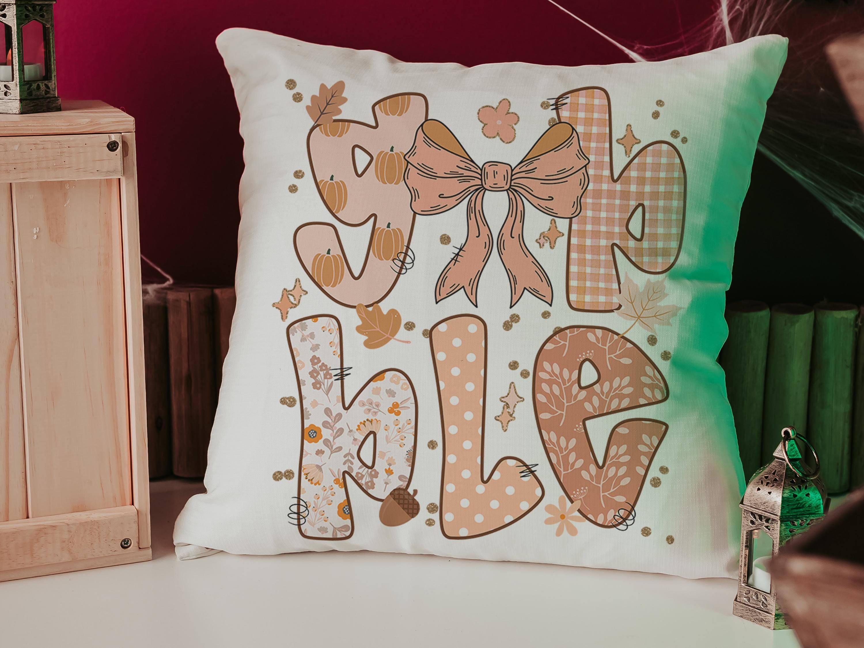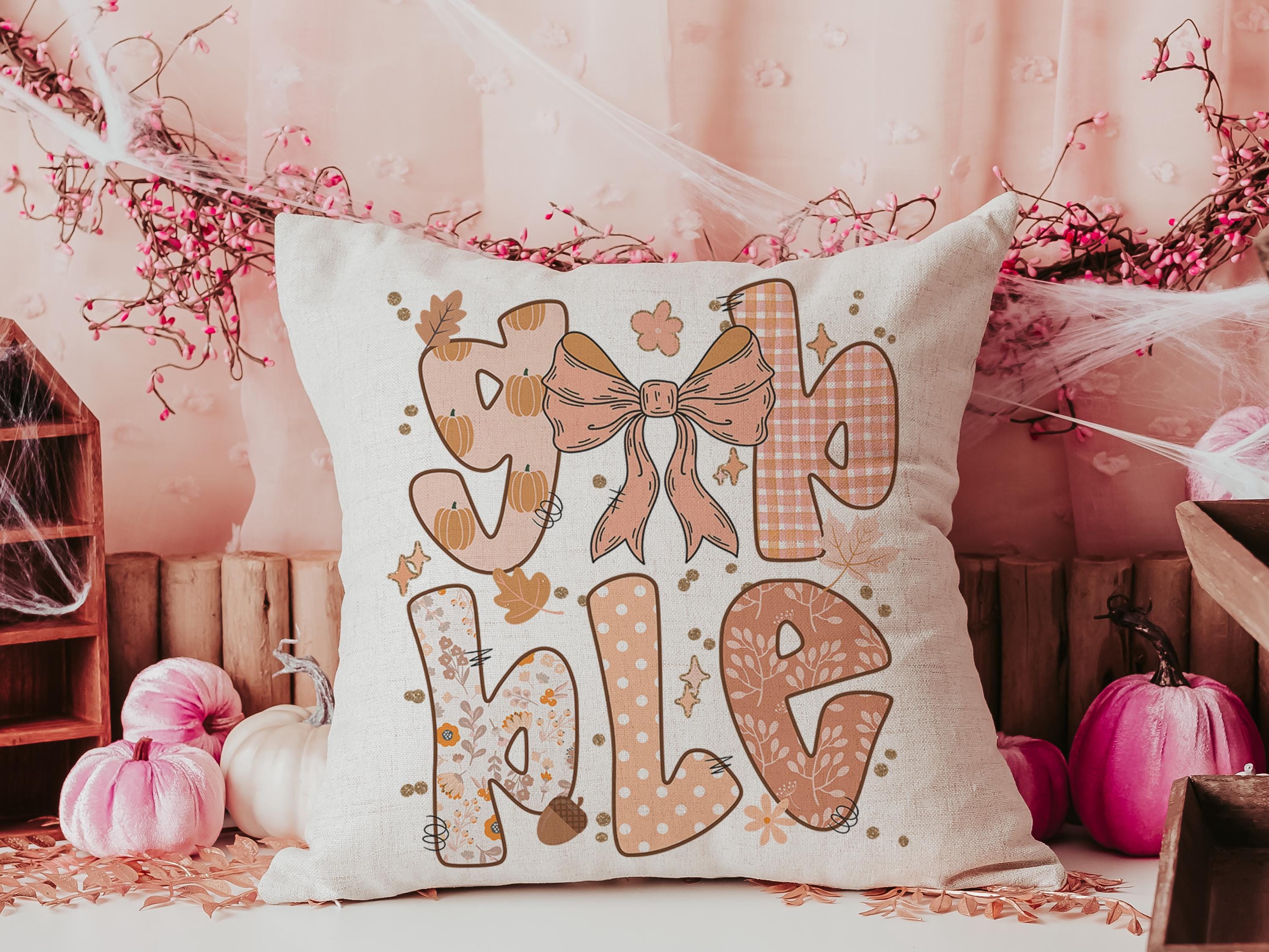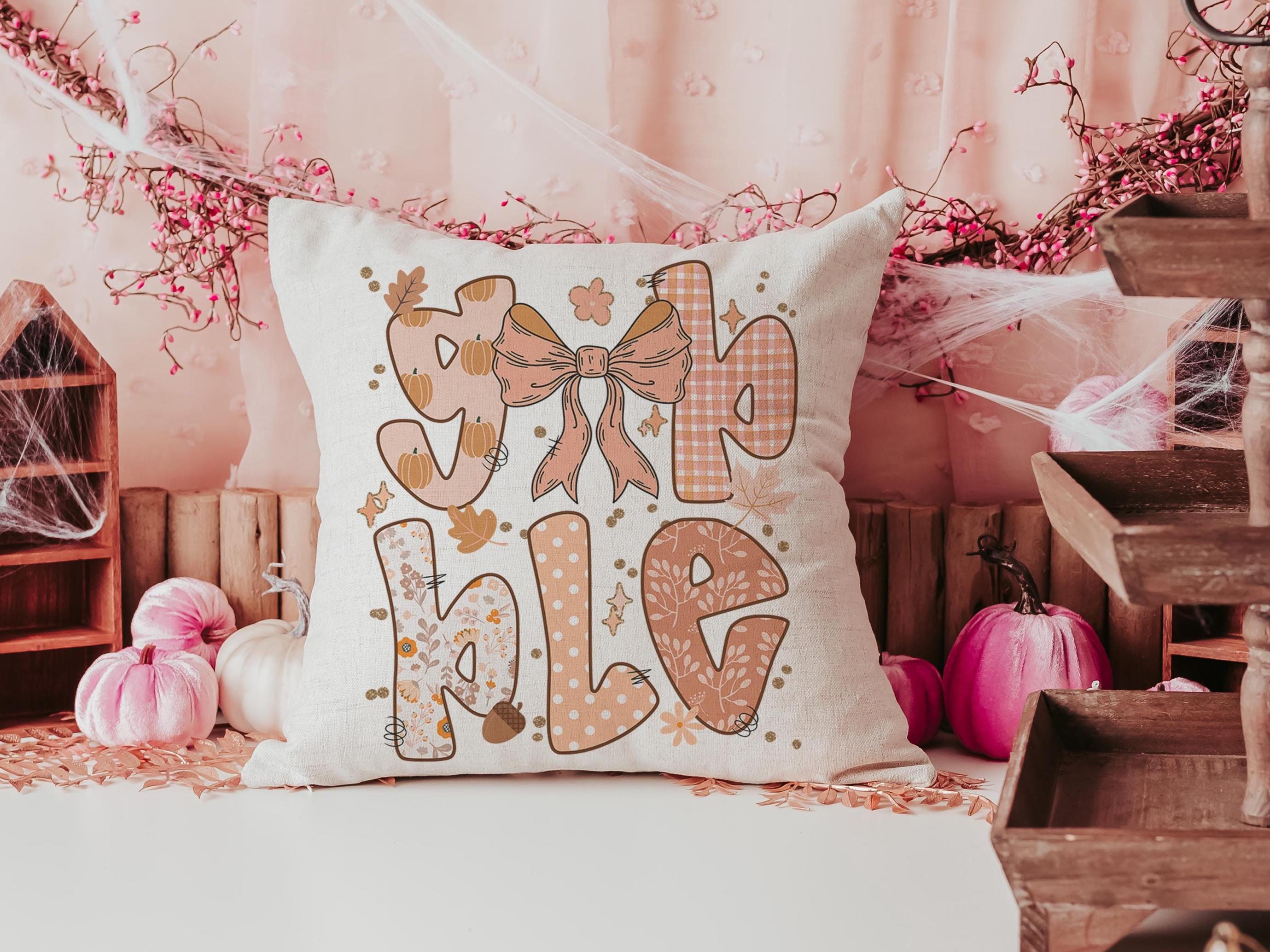 Add fun fall style to your space with Gobble Thanksgiving coquette pillow. Perfect for the couch or living room, they make cute Thanksgiving hosting gifts or autumn housewarming gifts for friends and women who love cute seasonal decor.