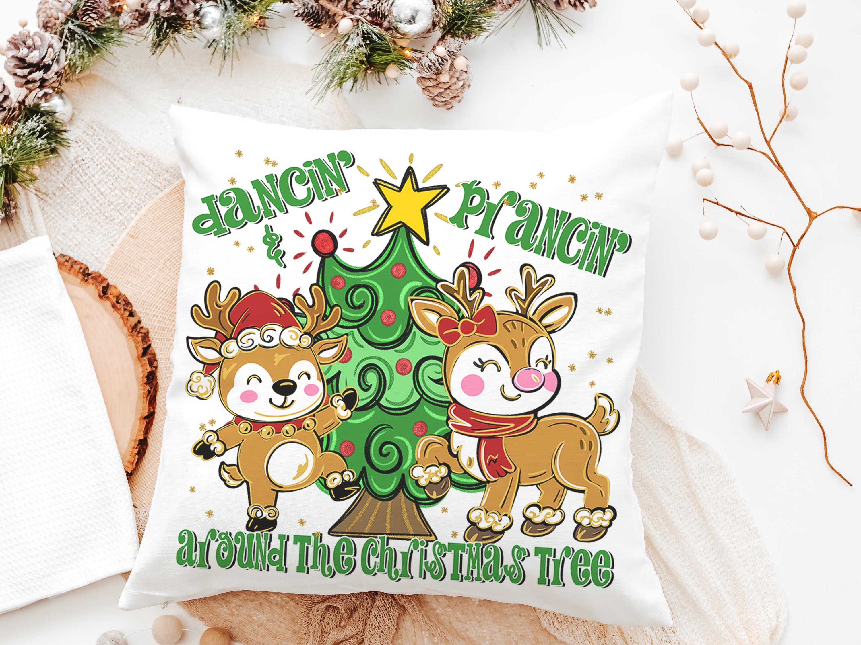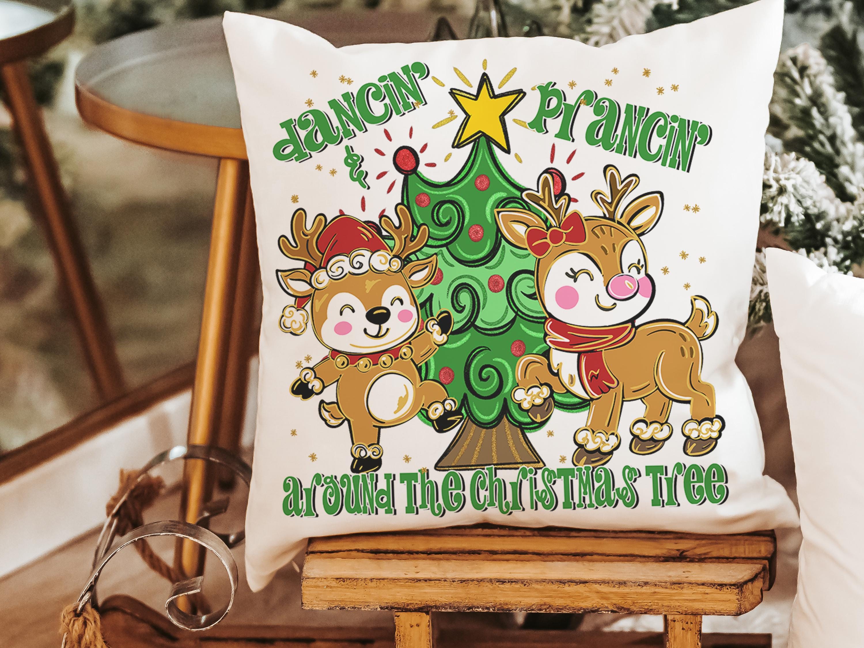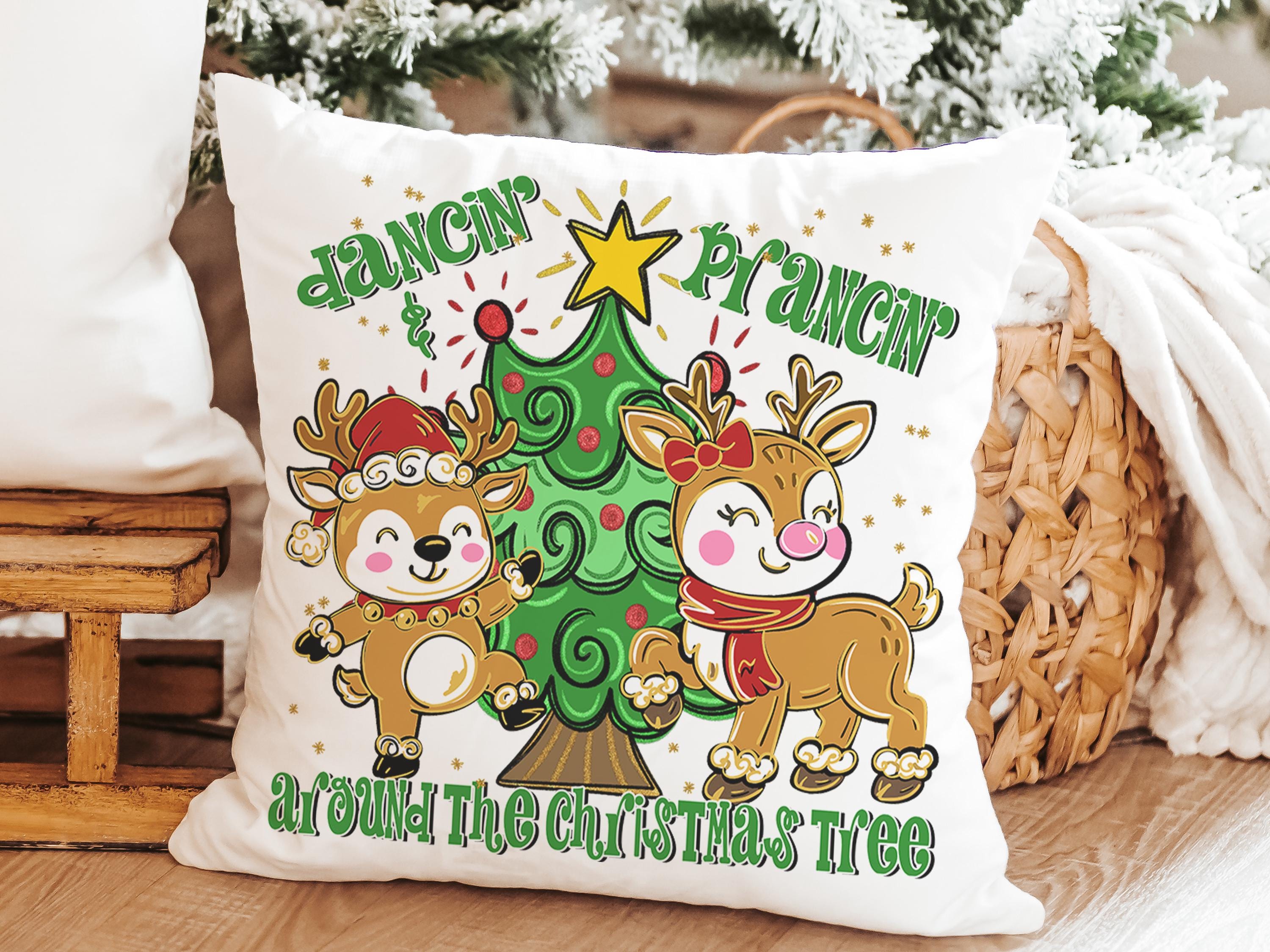 dancing reindeer pillow for girls room, reindeer gifts, trendy decorative throw pillows for chairs, whimsical Christmas gifts for home, best