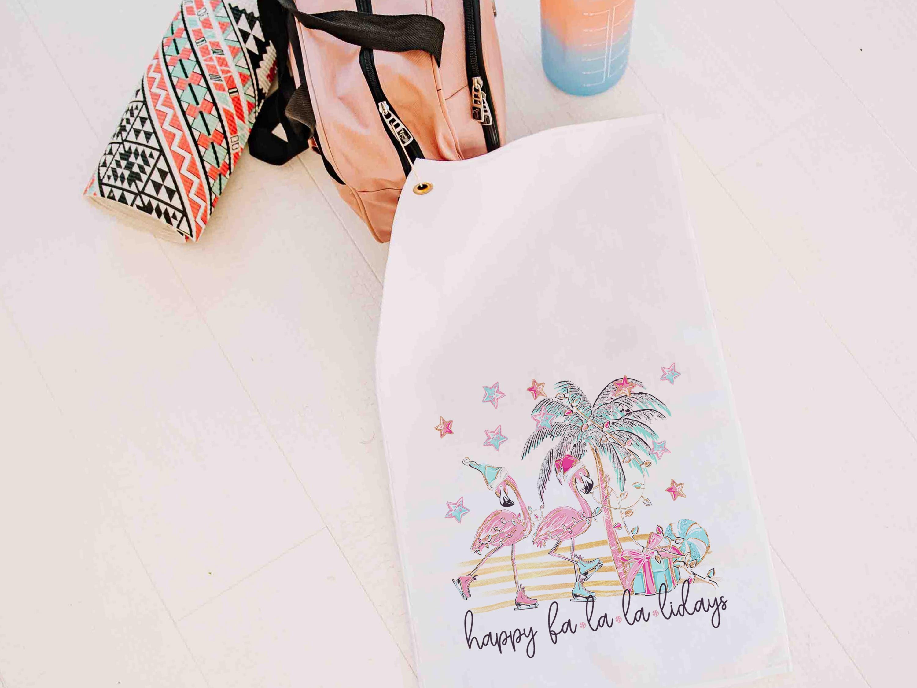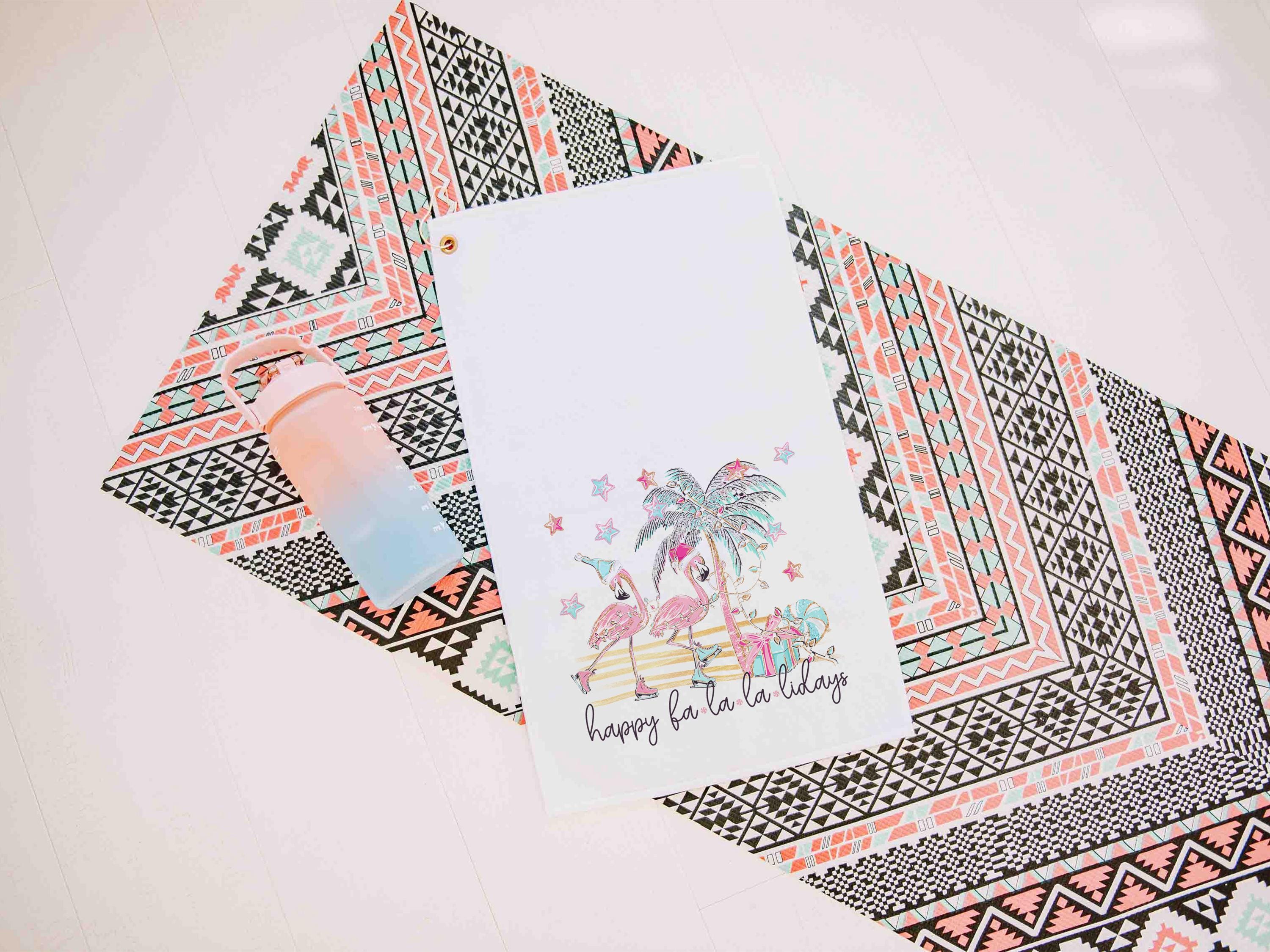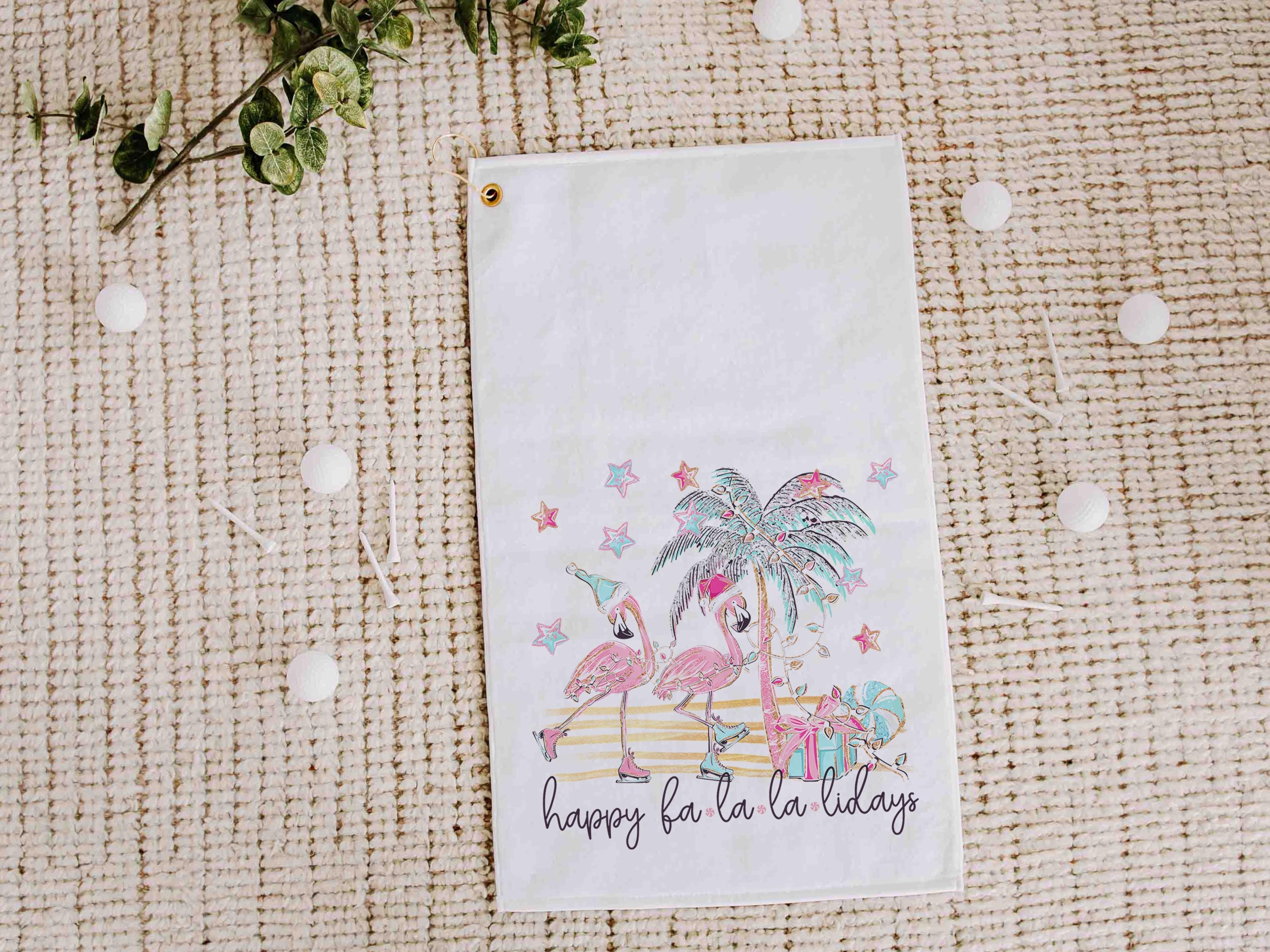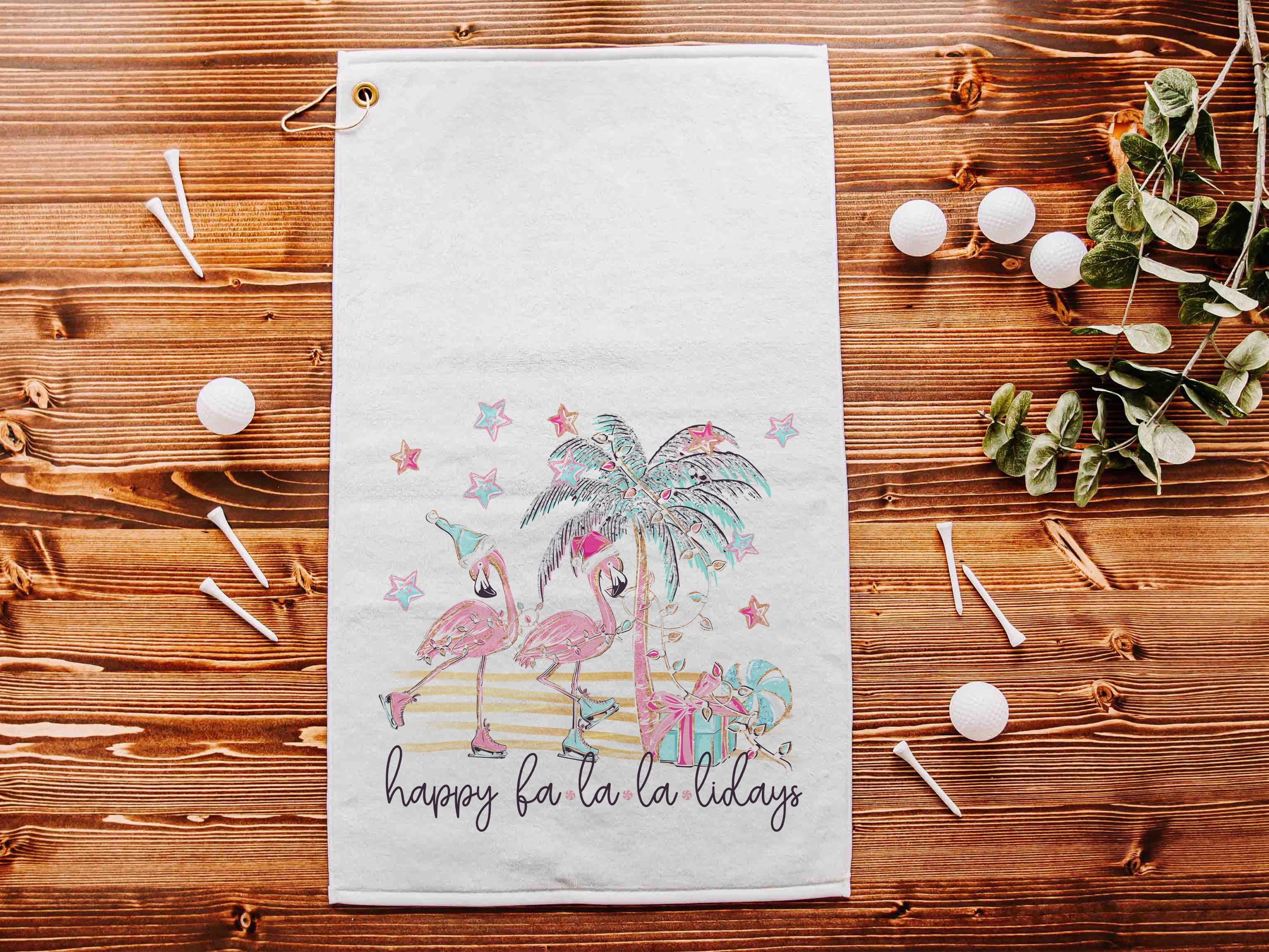 Bring some holiday humor to the course with the happy fa la la la lidays golf towel — a funny flamingo design perfect for Christmas. Ideal for golfers and flamingo fans alike, it makes cute girls’ trip gifts for adult women or playful stocking stuffers for ladies who love golf.