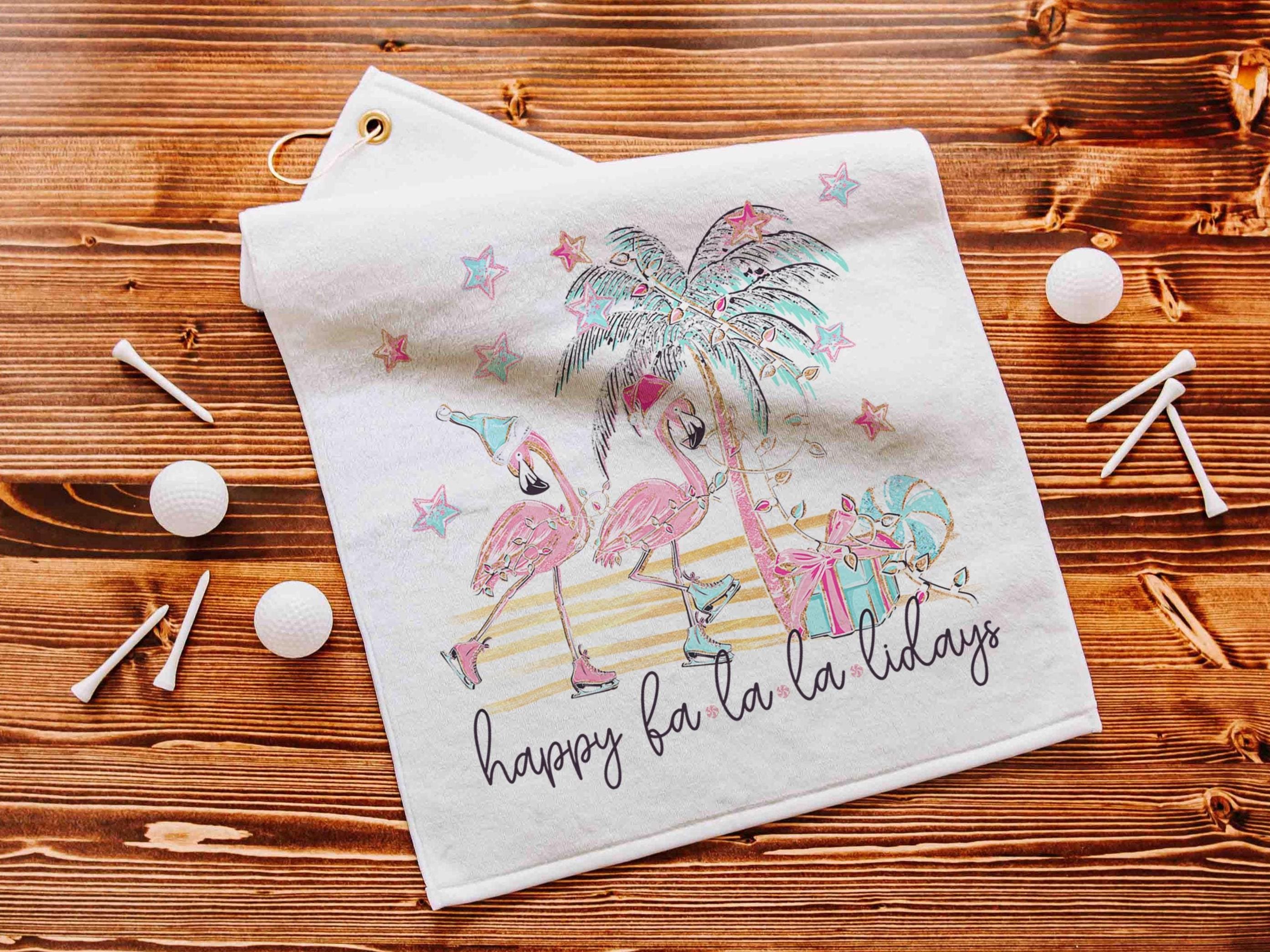 fa la la la mingo funny golf towel Christmas gifts for golfers, flamingo golf girls trip gifts for adult women, cute golf stocking stuffers