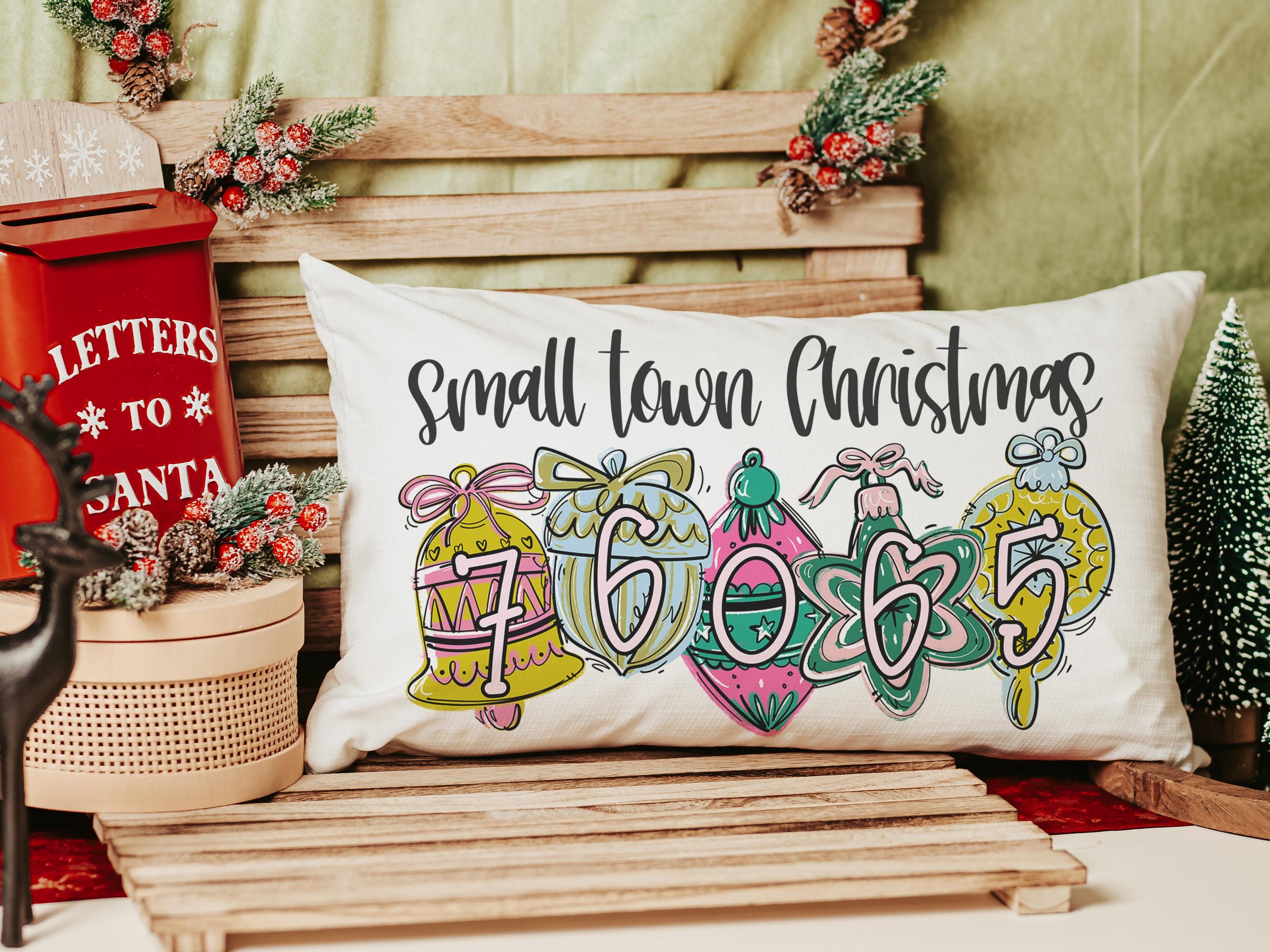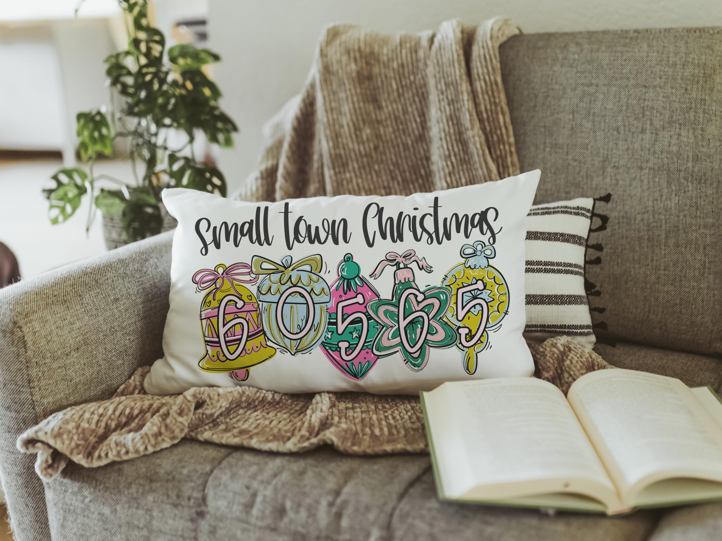 personalized zip code lumbar pillow home decor, small town Christmas hostess gifts for women, trendy decorative throw pillows best sellers
