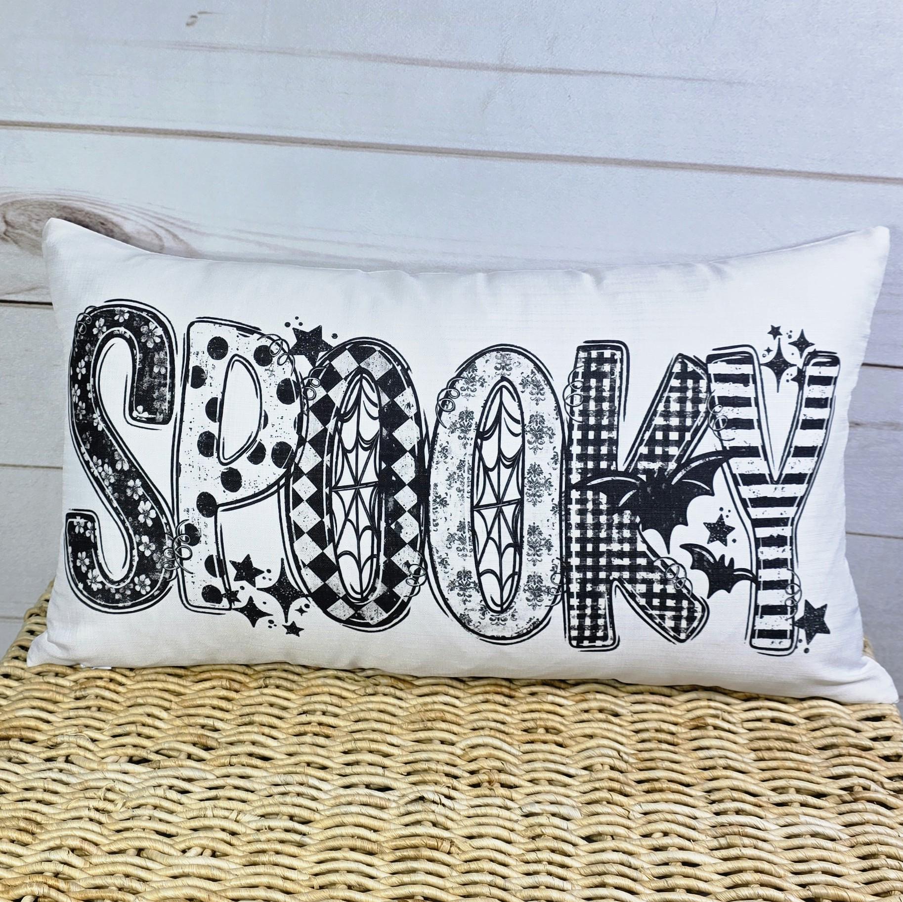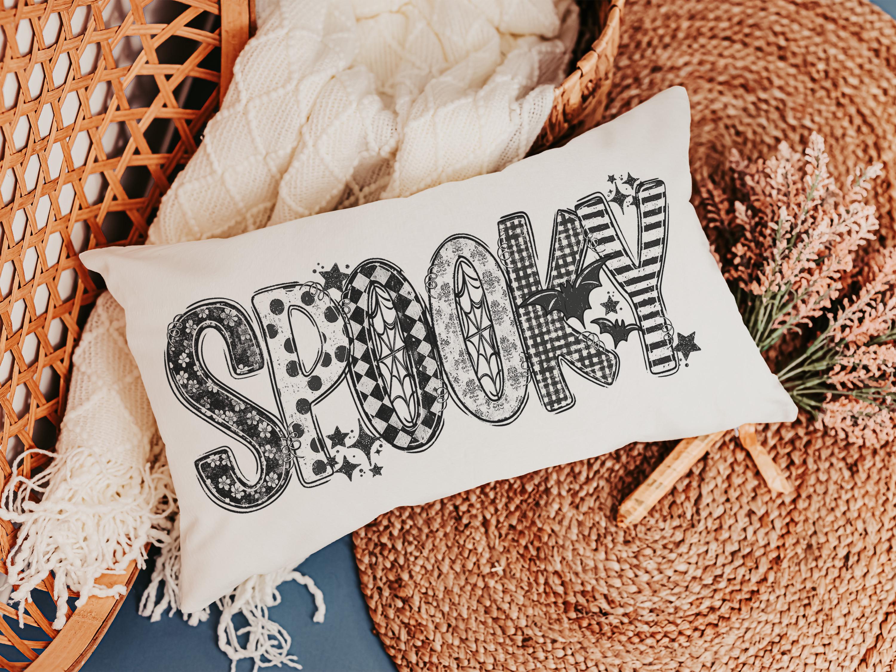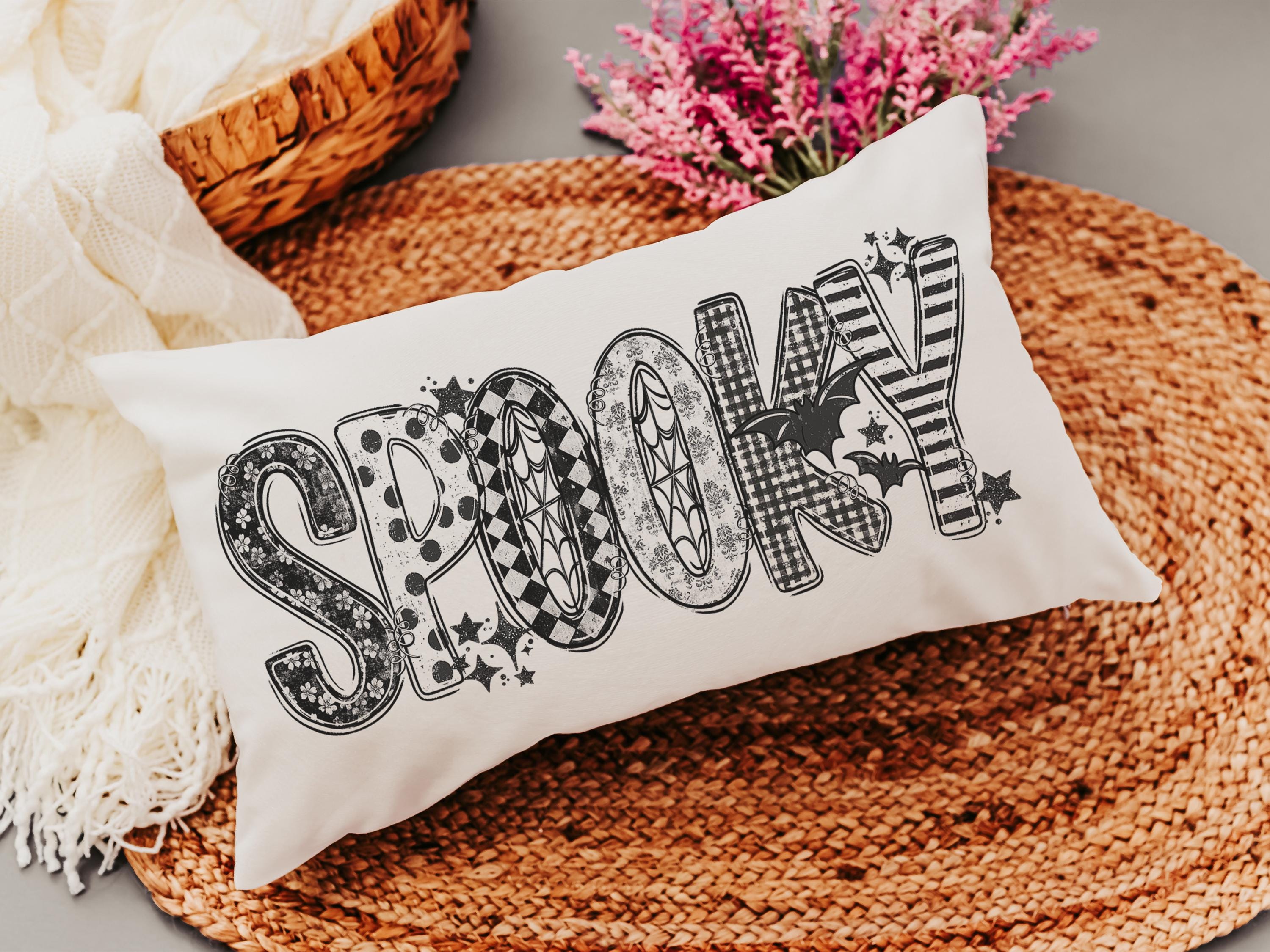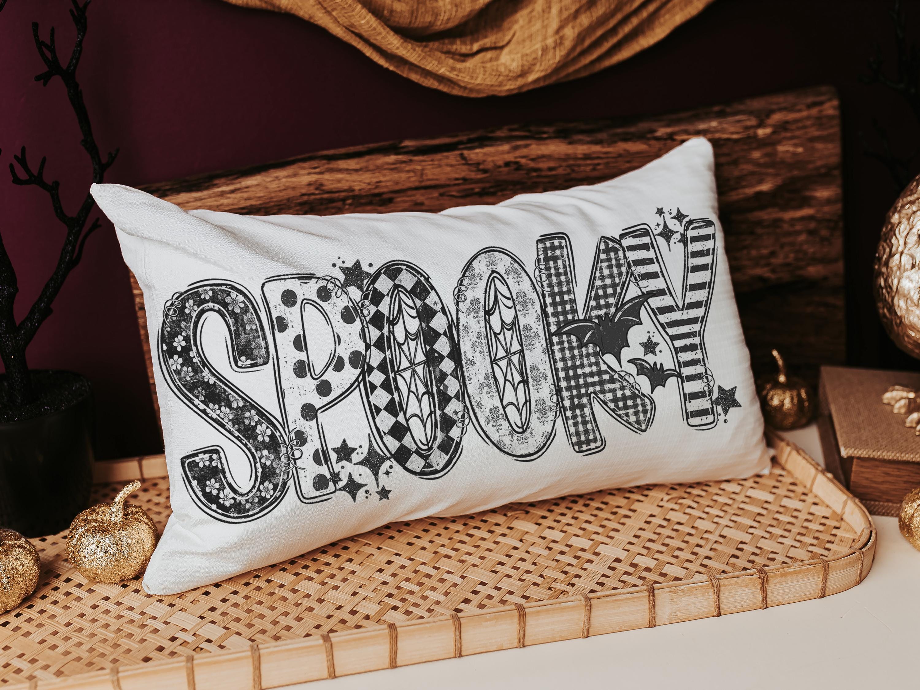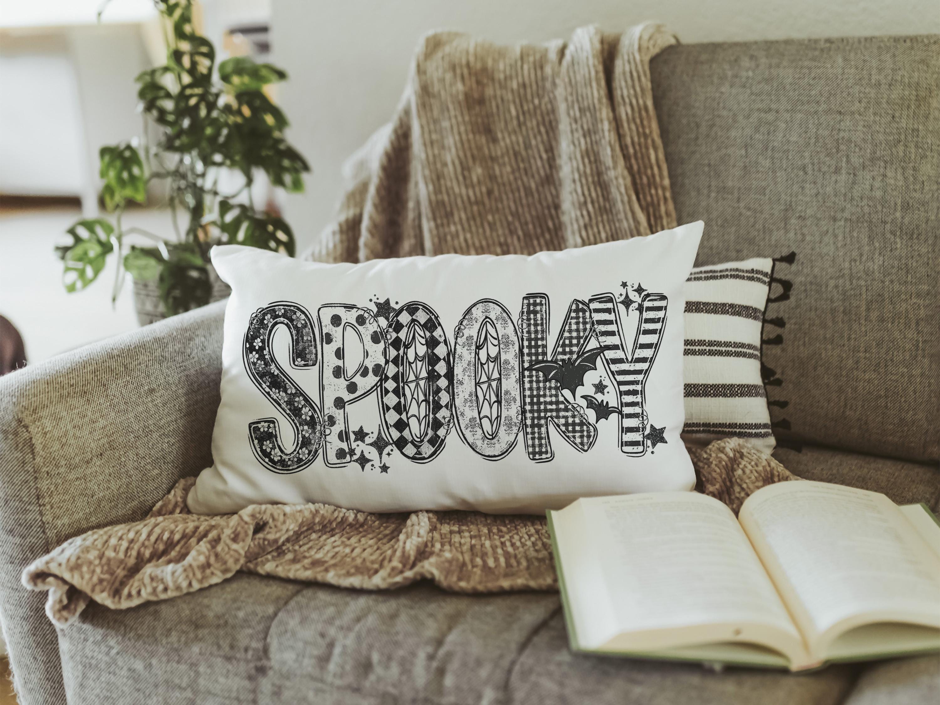 spooky cute Halloween lumbar pillow cover 12x20, Halloween coquette throw pillow for bed, girly goth decor witchy gifts for girlfriend, boo