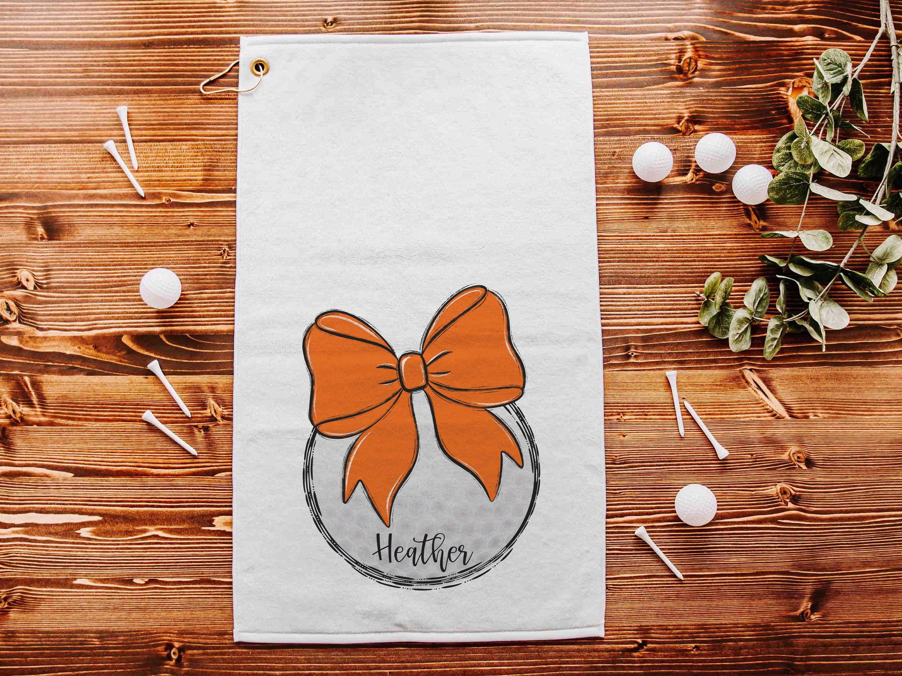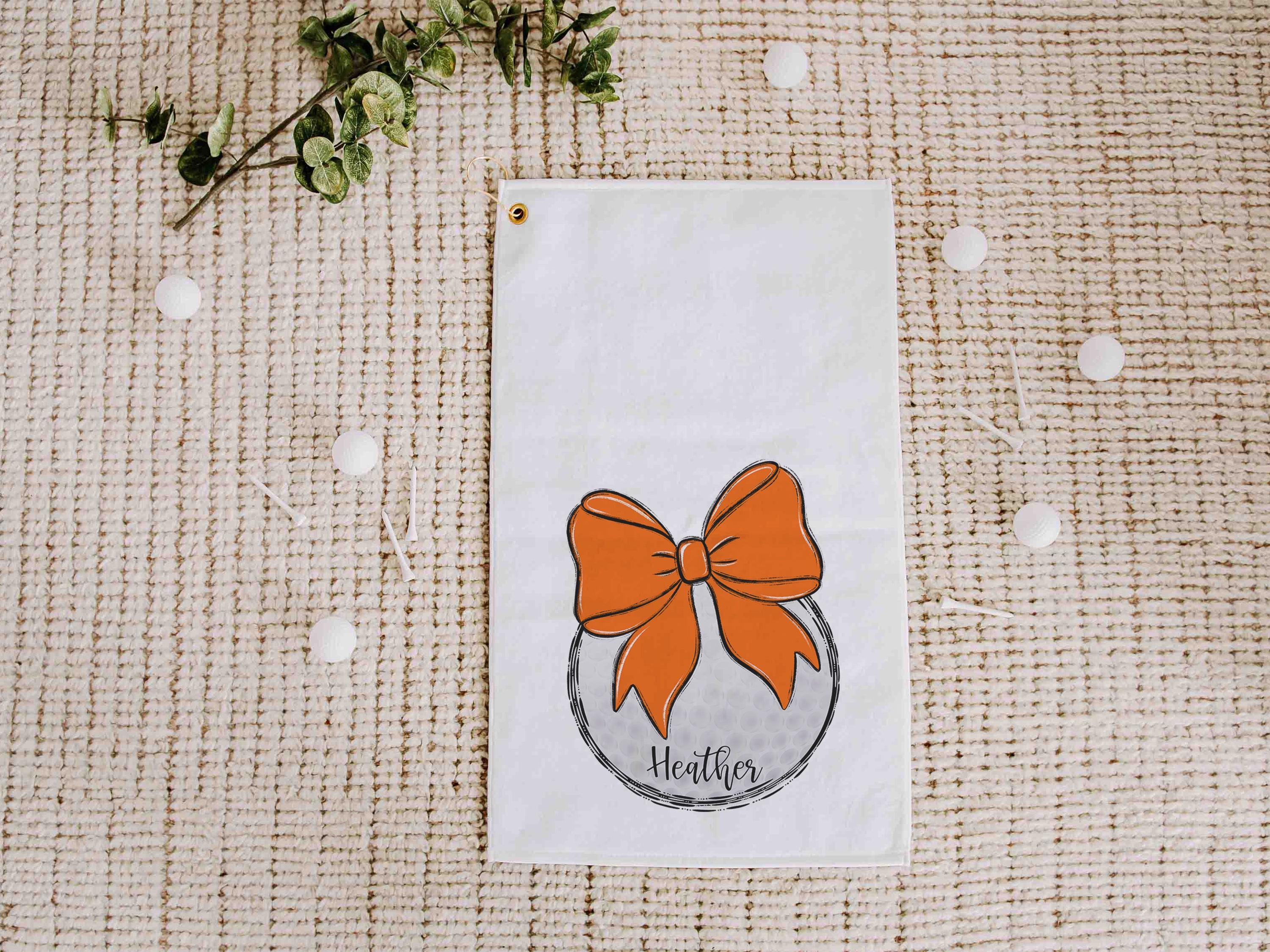 personalized orange school spirit golf towels for golf bags, cute golf Christmas gifts for golfers, golf gifts for high school seniors, best