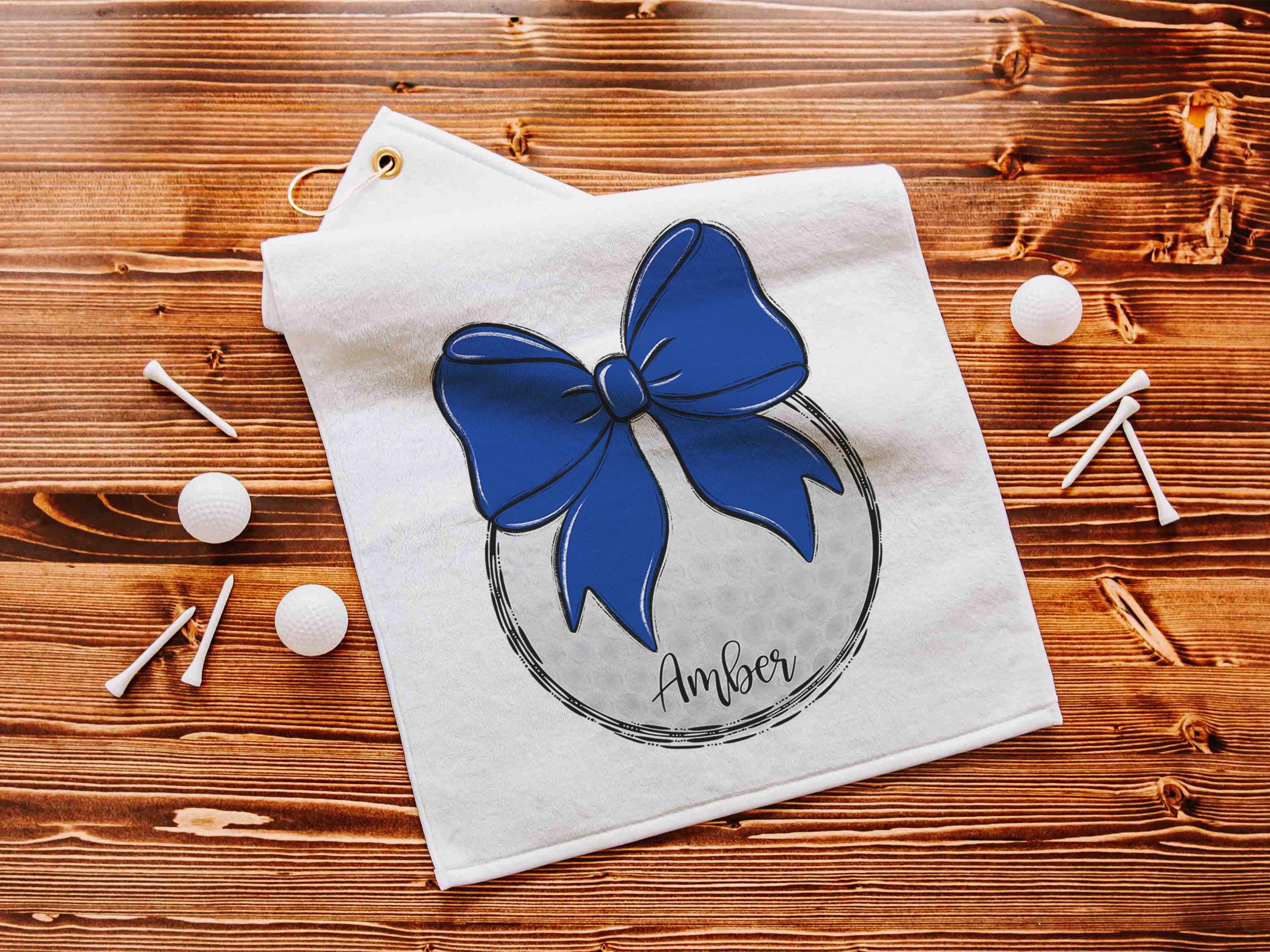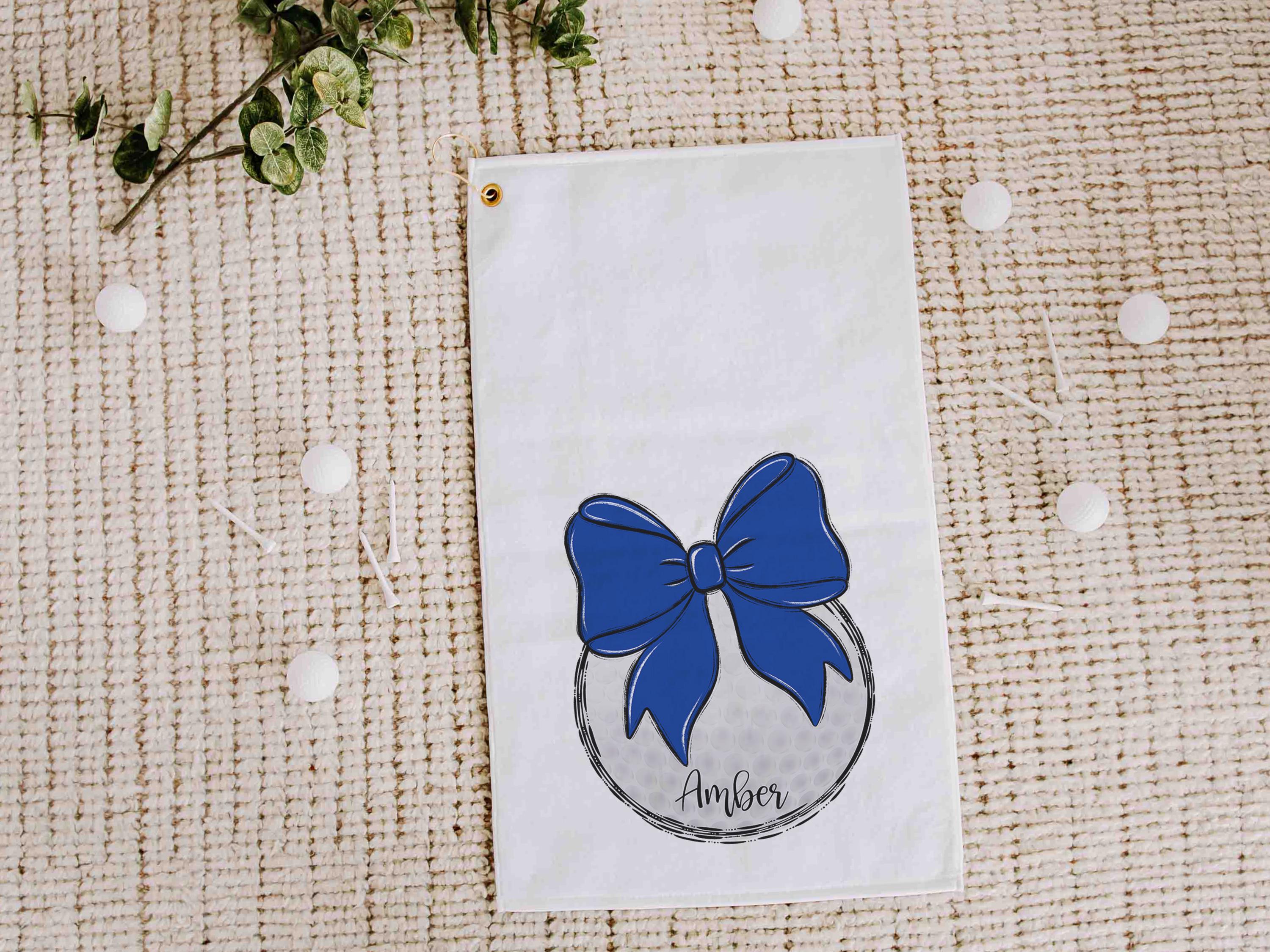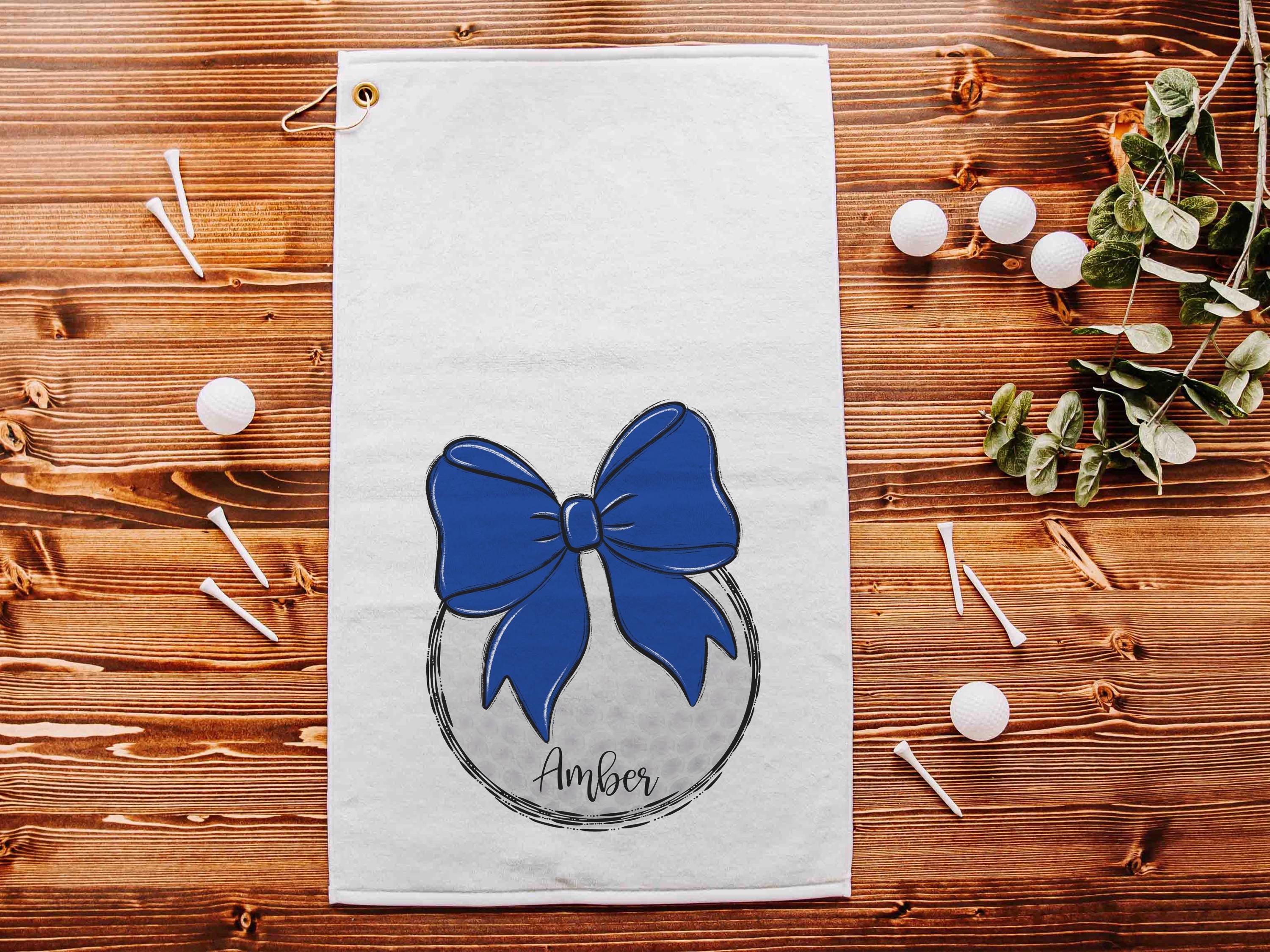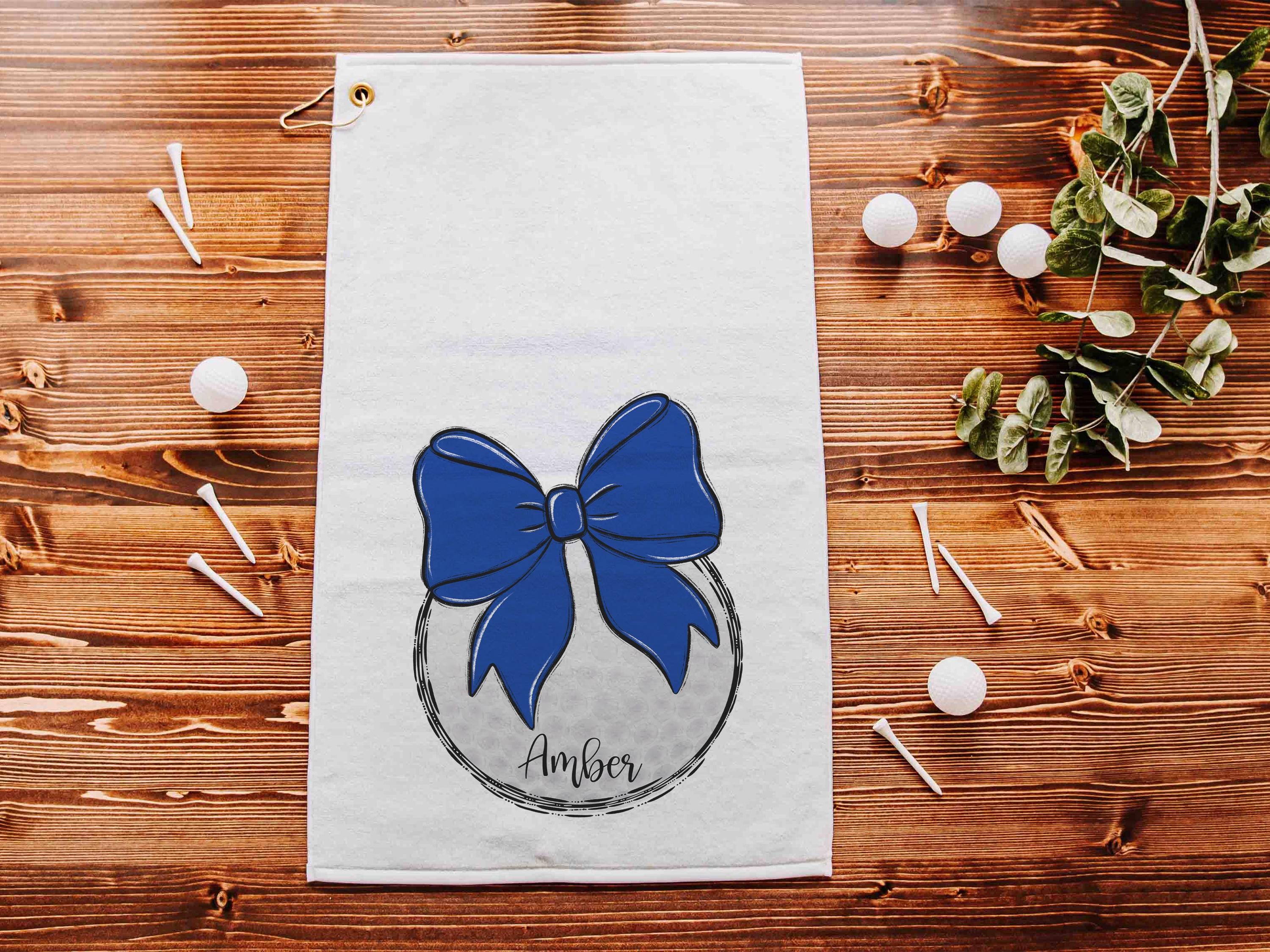 personalized royal blue school spirit golf towel with hook, cute golf bag accessories for women, golf Christmas gifts for golfers, golf mom