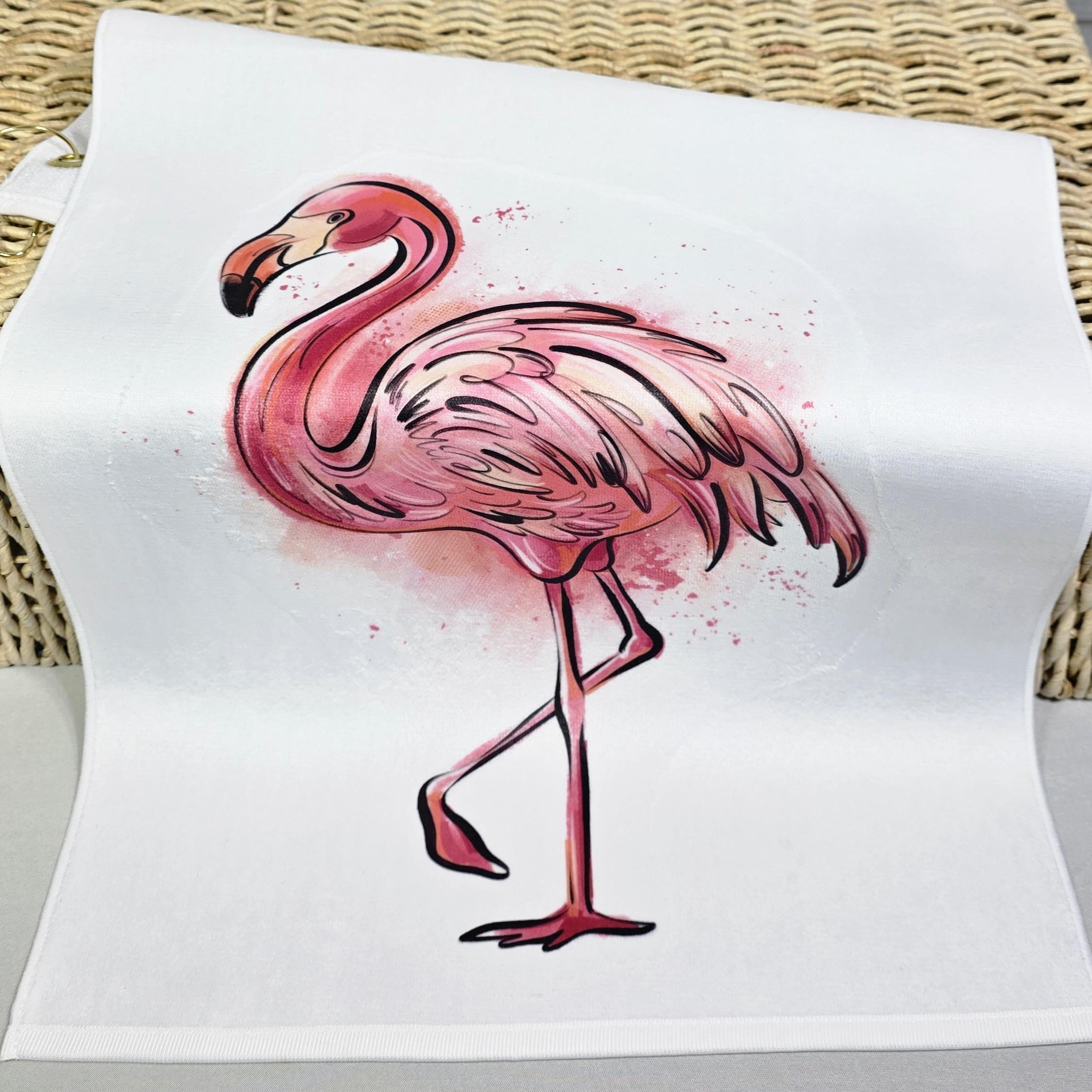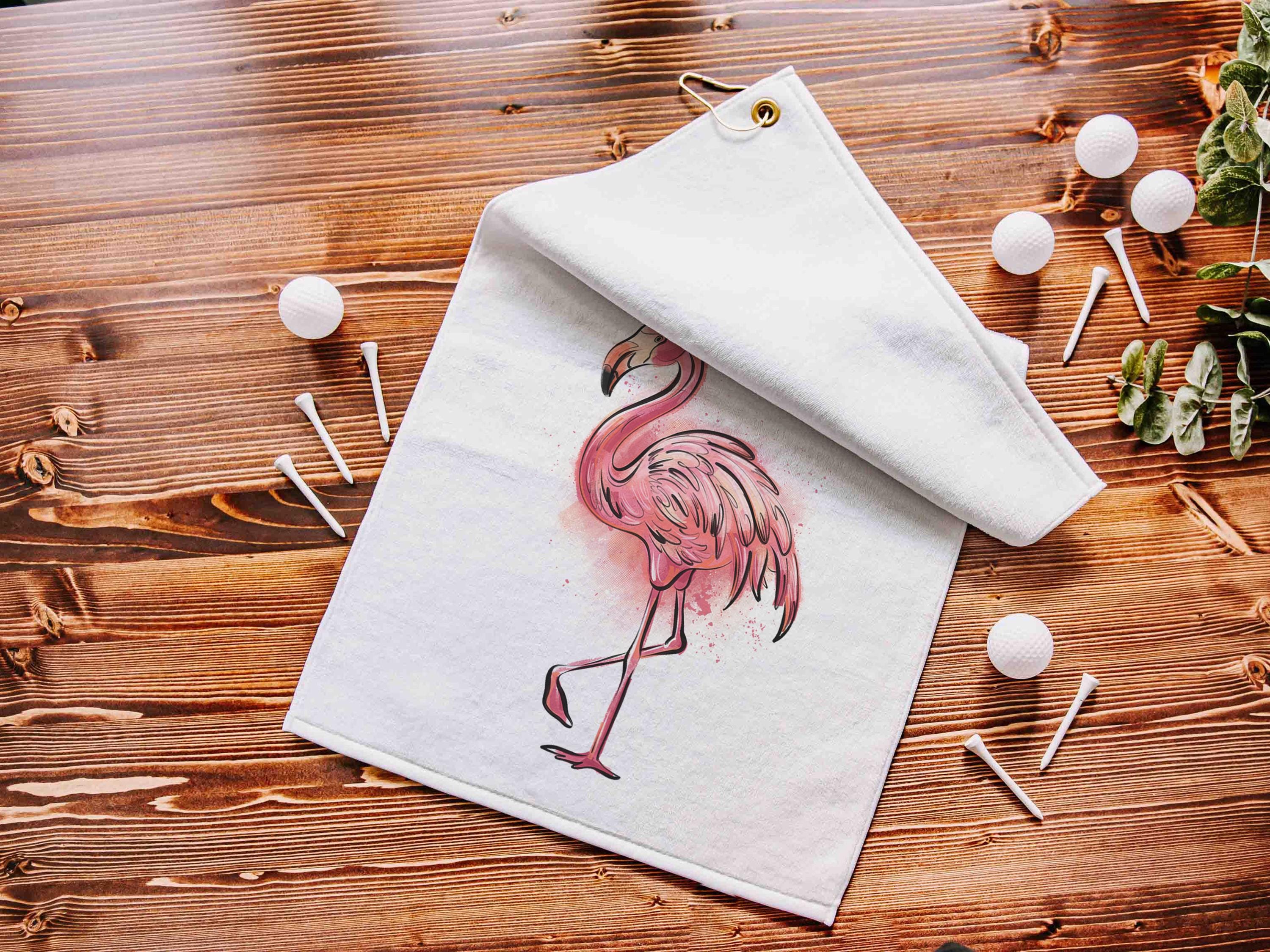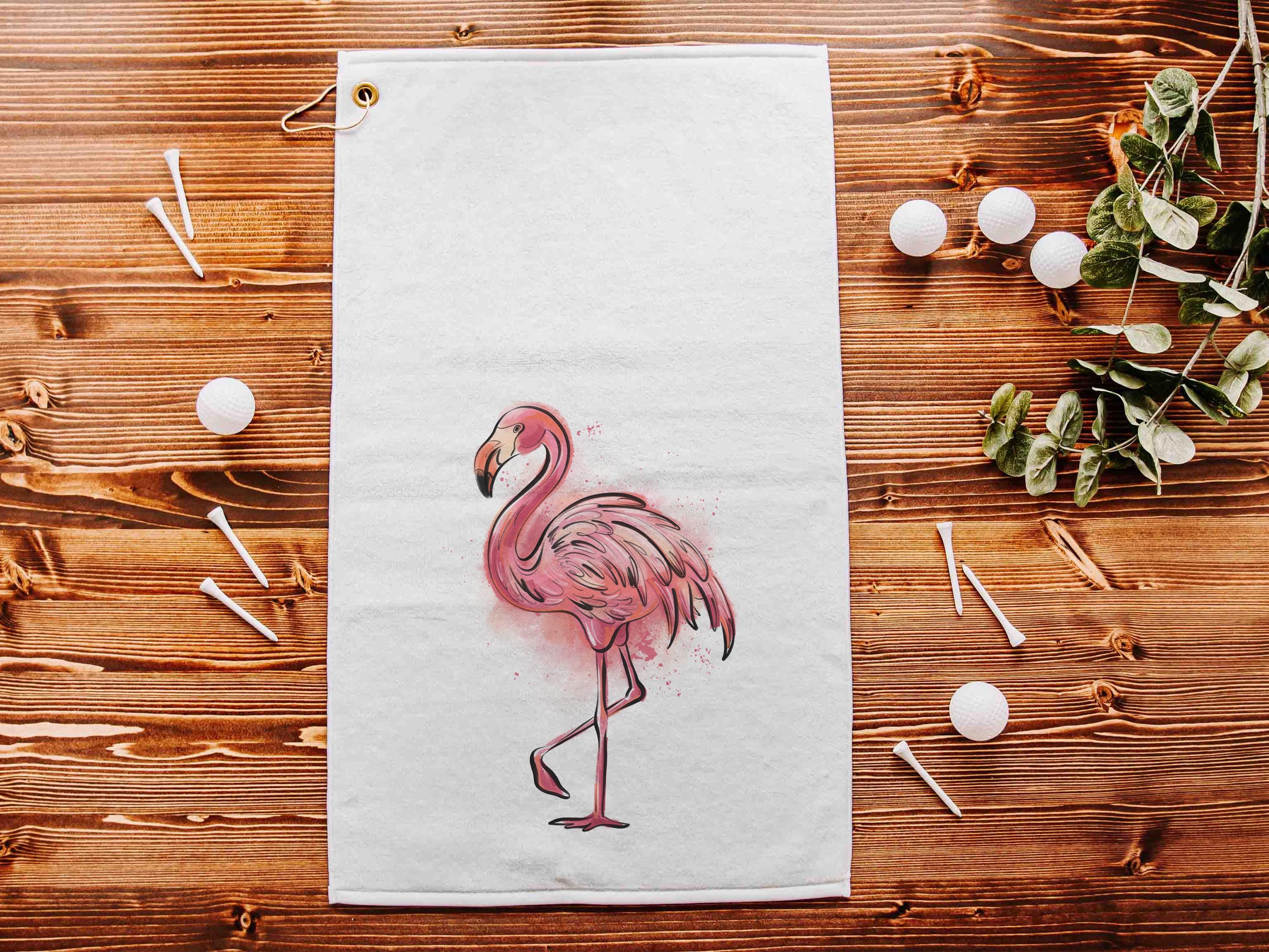 Our cute flamingo golf towel makes a fun golf bag accessory. Perfect as a golf ball towel for adult women, it’s a fun choice for girls’ trip gifts, golfing gear, or golf Christmas presents for golfers.
