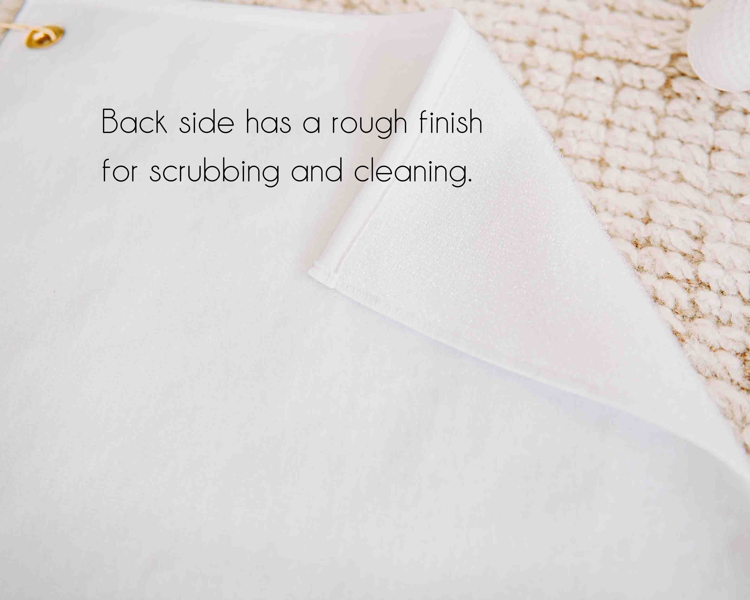 • Back side has a rough finish for scrubbing and cleaning