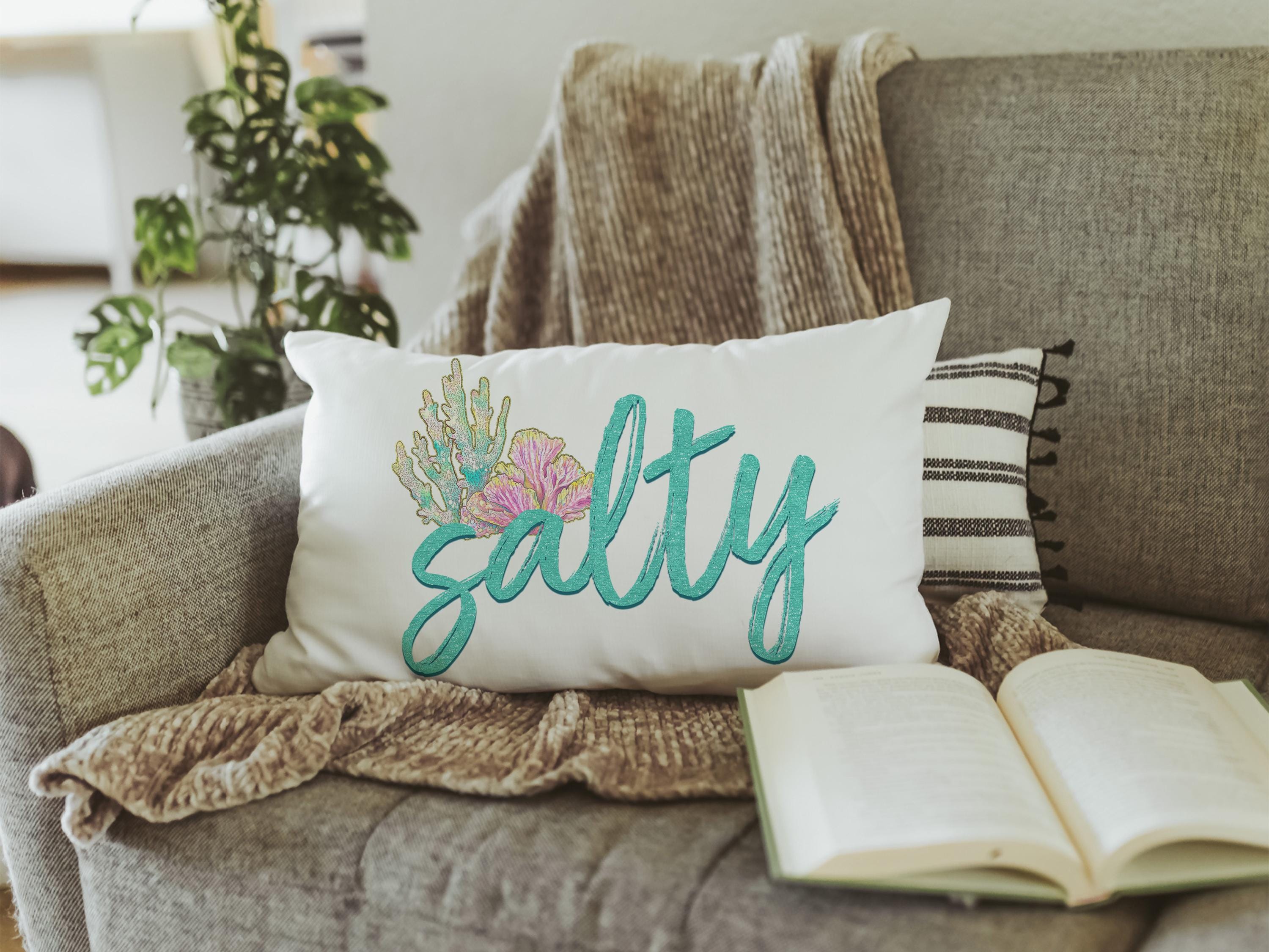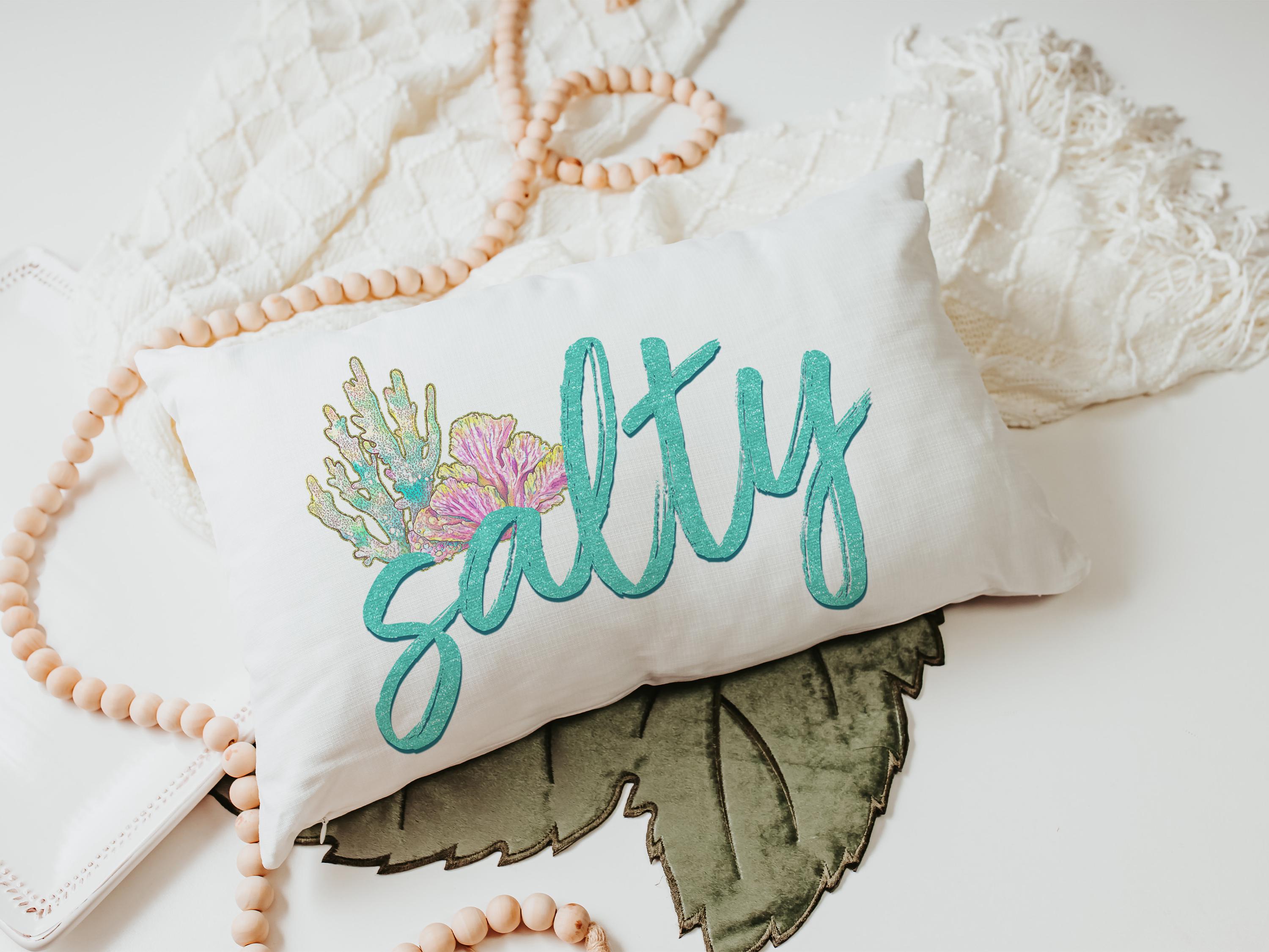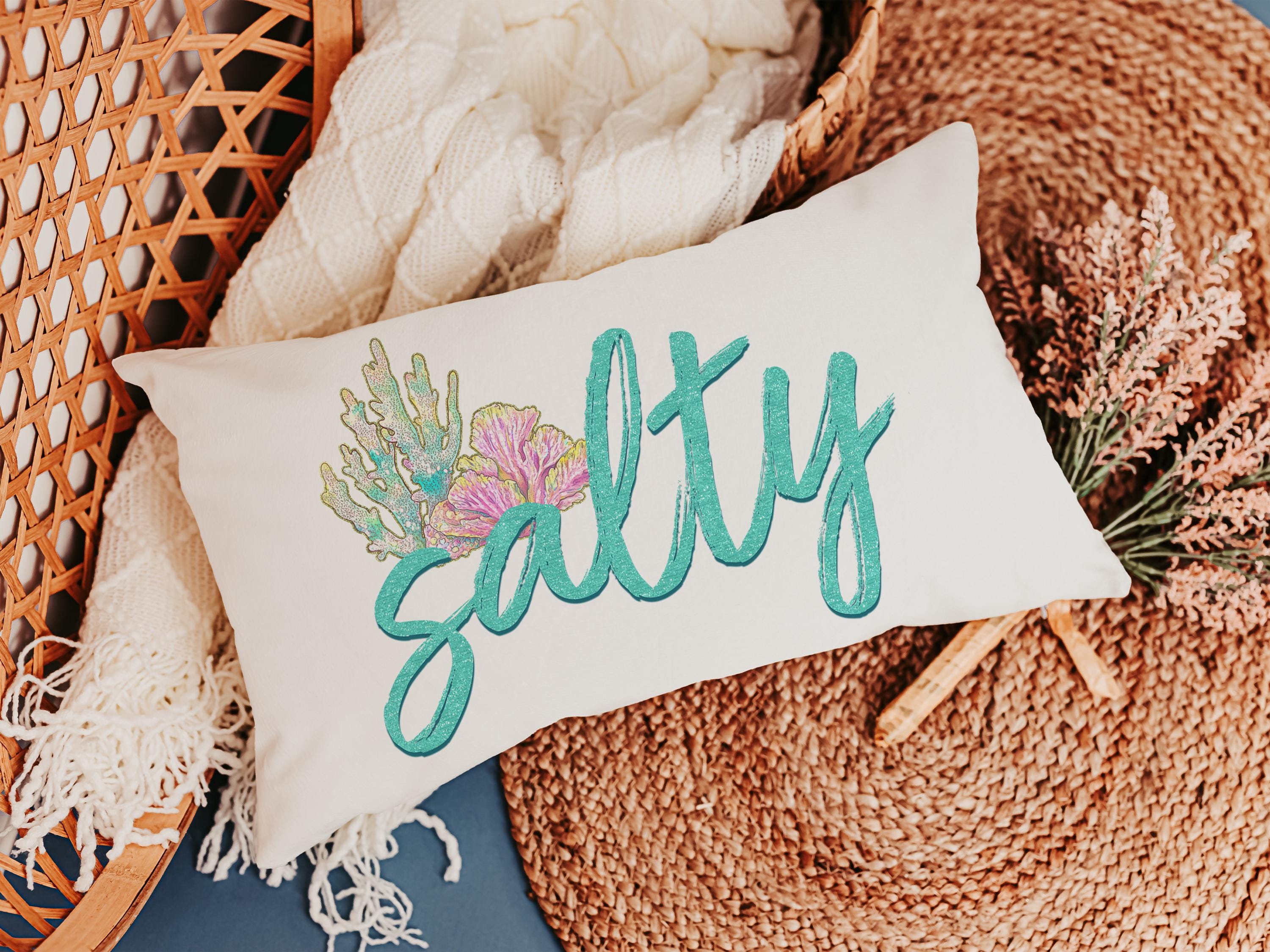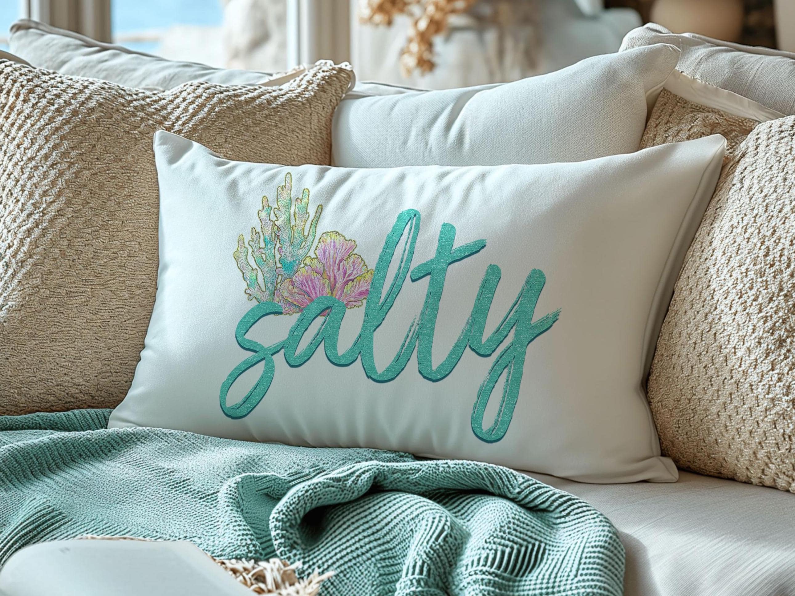 Add coastal personality to your space with our Salty Beach pillows, bringing fun mermaid vibes to a couch, dorm, or beach house. These decorative pillows make funny gifts for college girls and the perfect coastal housewarming gift for a daughter.