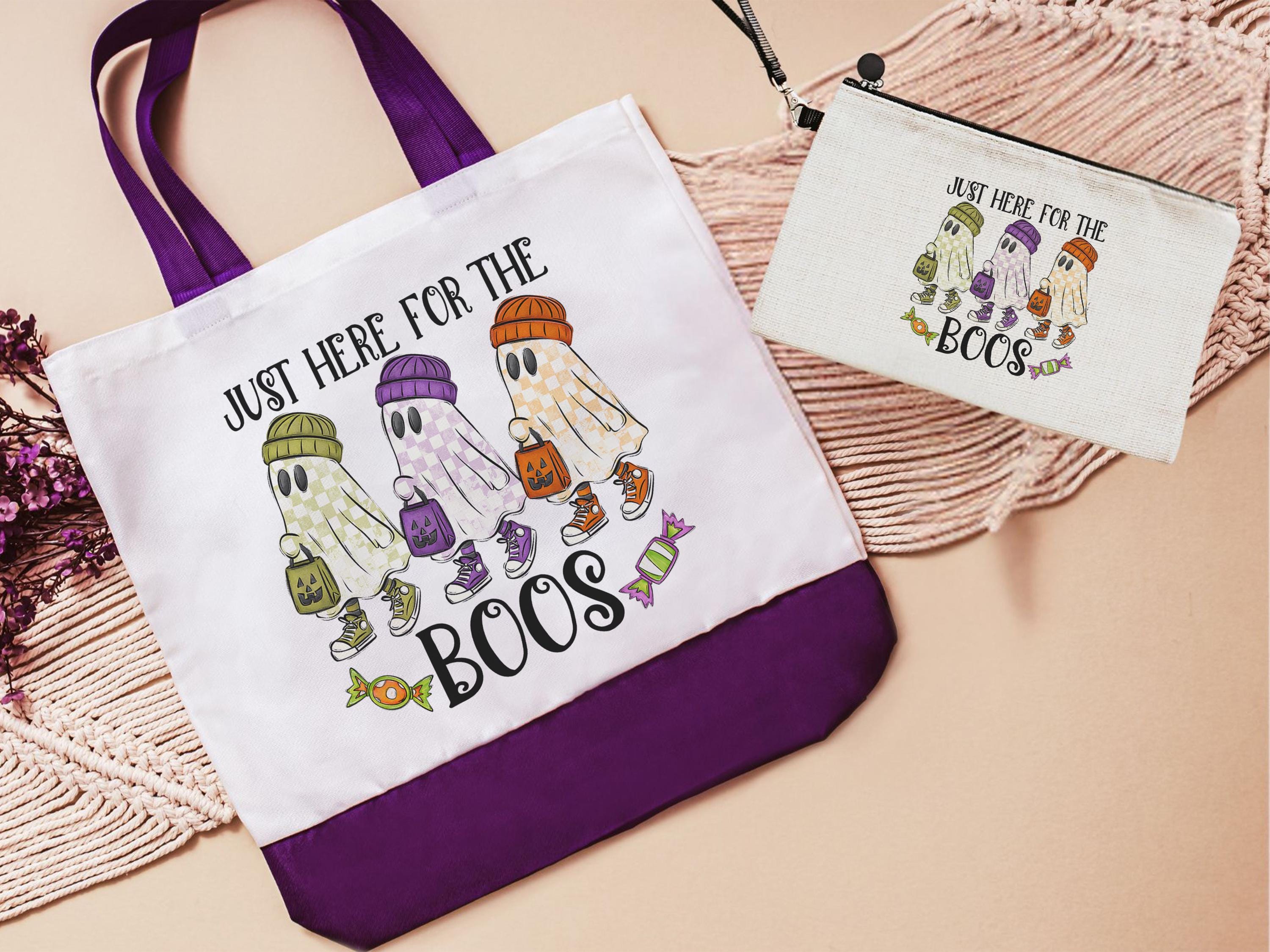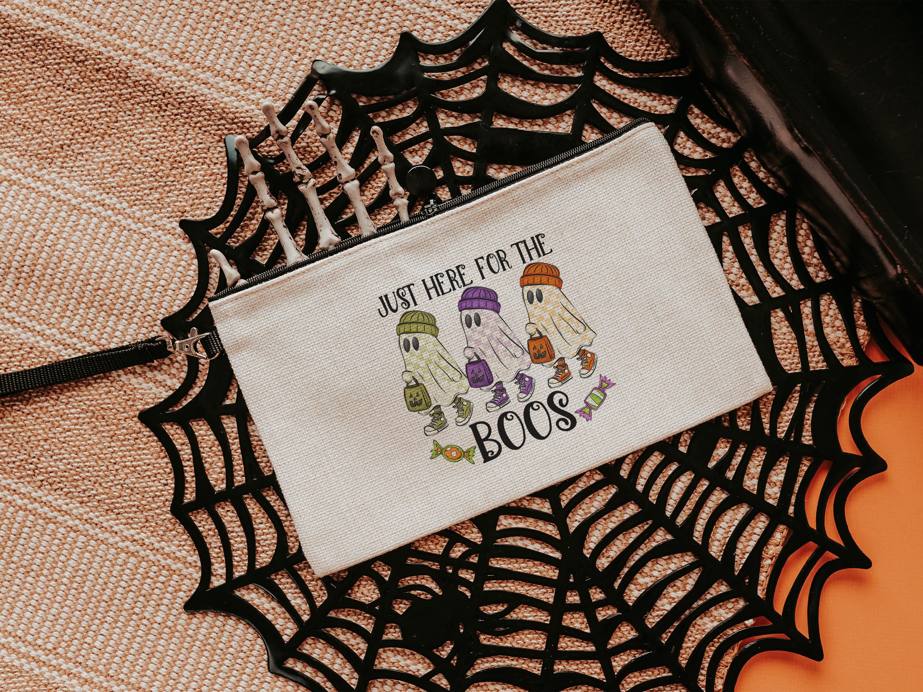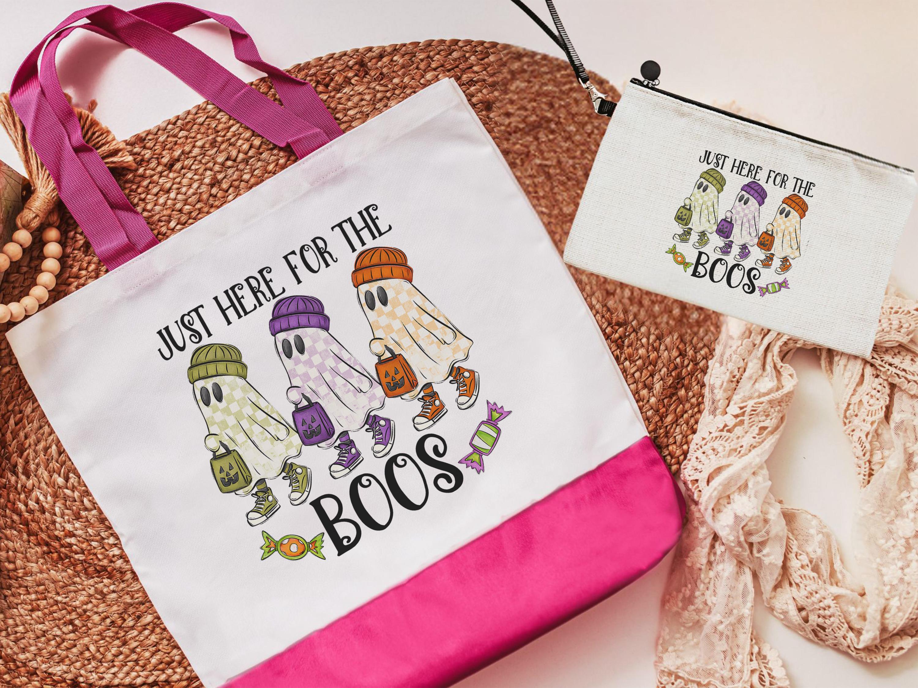 Perfect for spooky season, this “Just Here for the Boos” trick-or-treat bag is fun and practical for girls or women who love fun Halloween style. With its checkered ghost design, it makes a great boo basket gift, makeup bag, or funny tote for carrying candy, books, or everyday items.