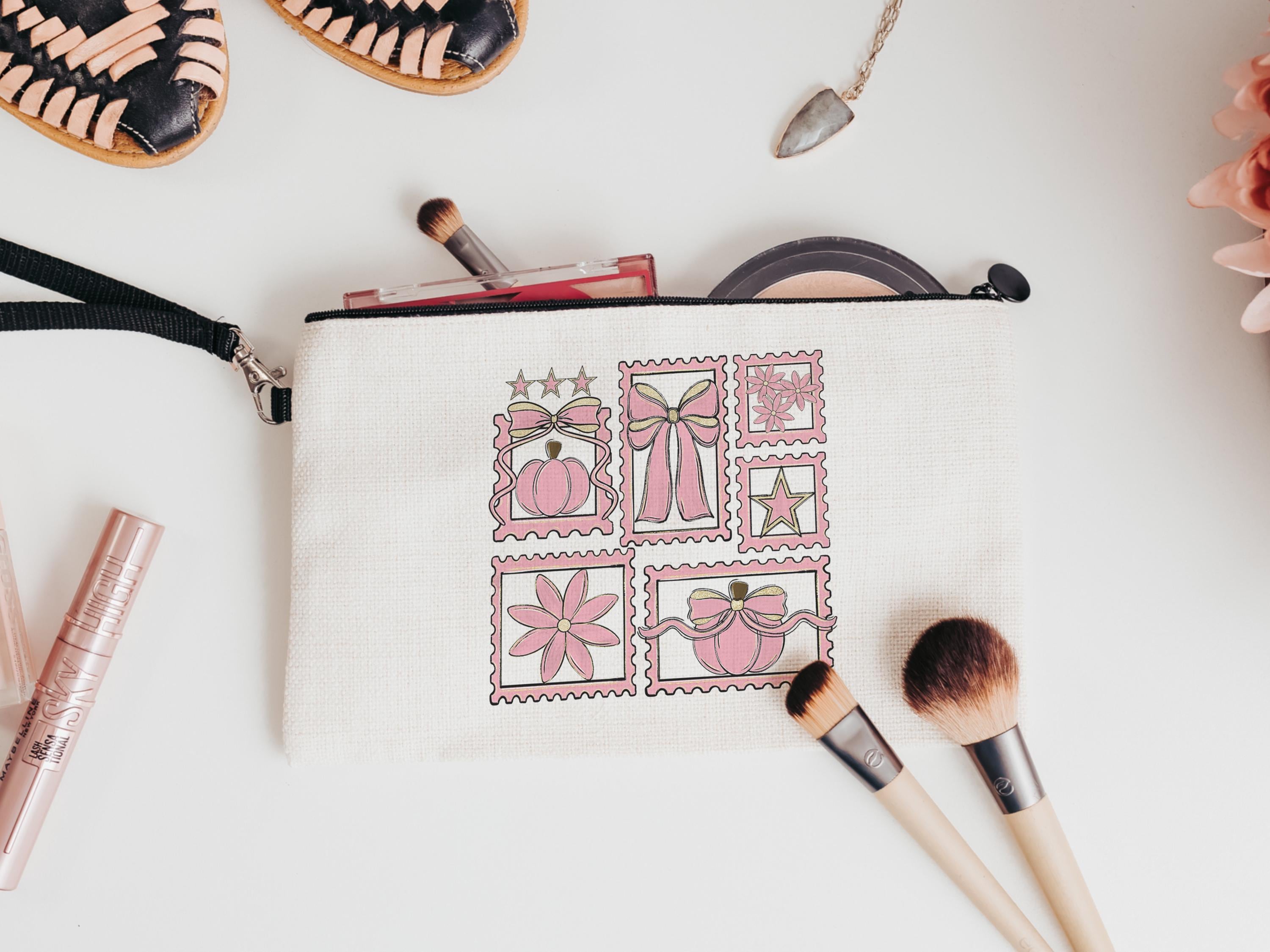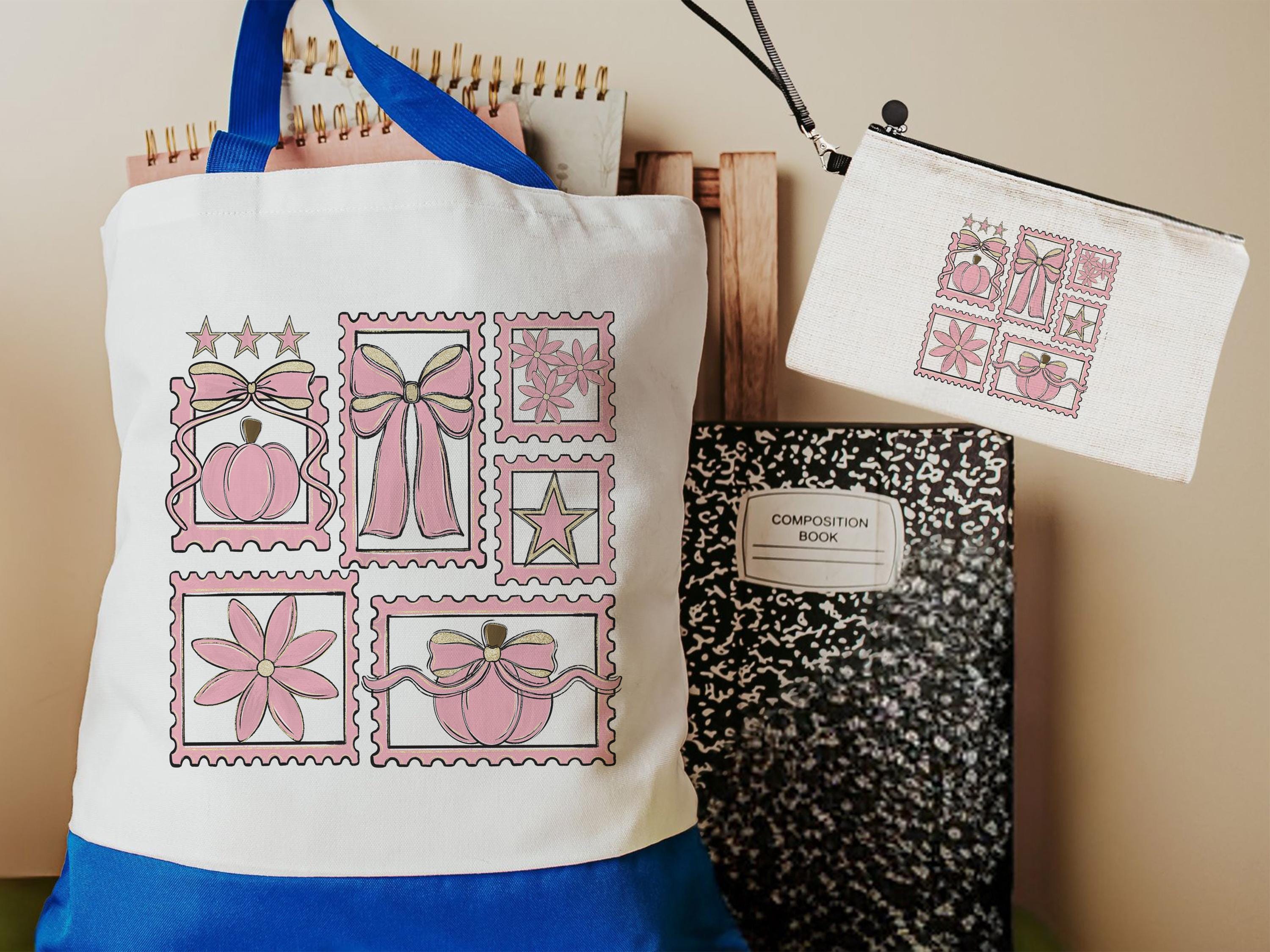 Celebrate both the season and strength with this breast cancer awareness pink October tote bag and matching makeup bag. These also make cute Halloween coquette trick-or-treat bags. The pink pumpkin design makes it a thoughtful survivor gift, boo basket idea, or everyday carry-all for girls and women. Matching makeup bags are also available, making it a versatile option for gifts or personal use.