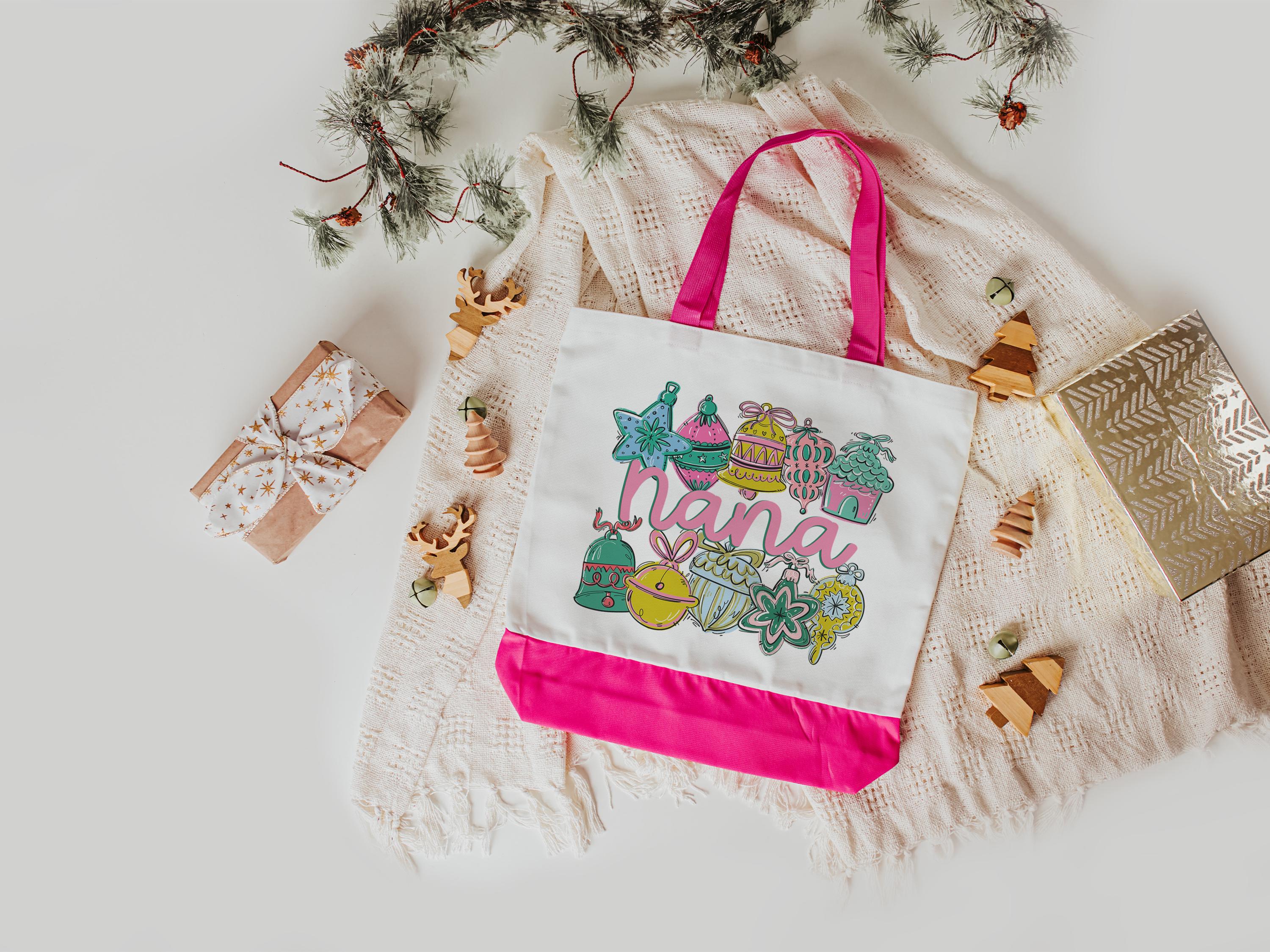 pink Christmas tote bag for nana Christmas gifts from grandchildren, whimsical Christmas makeup bags best sellers, stocking stuffers for