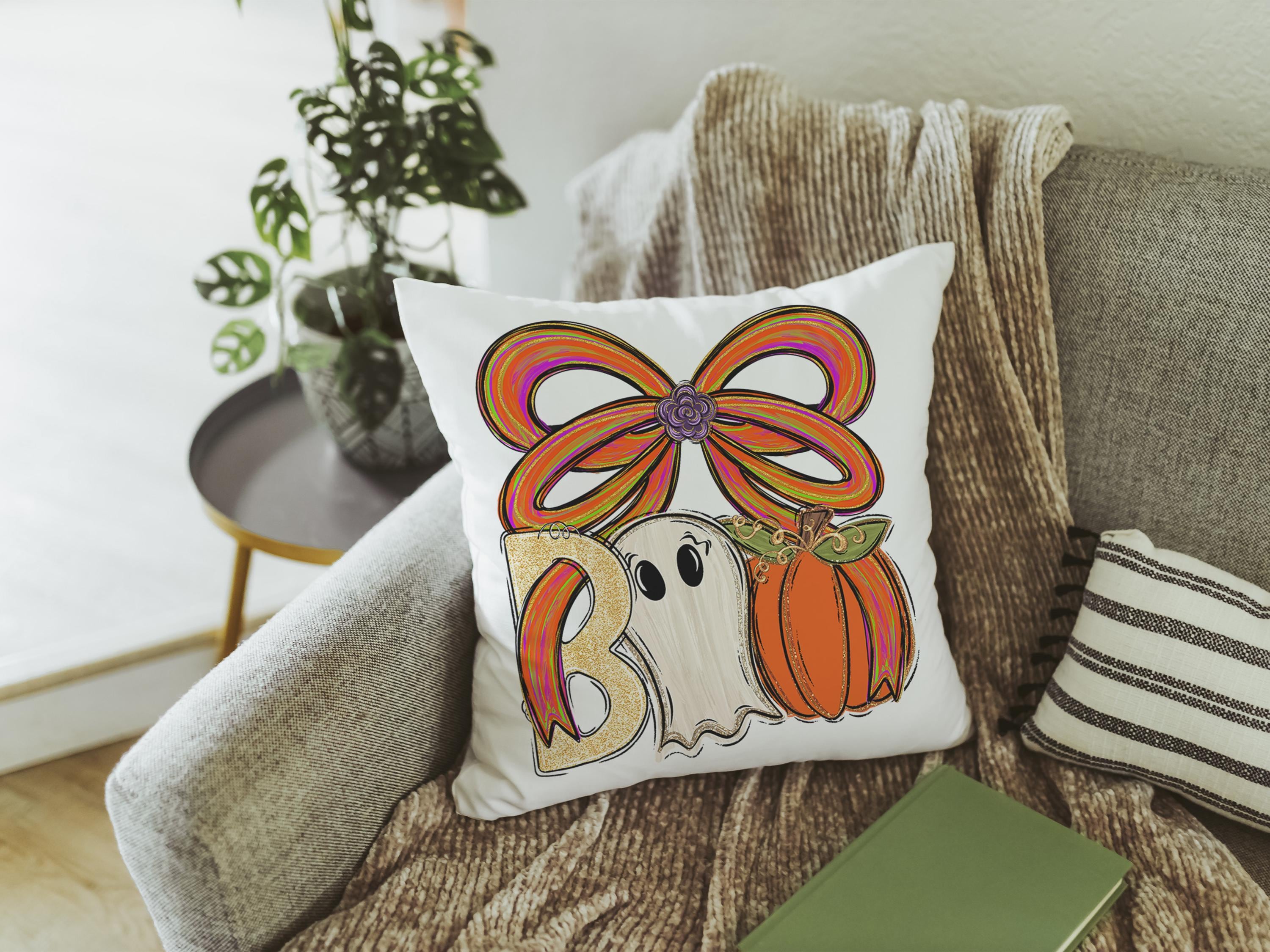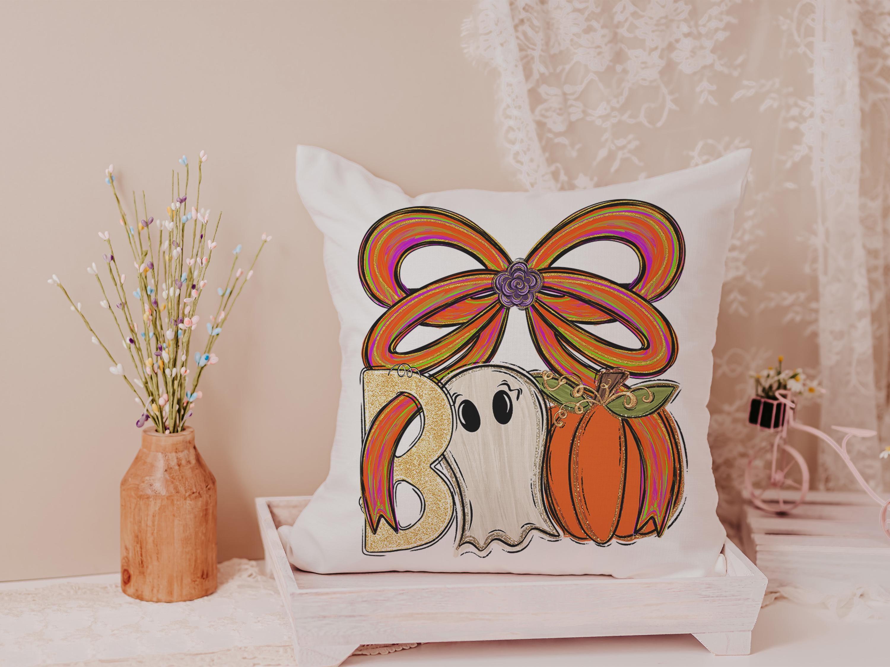Bring a trendy touch to spooky season gifts with this fun boo Halloween throw pillows for the chair or matching cute ghost kitchen towels. Perfect for boo basket gifts, fall host gifts, or Halloween basket stuffers. Purchase separately or as a set.
