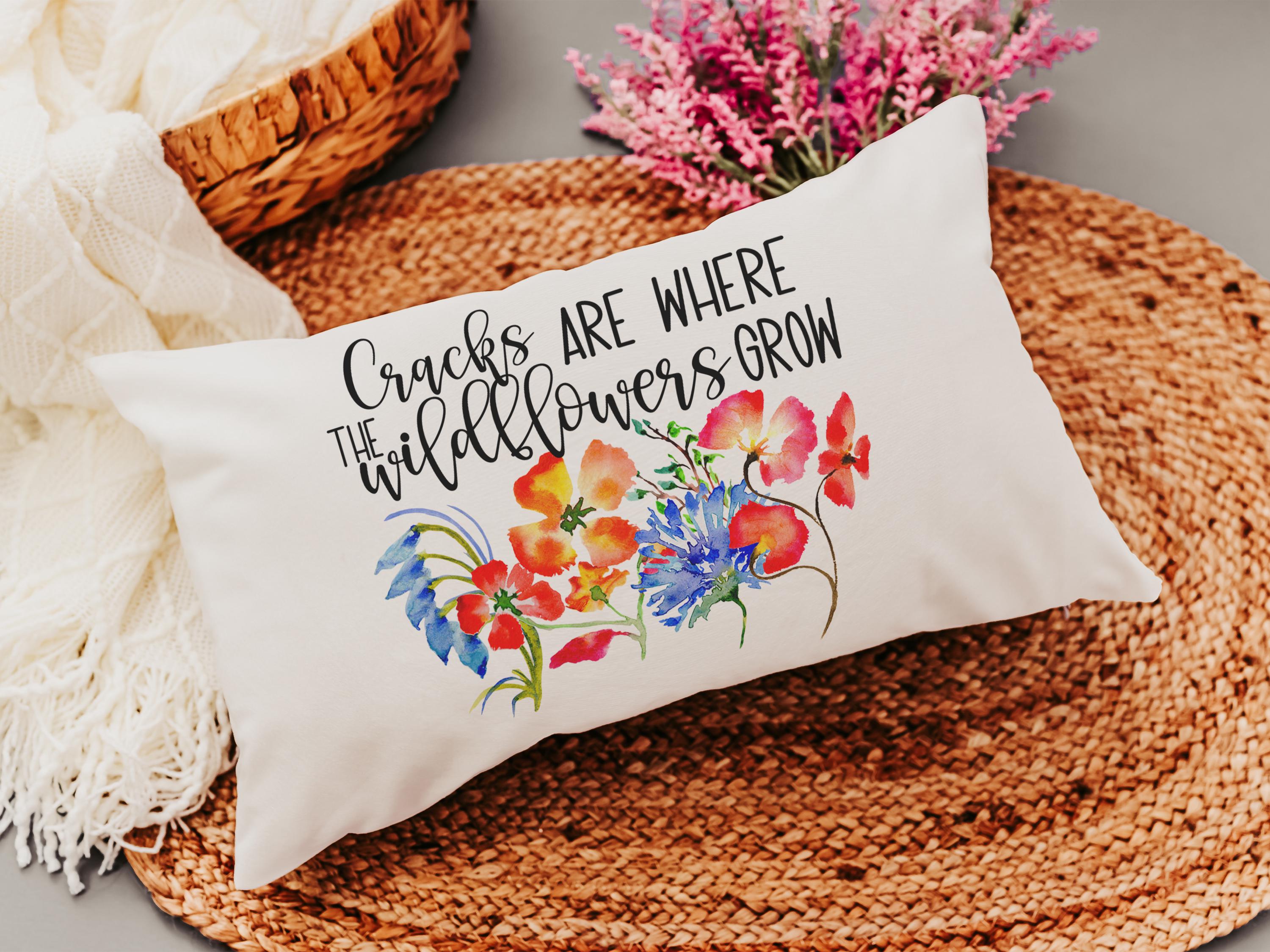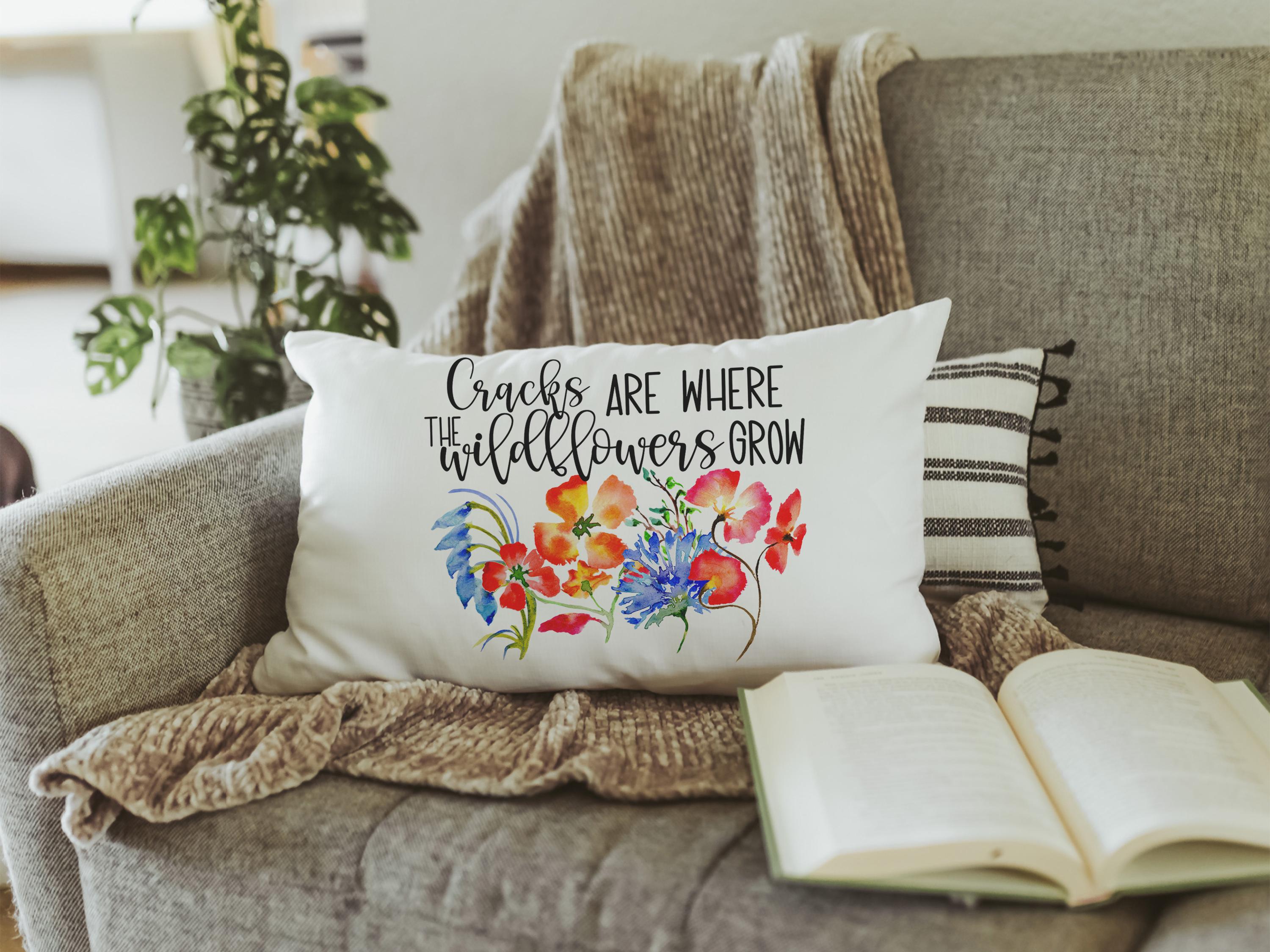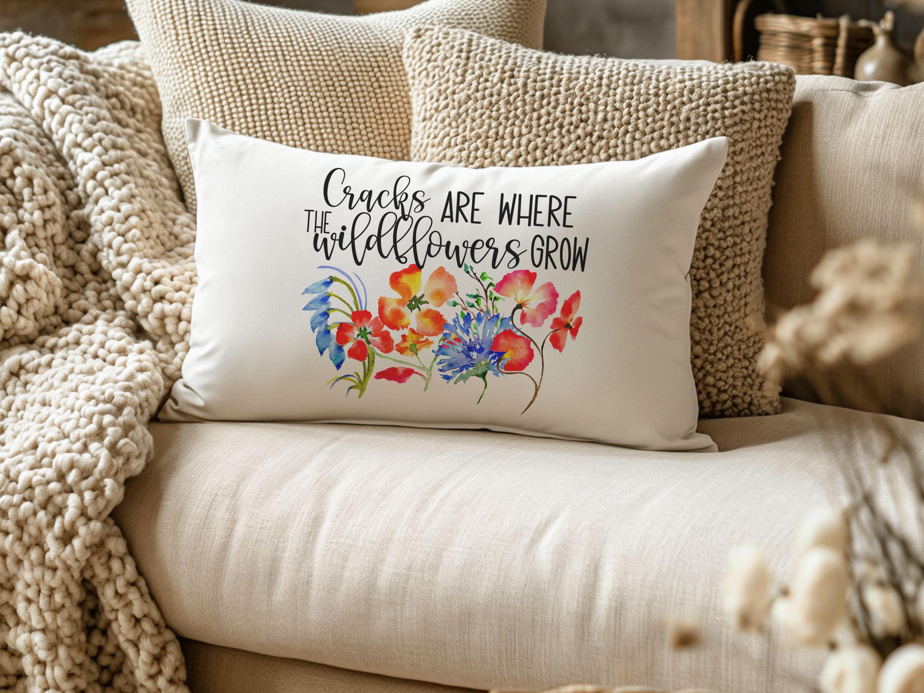 Bring floral beauty to your home with Where the Wildflowers Grow lumbar pillows featuring red poppies and blue cornflowers. Perfect for the couch or dorm, these floral decorative pillows make cute housewarming gifts for a daughter or thoughtful accents for college girls. Available in two sizes: 12x20 or 18x18.