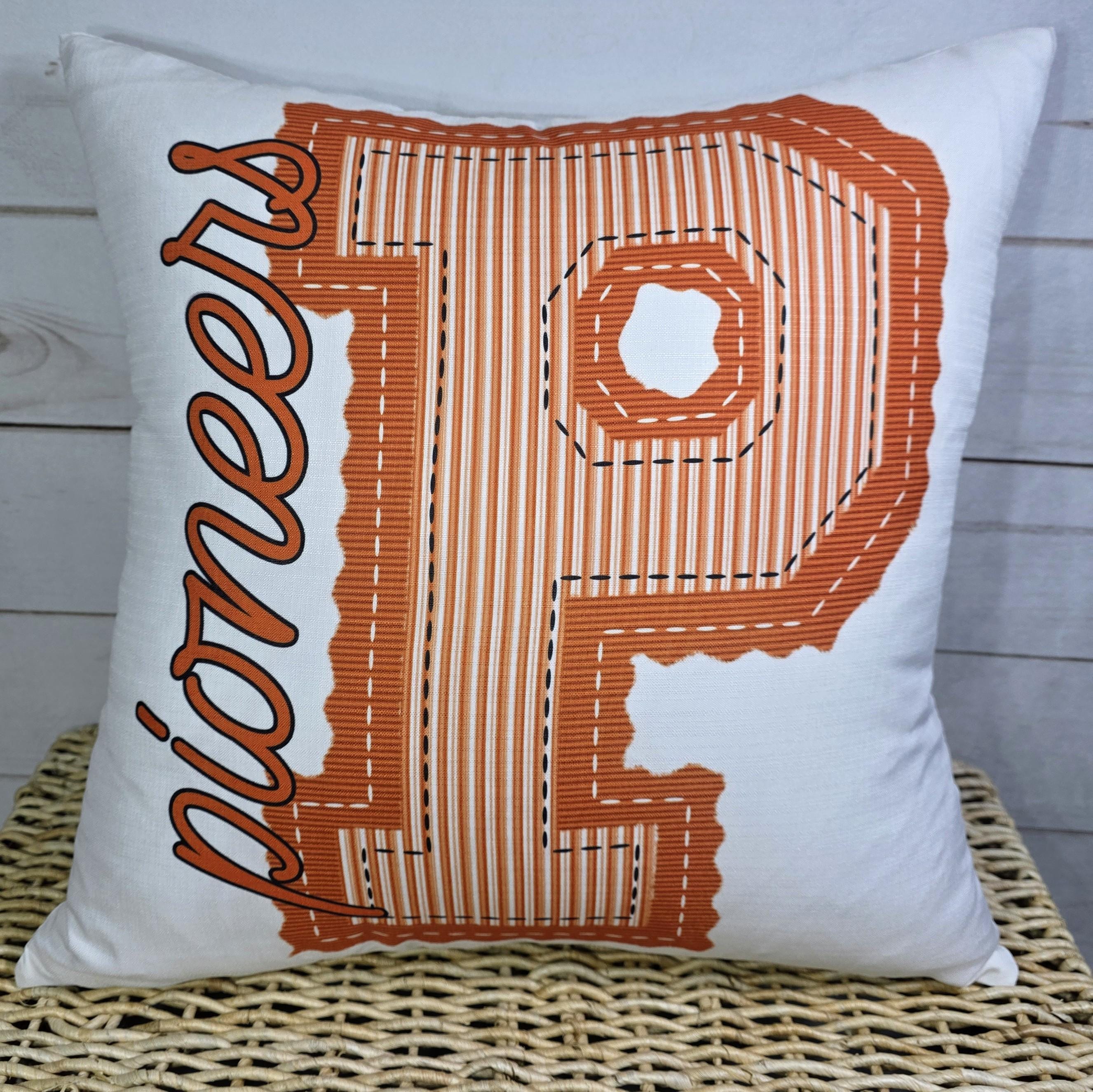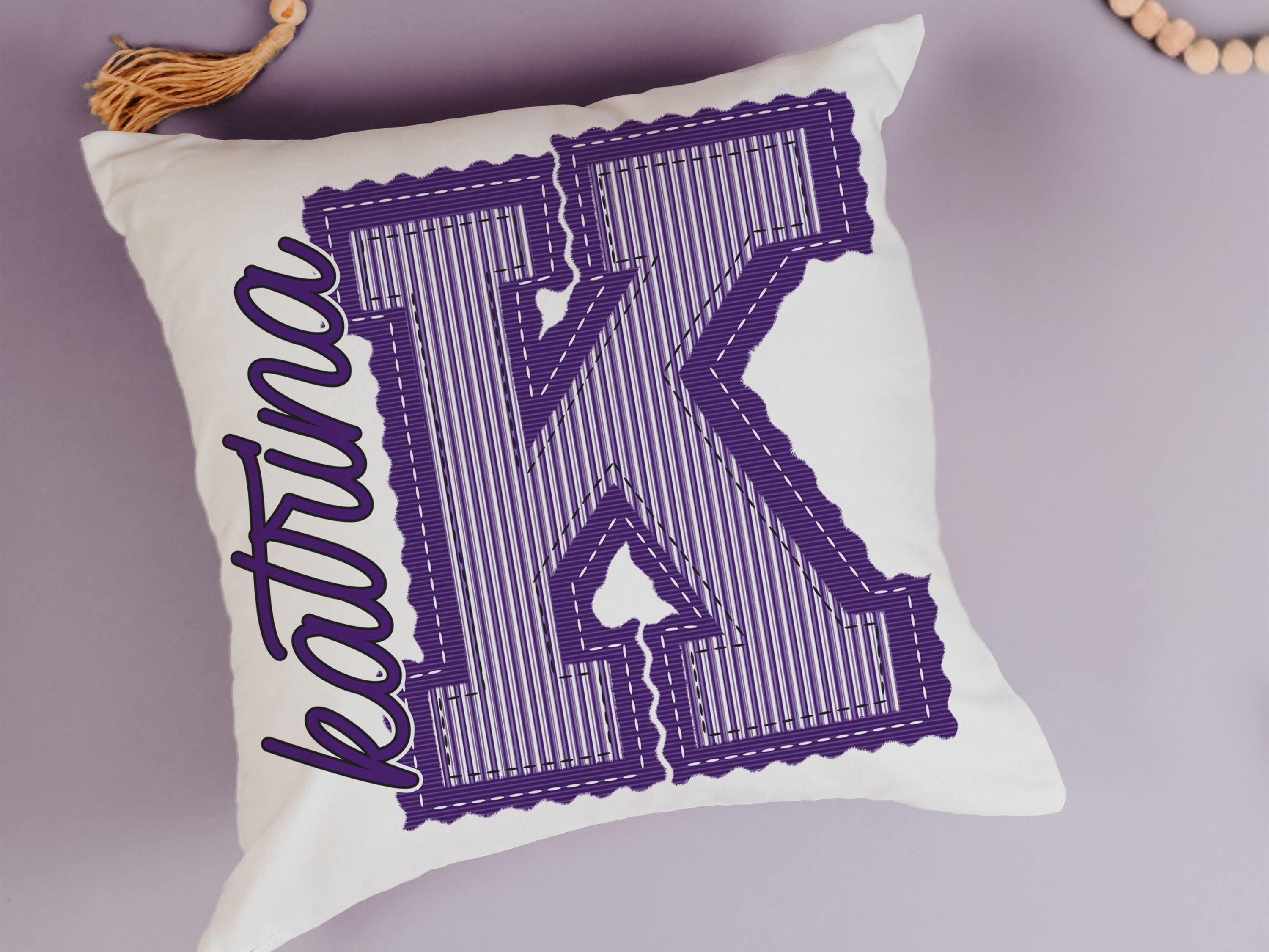 personalized kelly green initial pillow for dorm room, college student gift, seersucker stripe throw pillow with name on it, school spirit