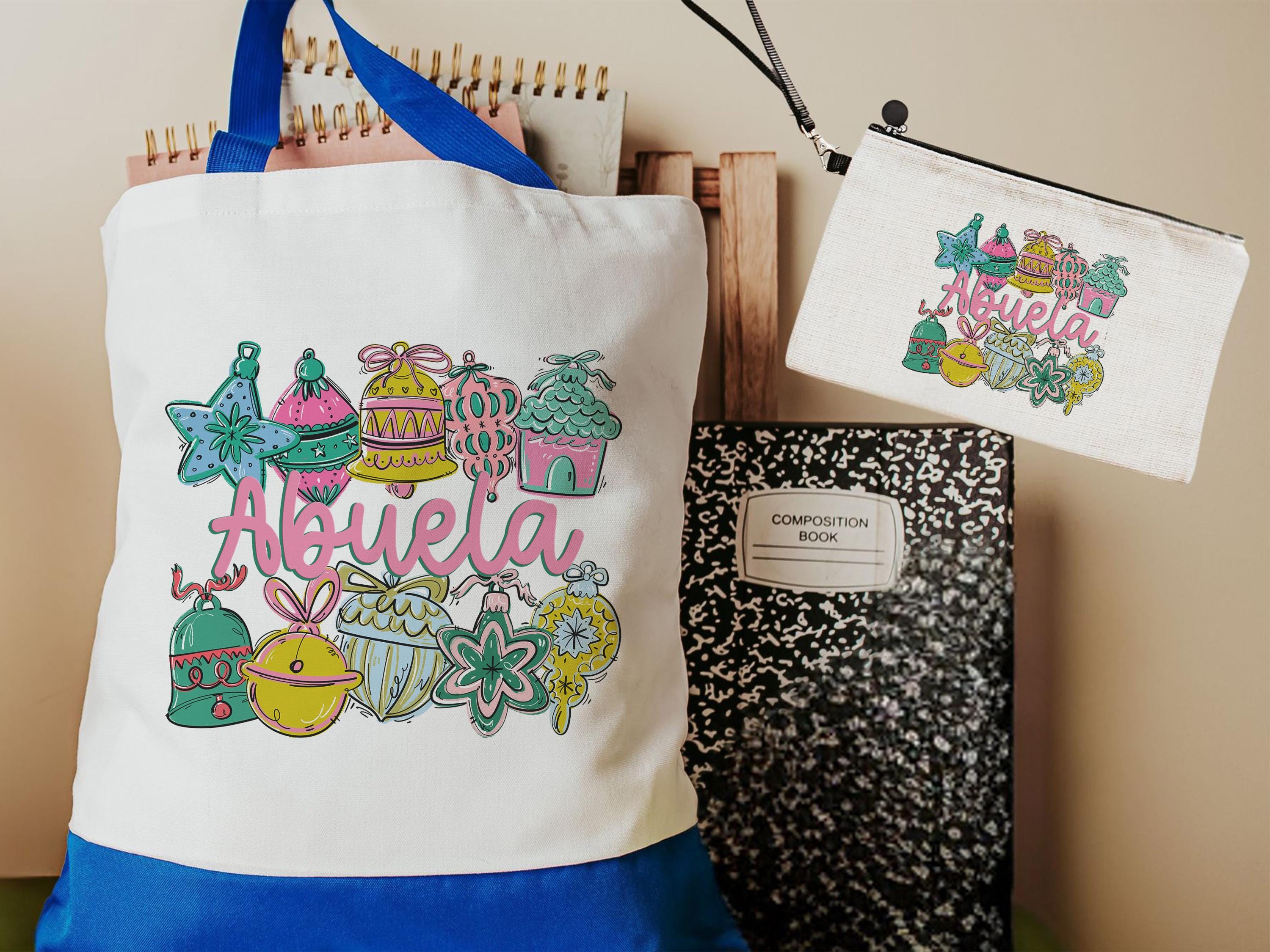 This personalized "abuela" tote bag is a wonderful travel companion and doubles as a Christmas gift from grandchildren. Perfect as a cruise tote, everyday carry, or an abuela-to-be gift, with coordinating makeup bags available.