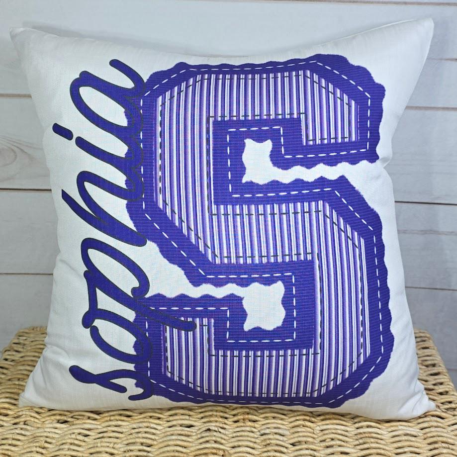 Bring a personalized touch to any space with this butter yellow seersucker pillow featuring a name and initial. A fun Christmas gift for teenage girls or a sweet accent for dorm rooms and cozy beds.