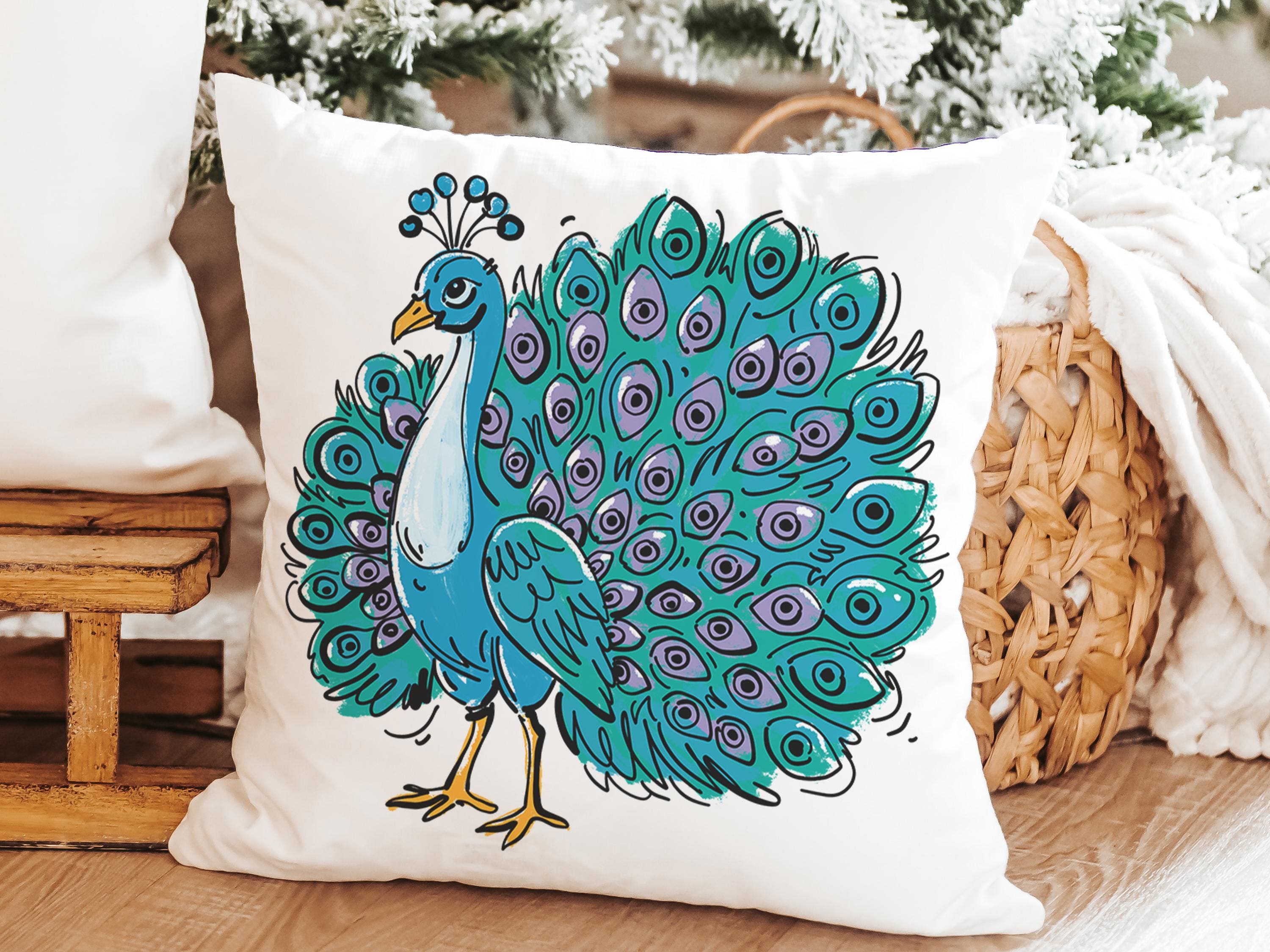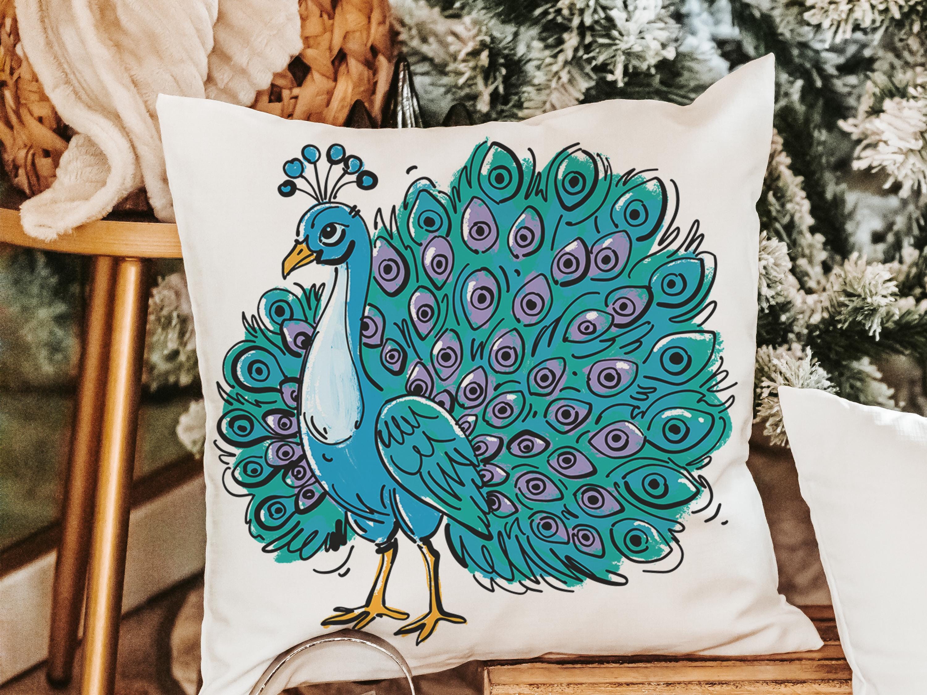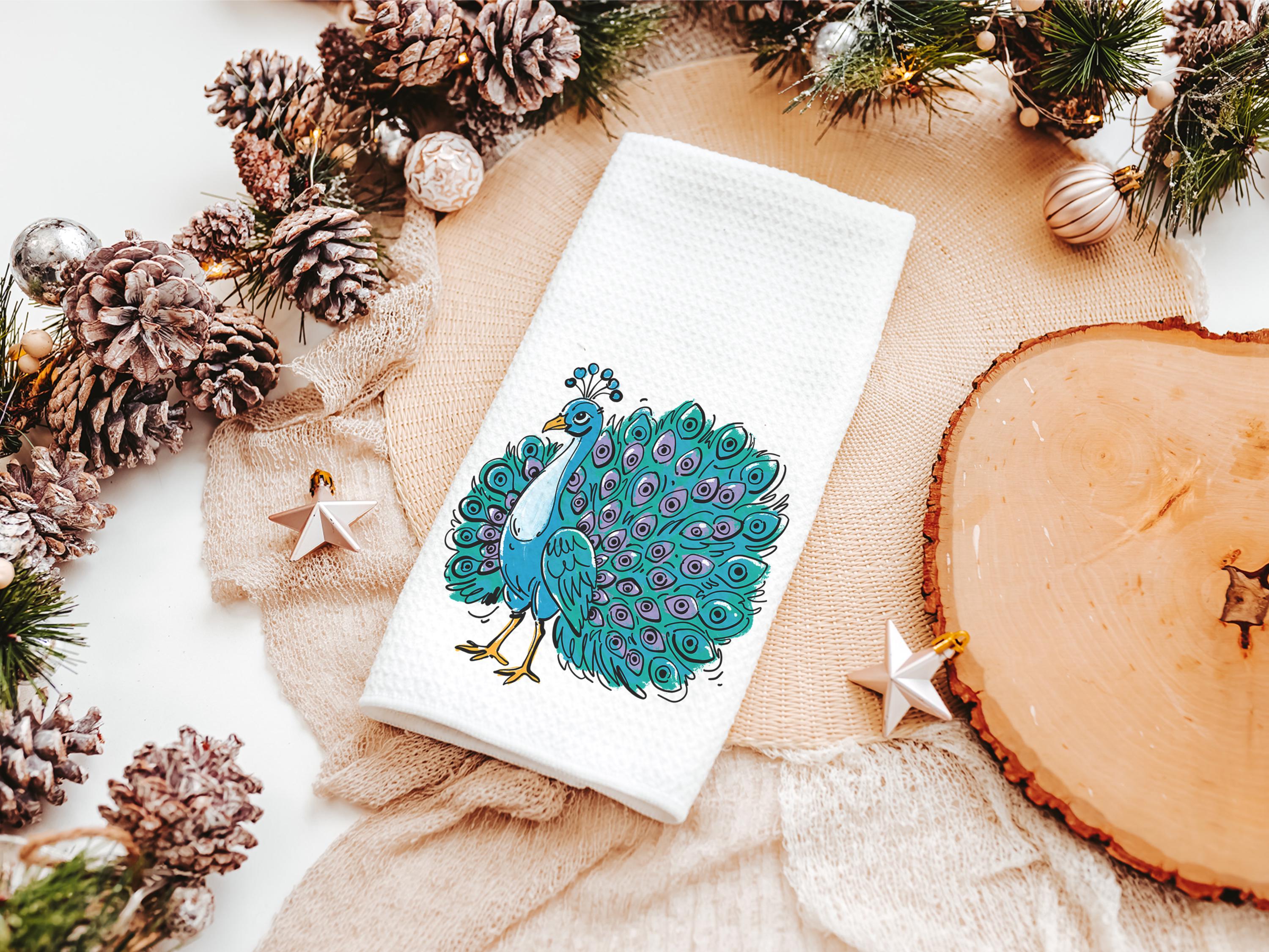 turquoise peacock throw pillow for women apartment decor for girls, teal peacock kitchen towels for friends, cute peacock gifts, dorm decor