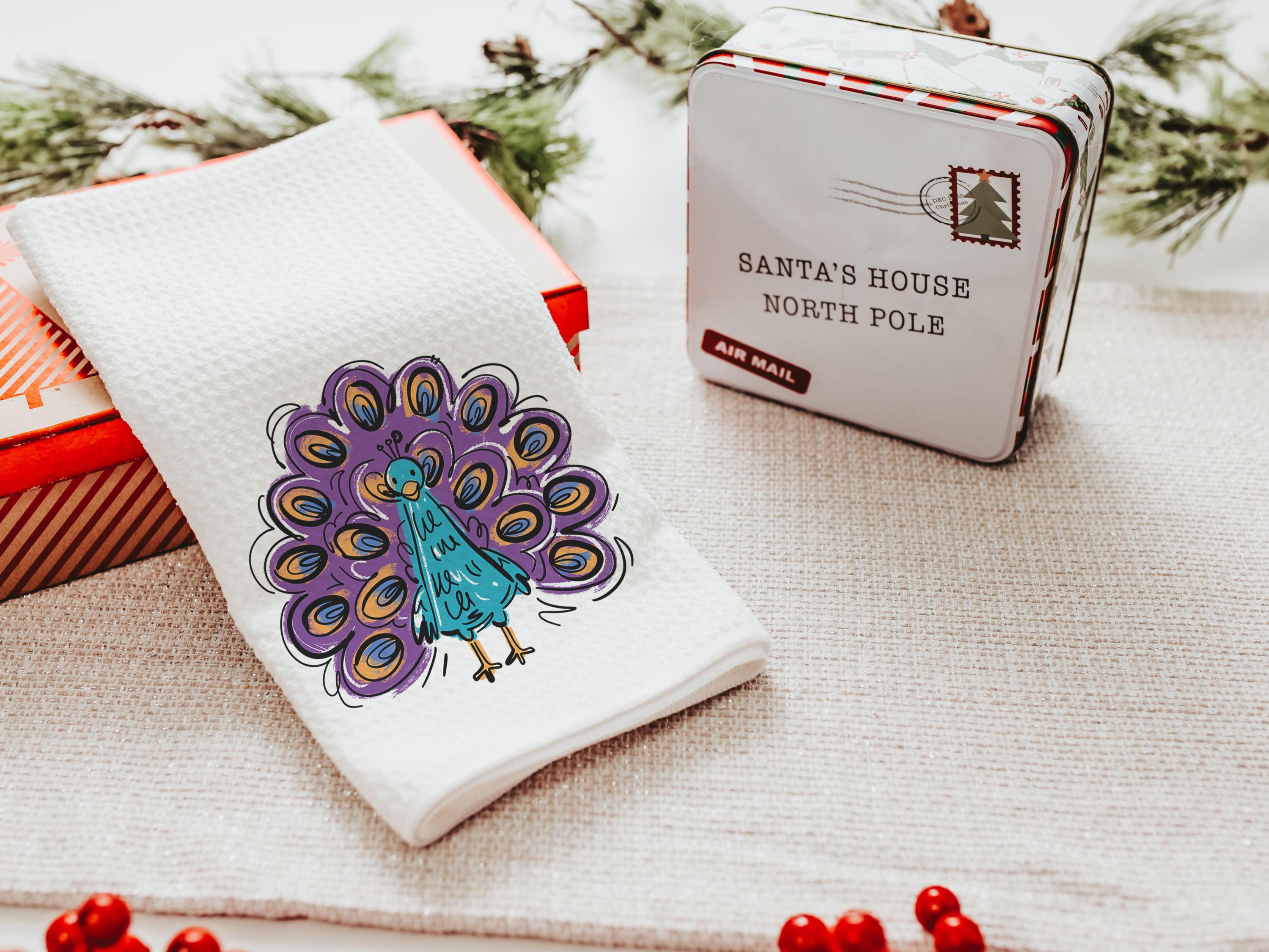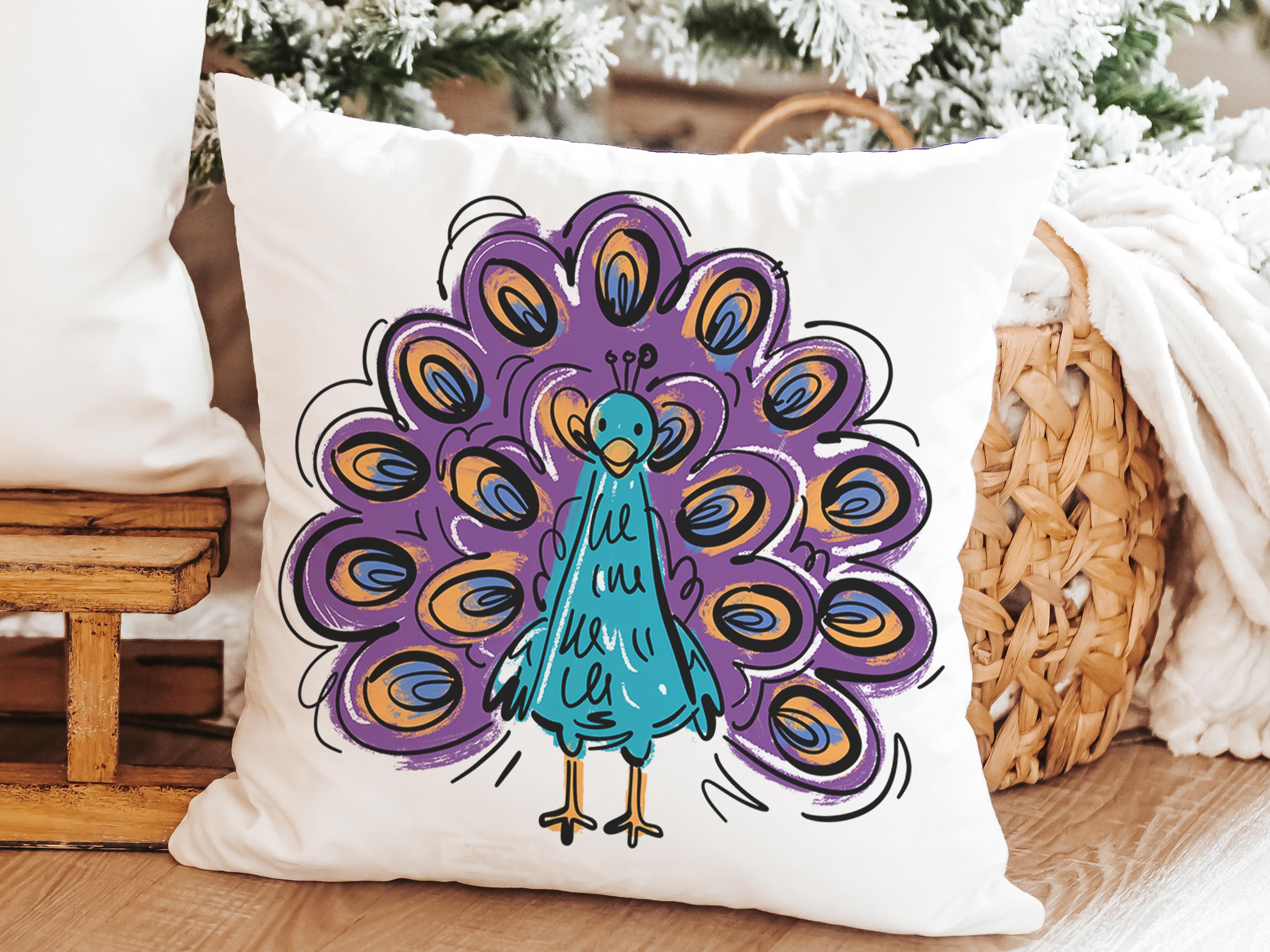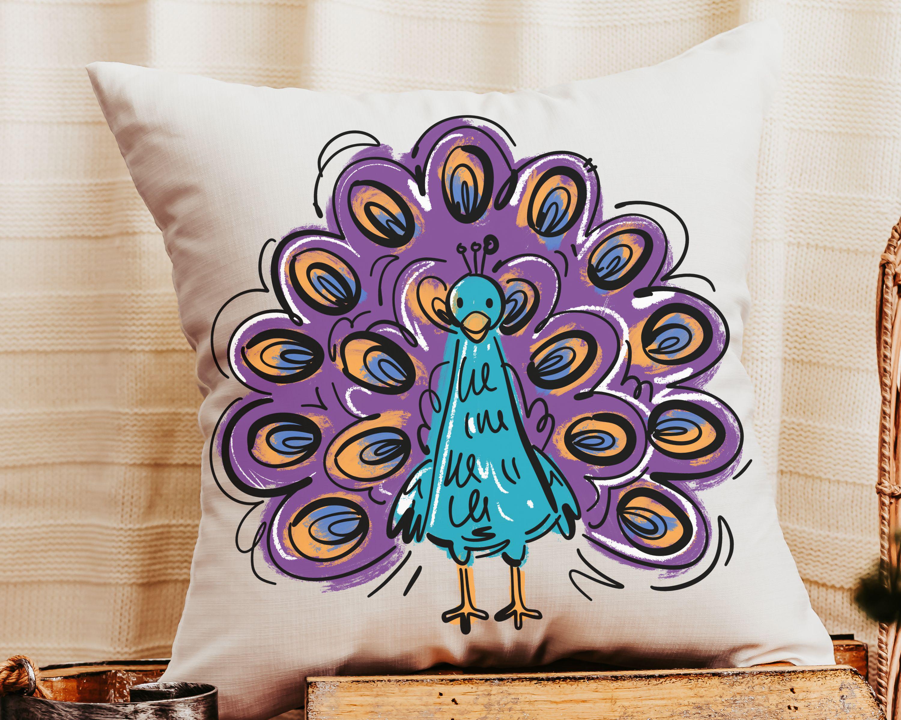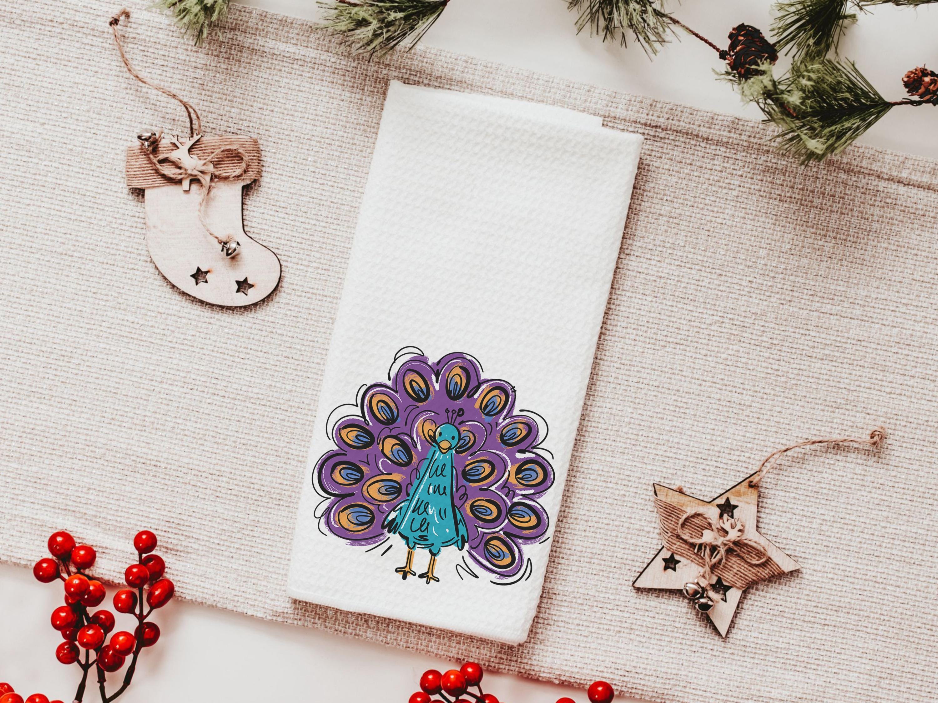 Decorate a dorm room with a purple peacock decorative accent pillow. They pair perfectly with our matching kitchen towels. It's the perfect gift for friends and peacock decor. Matching towels are available to purchase individually or as a pillow and towel set.