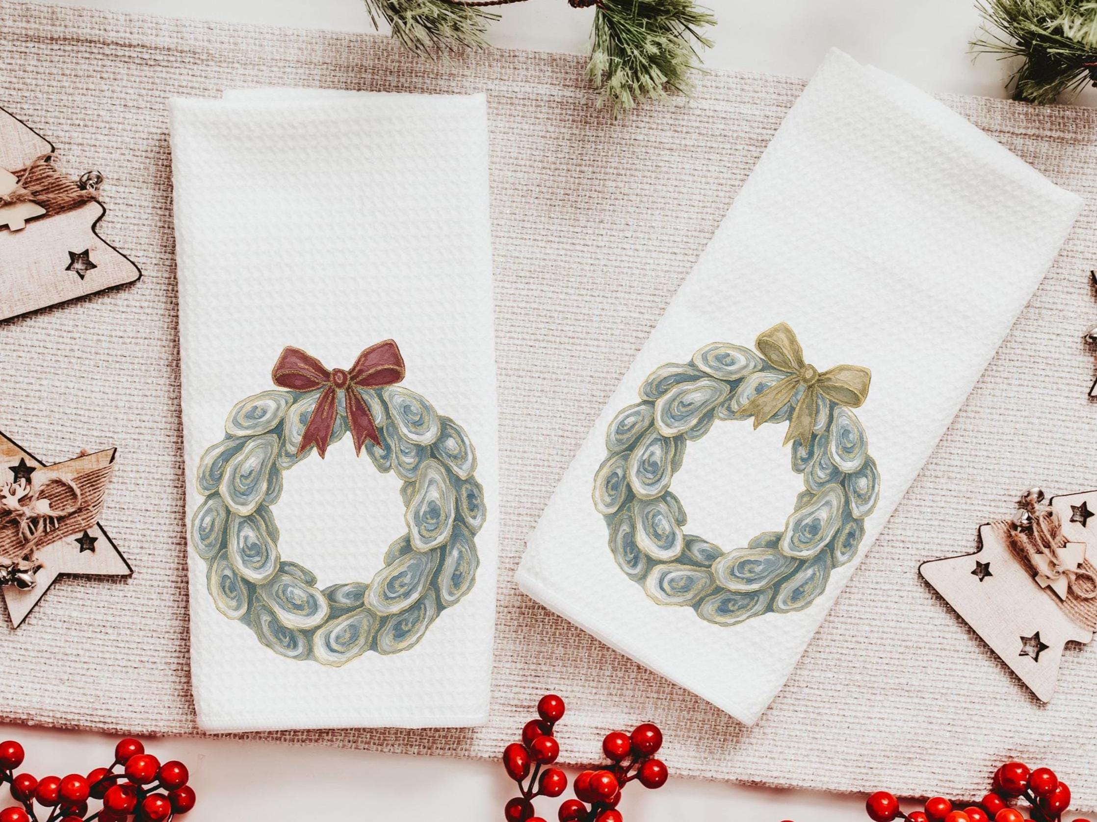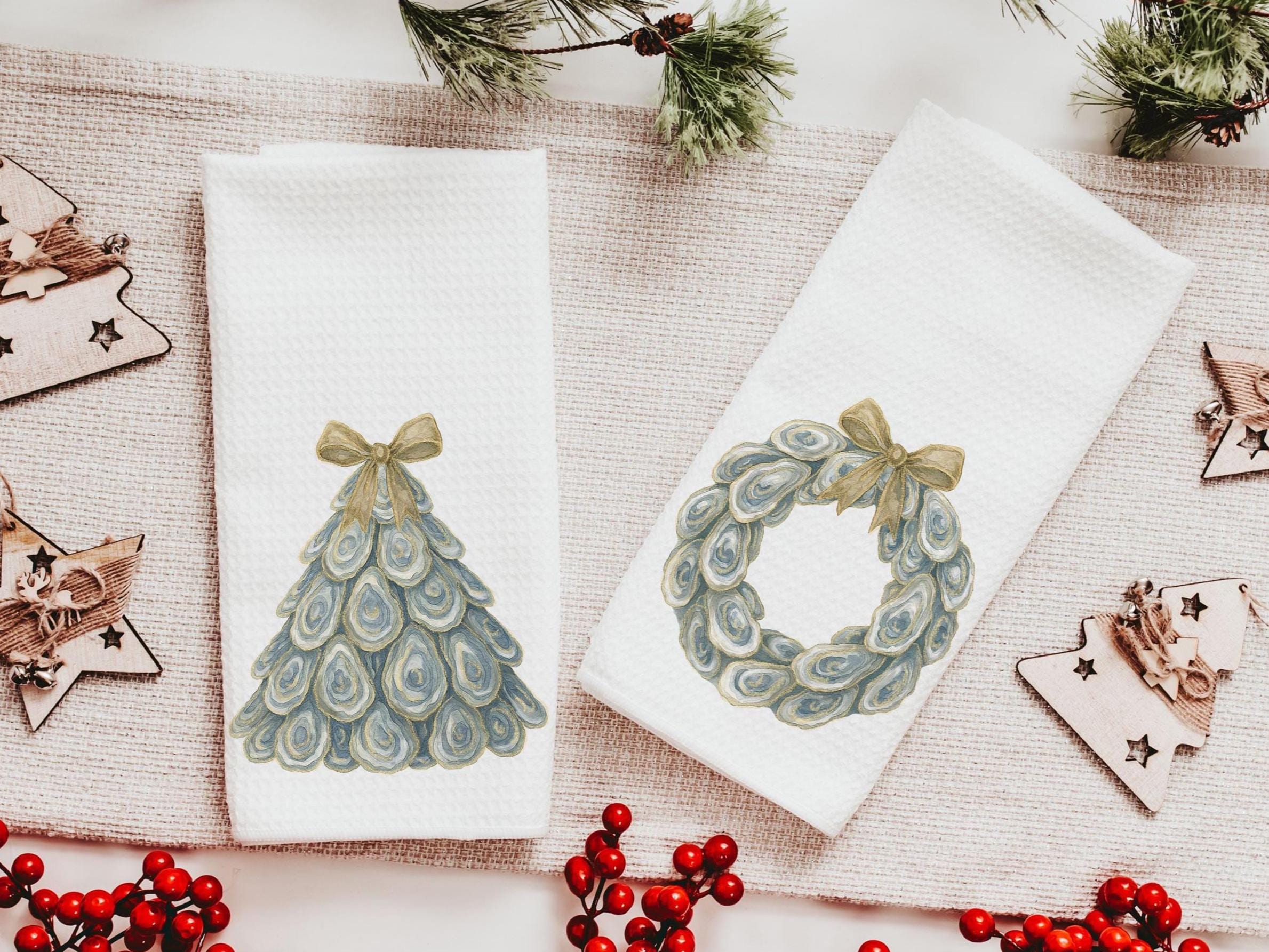 Beautiful towels with pretty oyster shell artwork. Perfect gift for oyster lovers!