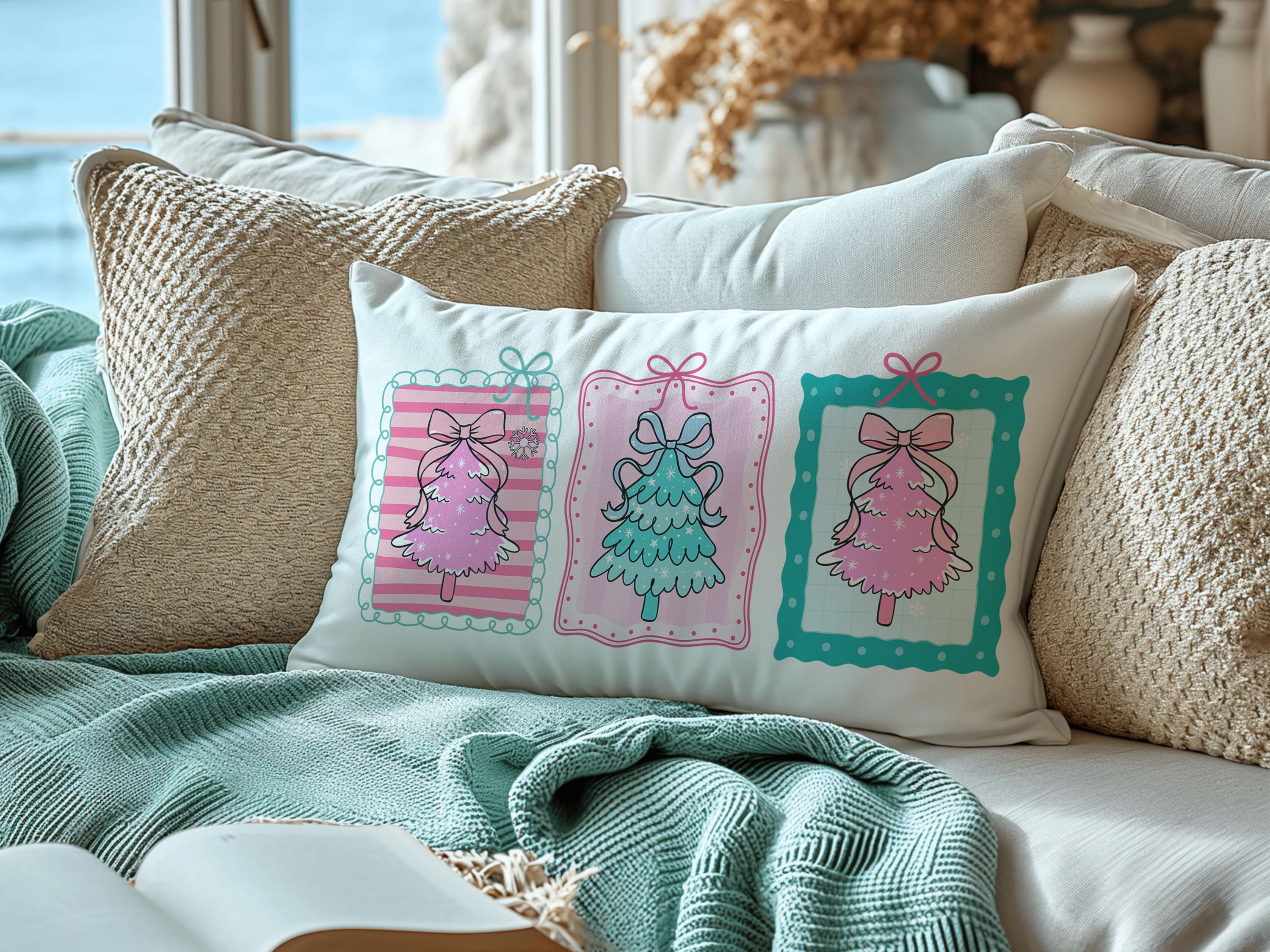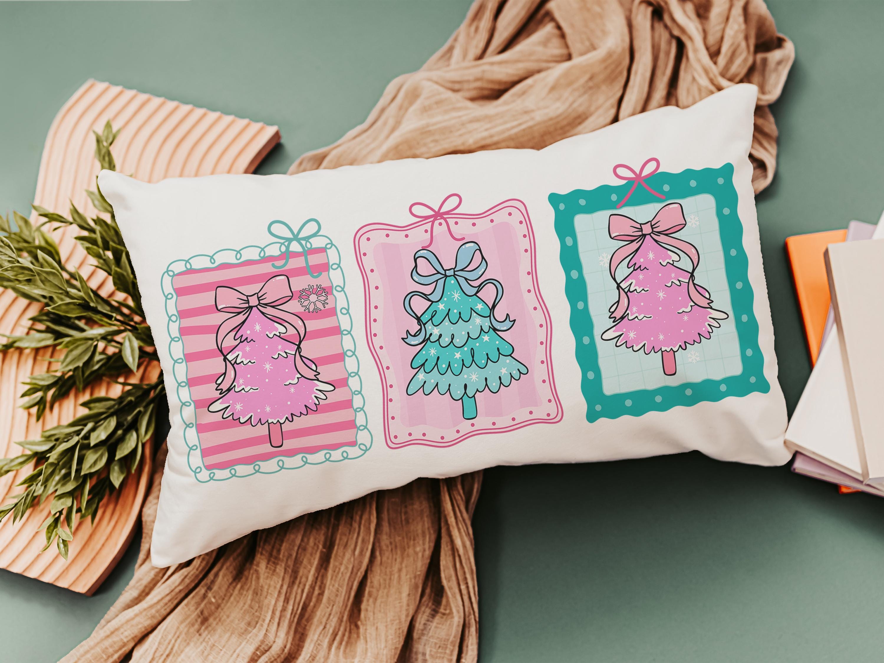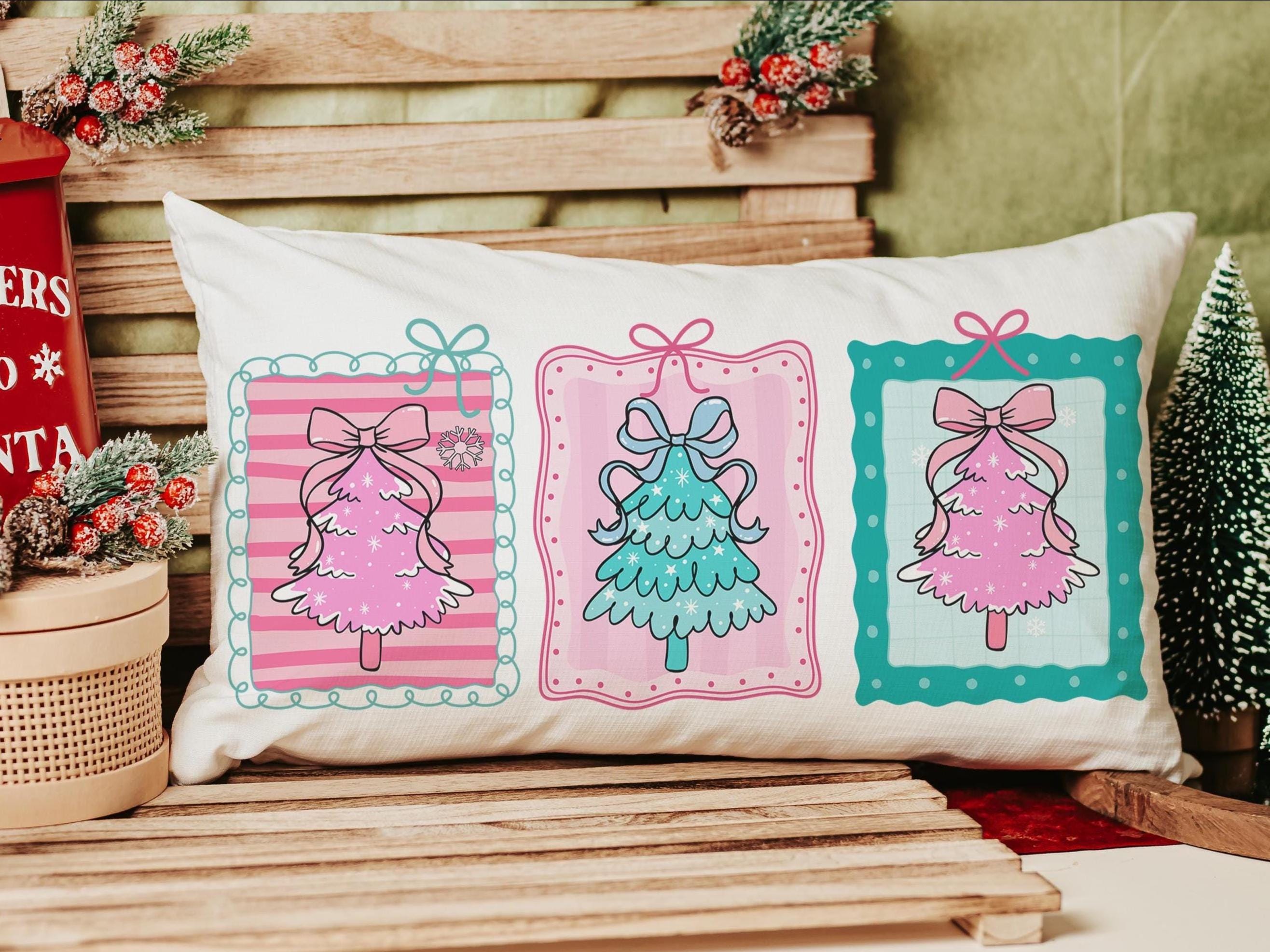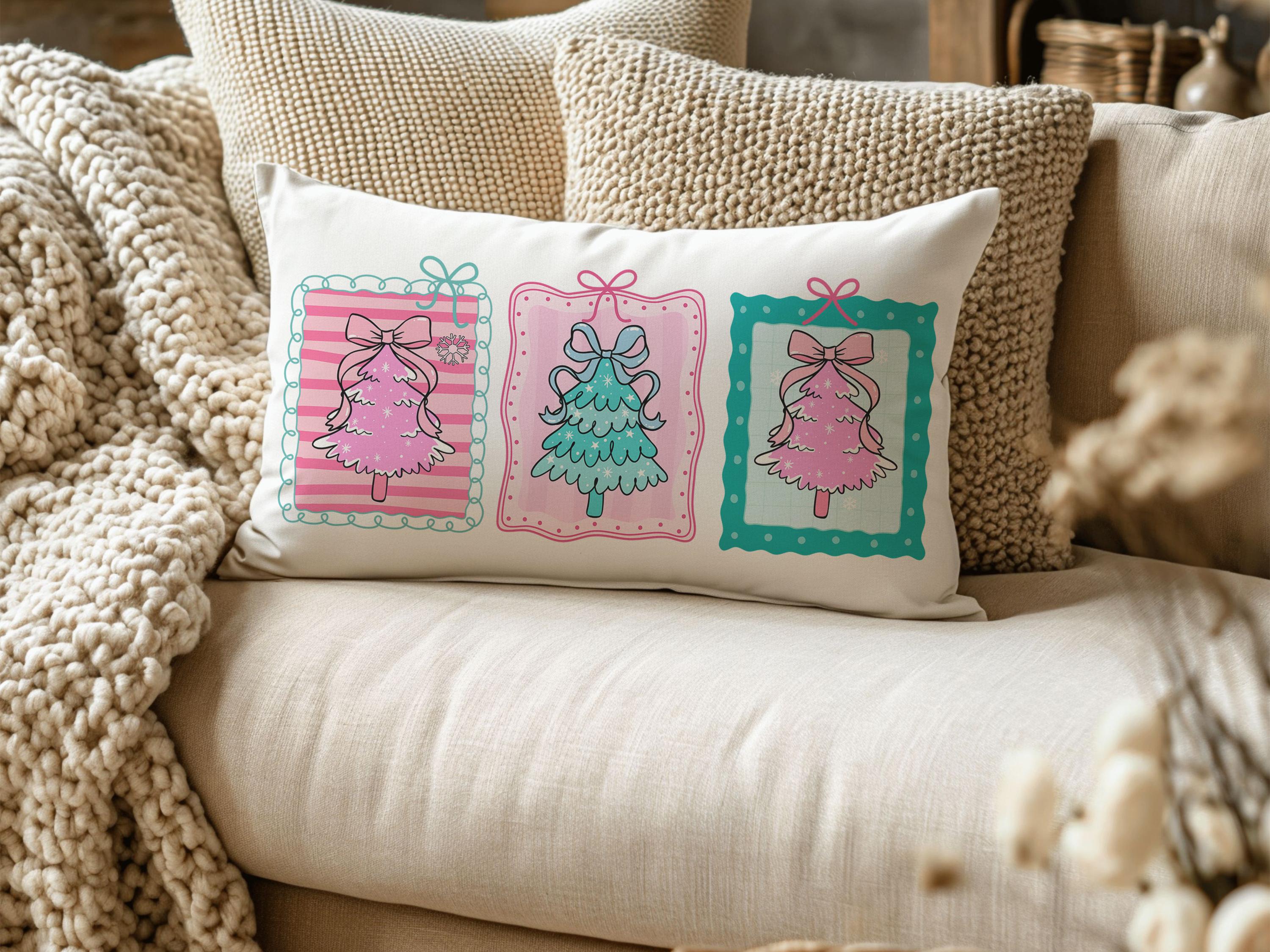 pastel Christmas tree lumbar throw pillows for couch pink Christmas decorative pillows for girls, Christmas housewarming gift for daughter