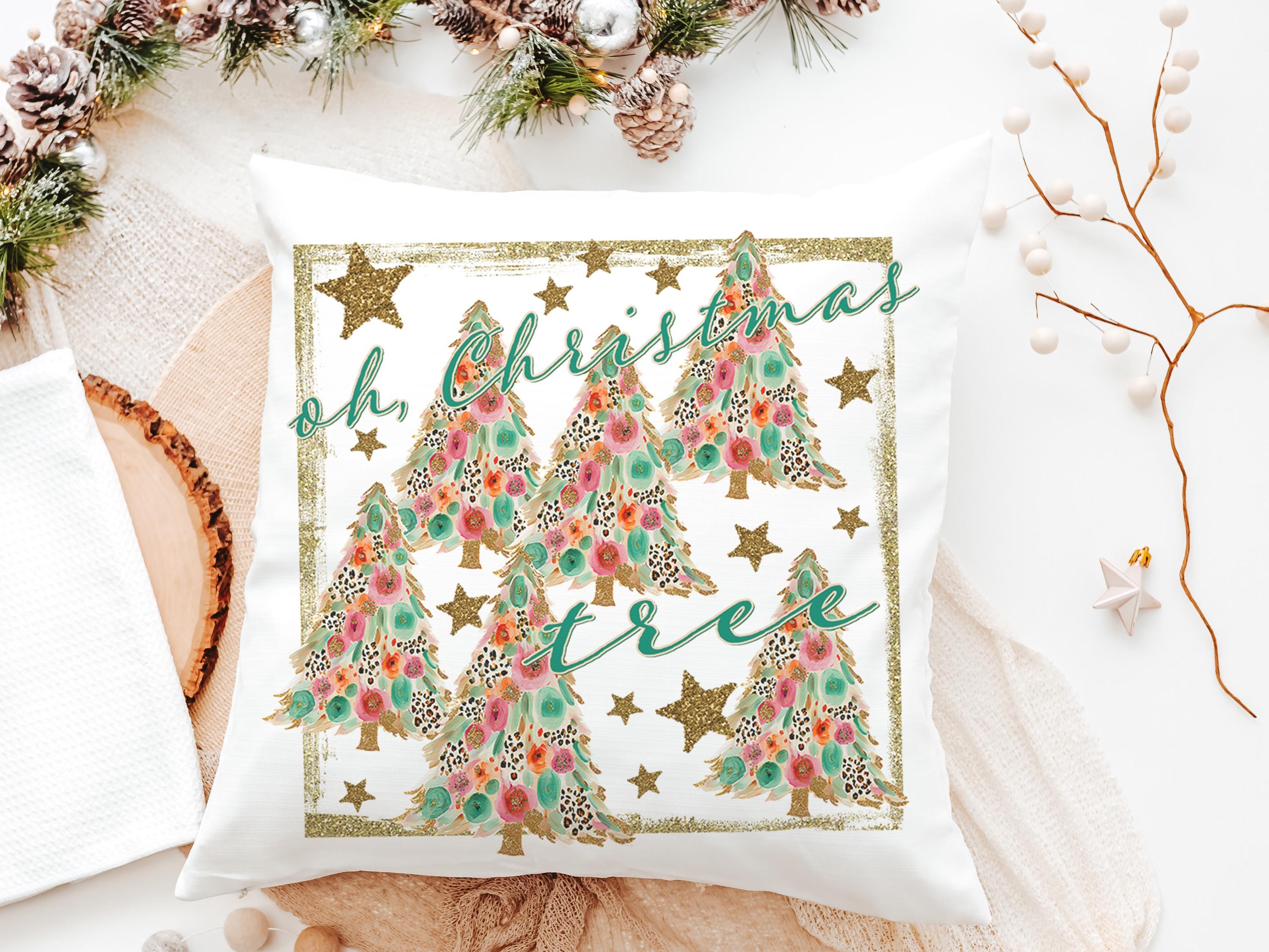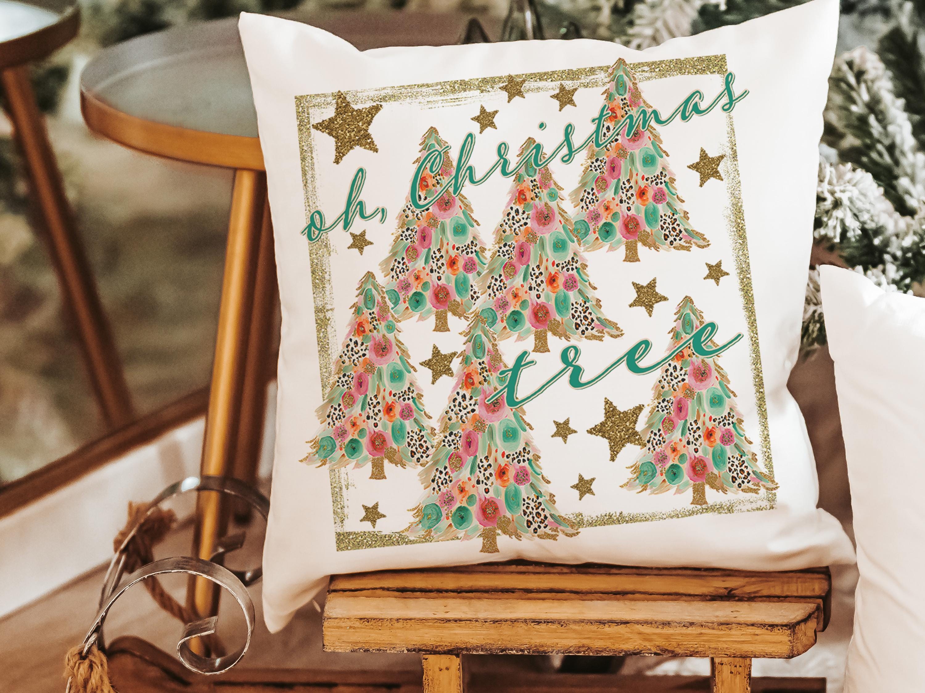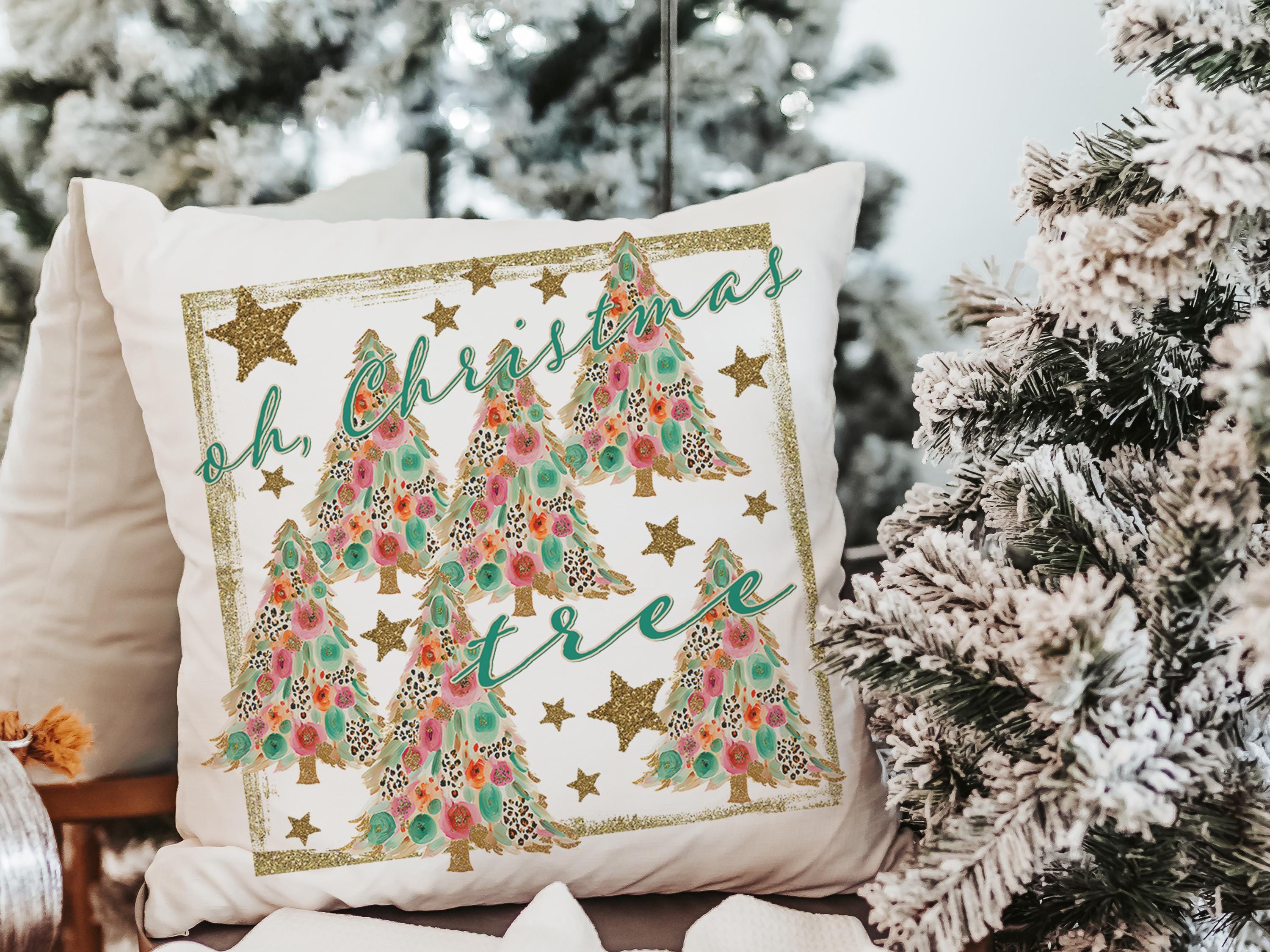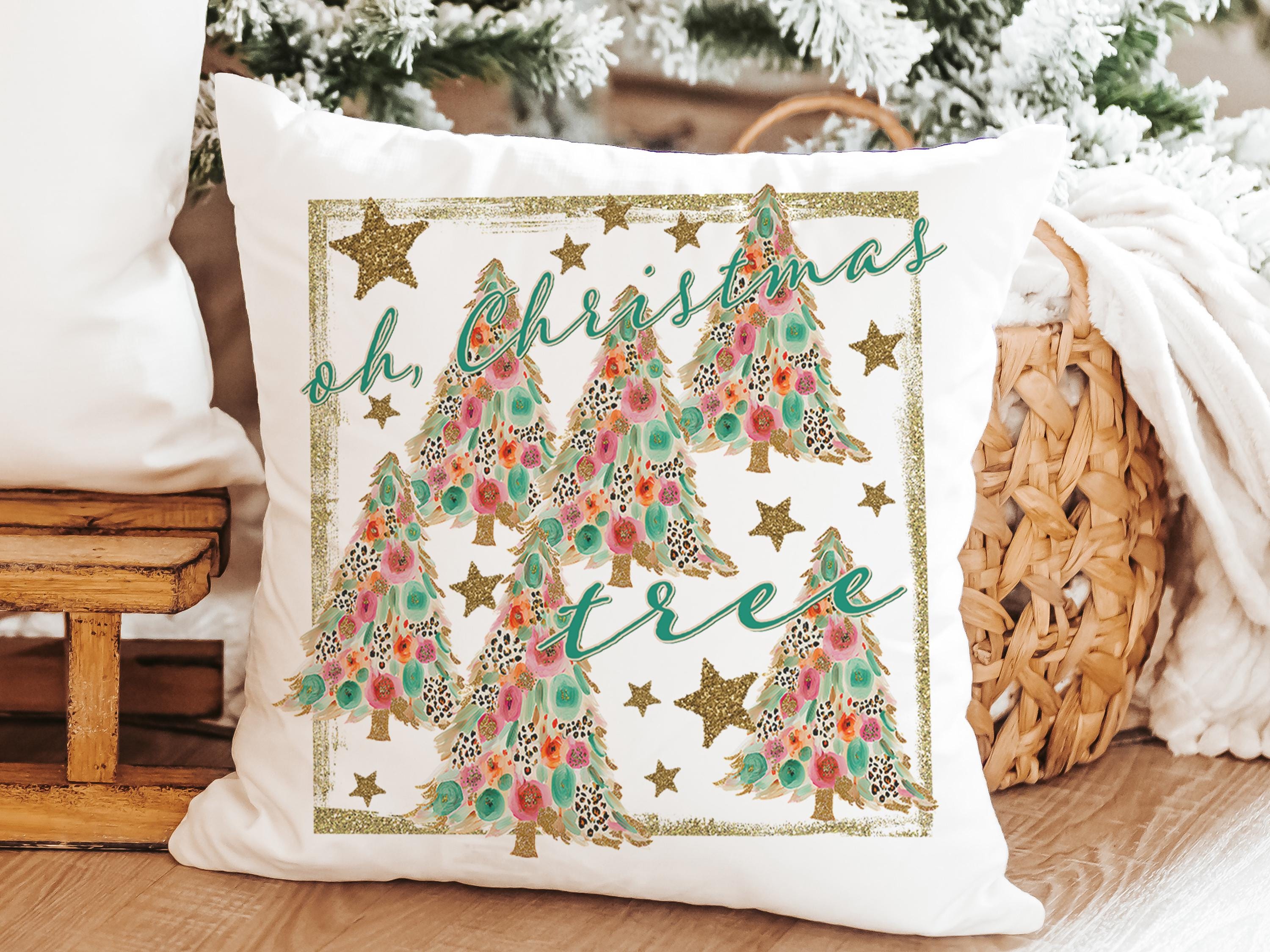 oh Christmas tree leopard print Christmas tree throw pillows for couch, floral Christmas accent pillow covers Christmas gifts for coworkers