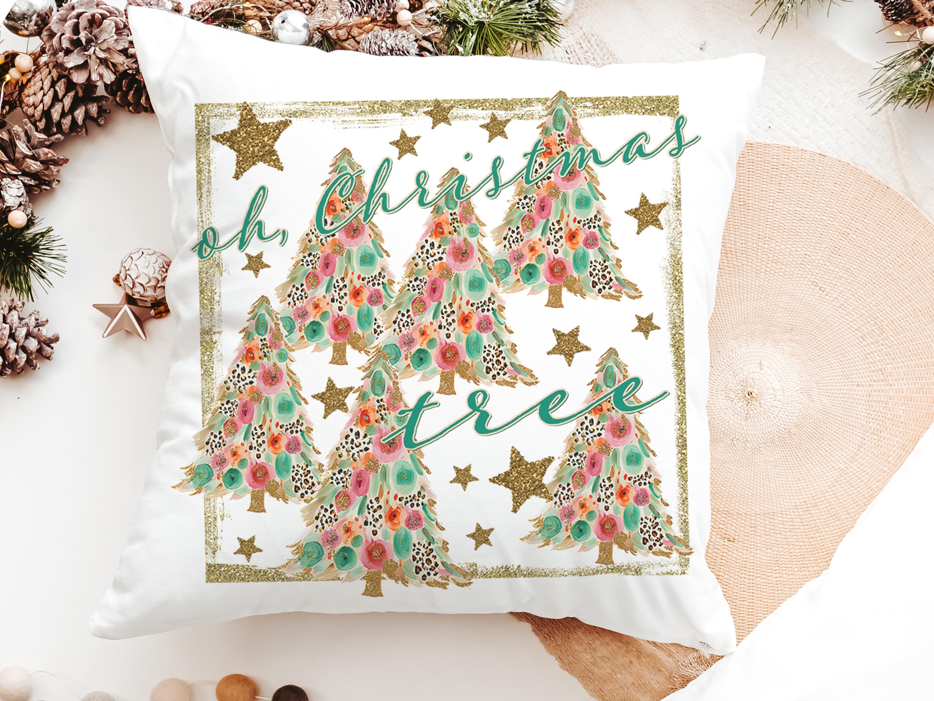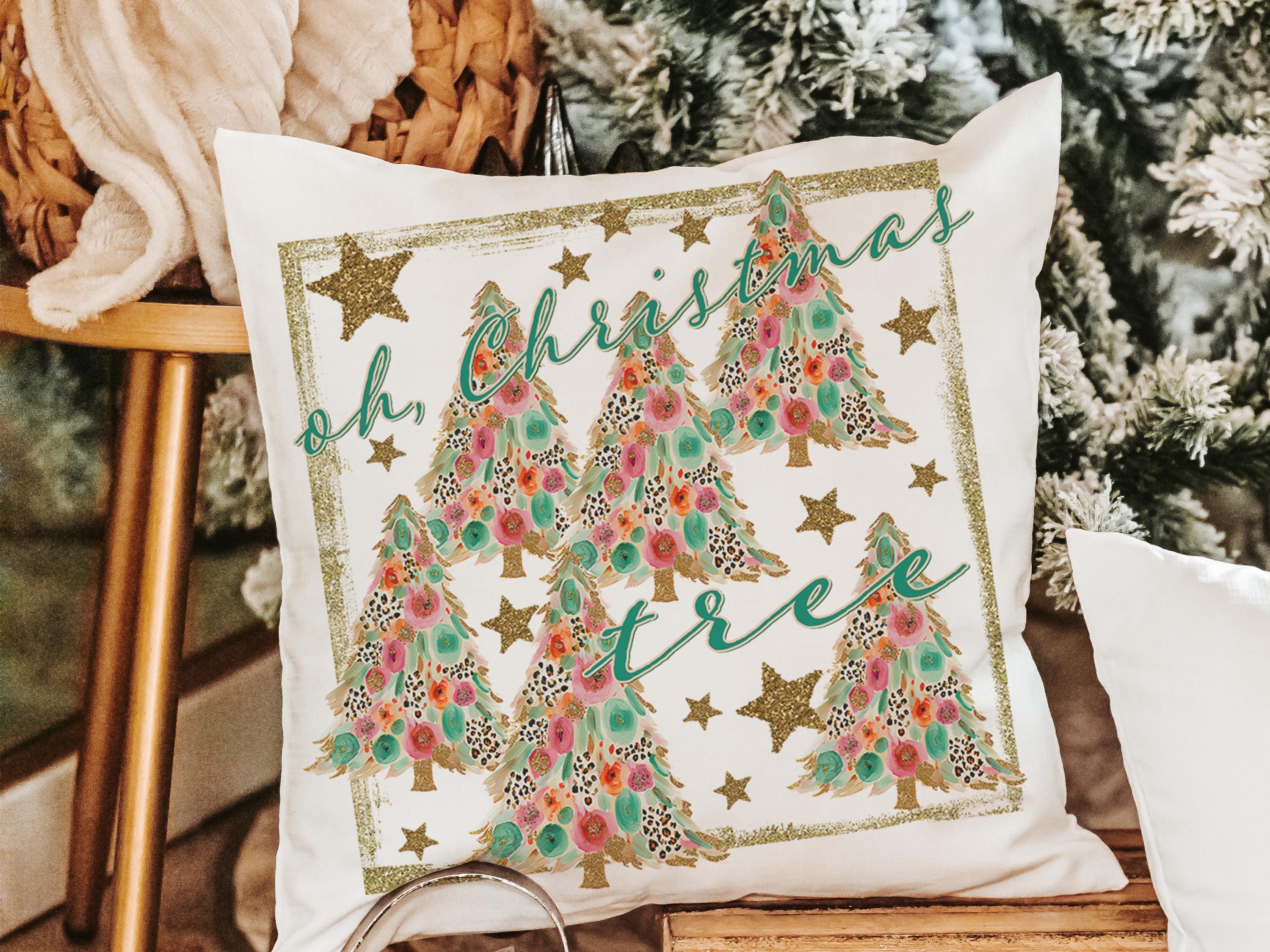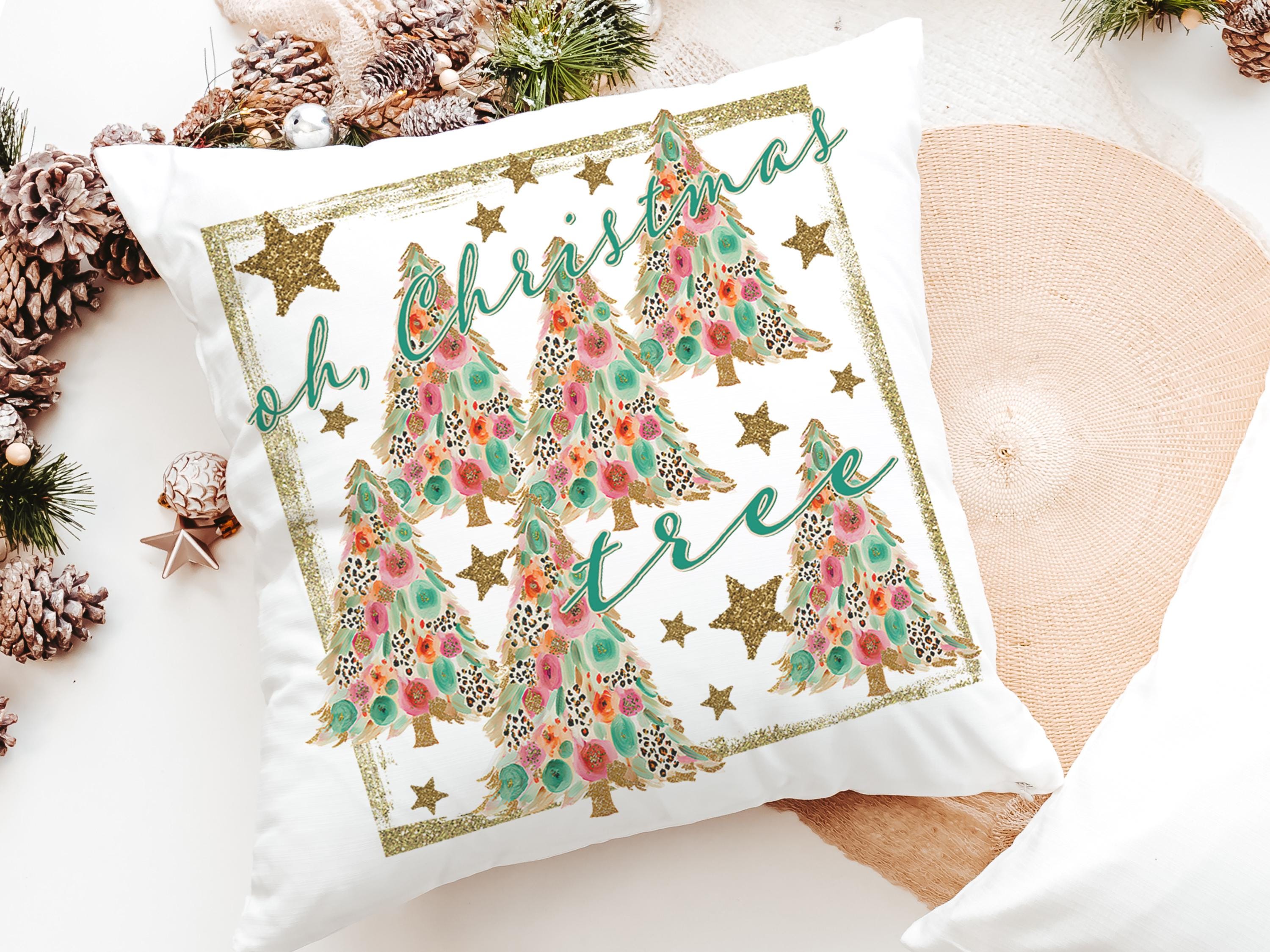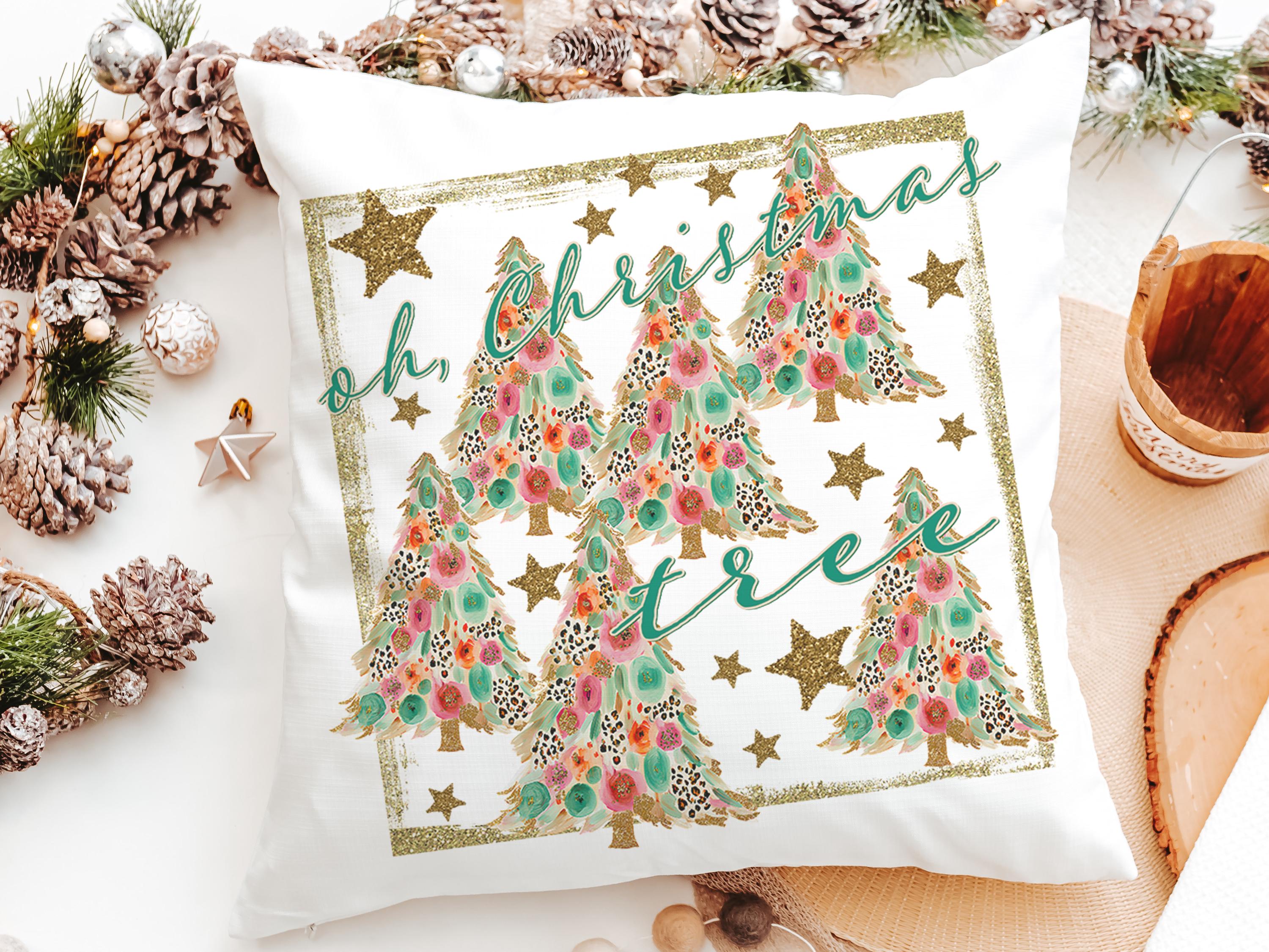 oh Christmas tree leopard print Christmas tree throw pillows for couch, floral Christmas accent pillow covers Christmas gifts for coworkers