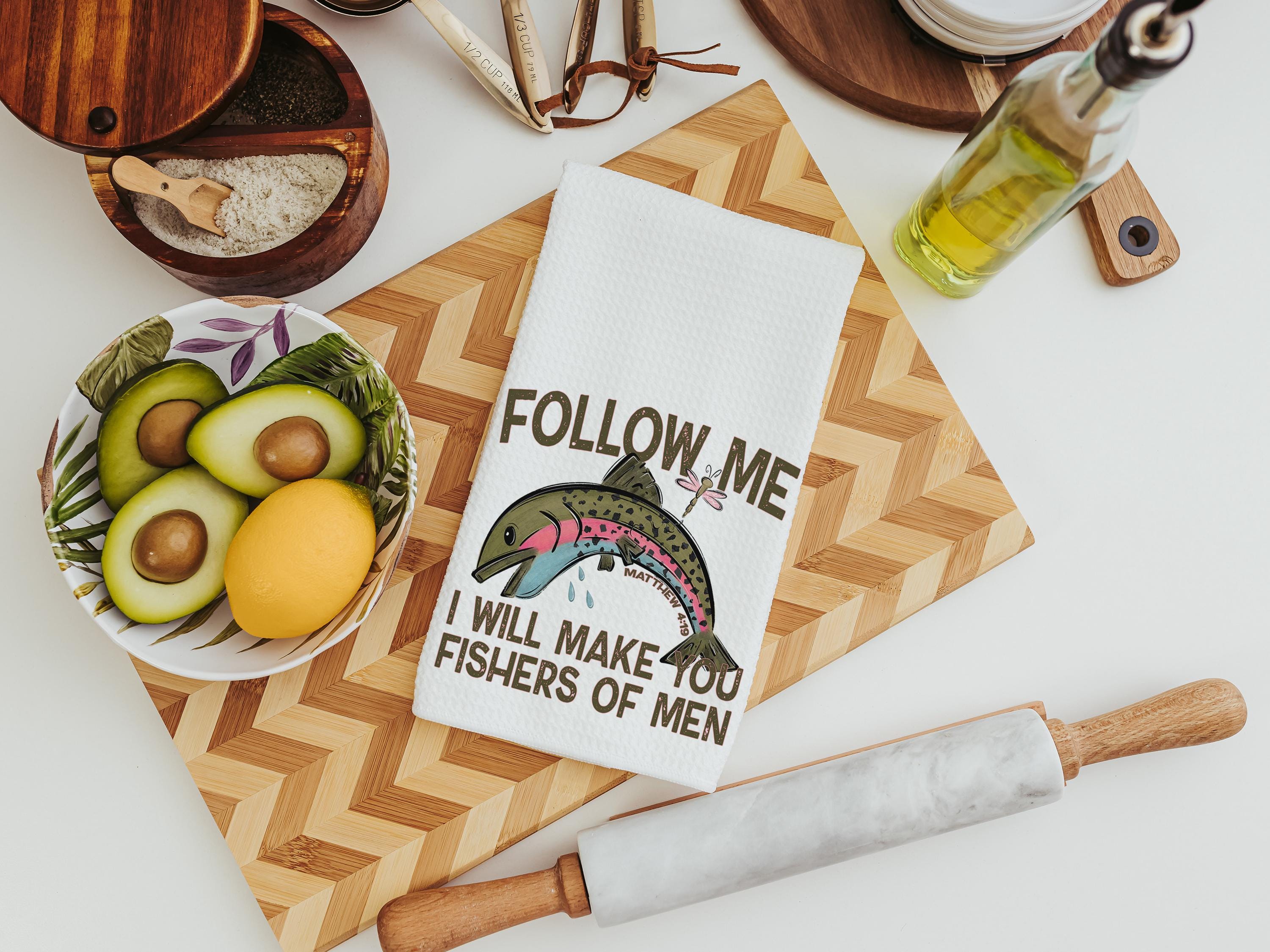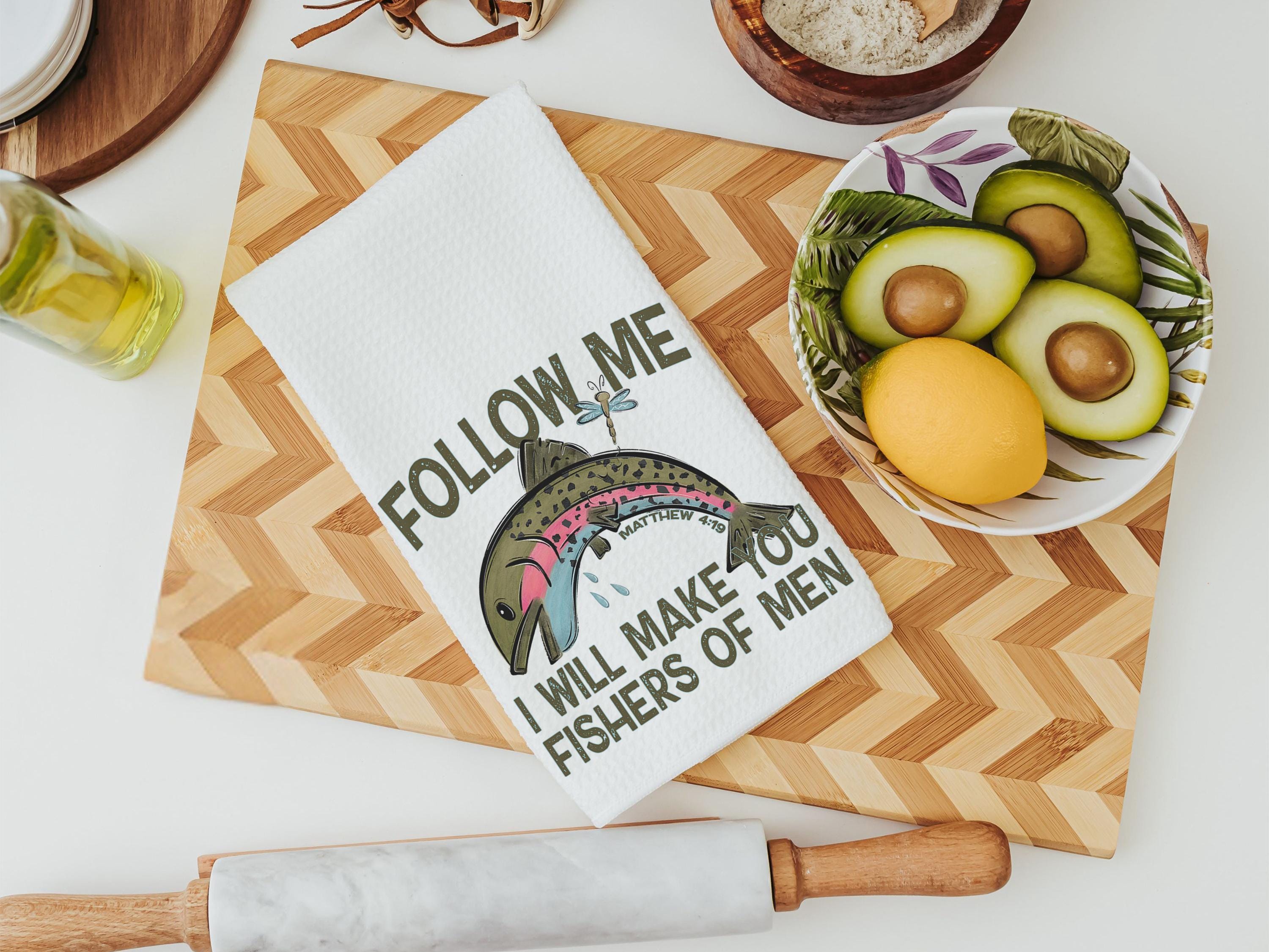 A sweet reminder of Matthew 4:19, with your choice of boy or girl fish designs for the couch, nursery, or teen room. Matching towels make gifting easy at Christmas — great as stocking stuffers for teens or kids who love the outdoors. Rainbow trout details add a an outdoorsy touch, keeping the message of “follow me” and fishers of men at the center.