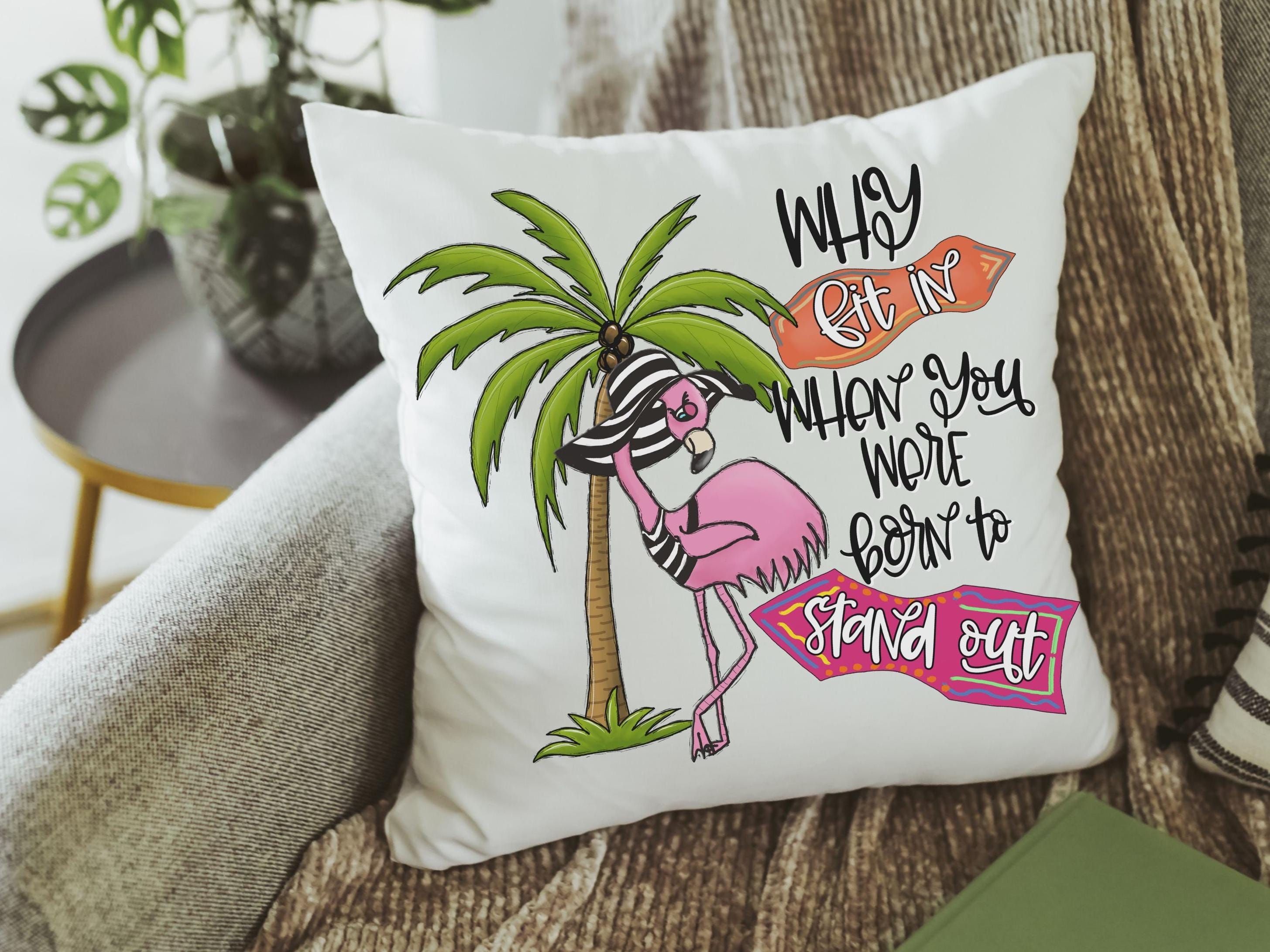 born to stand out cute flamingo throw pillows for couch pink flamingo gifts for women, coastal decor for home, beach Christmas gifts for