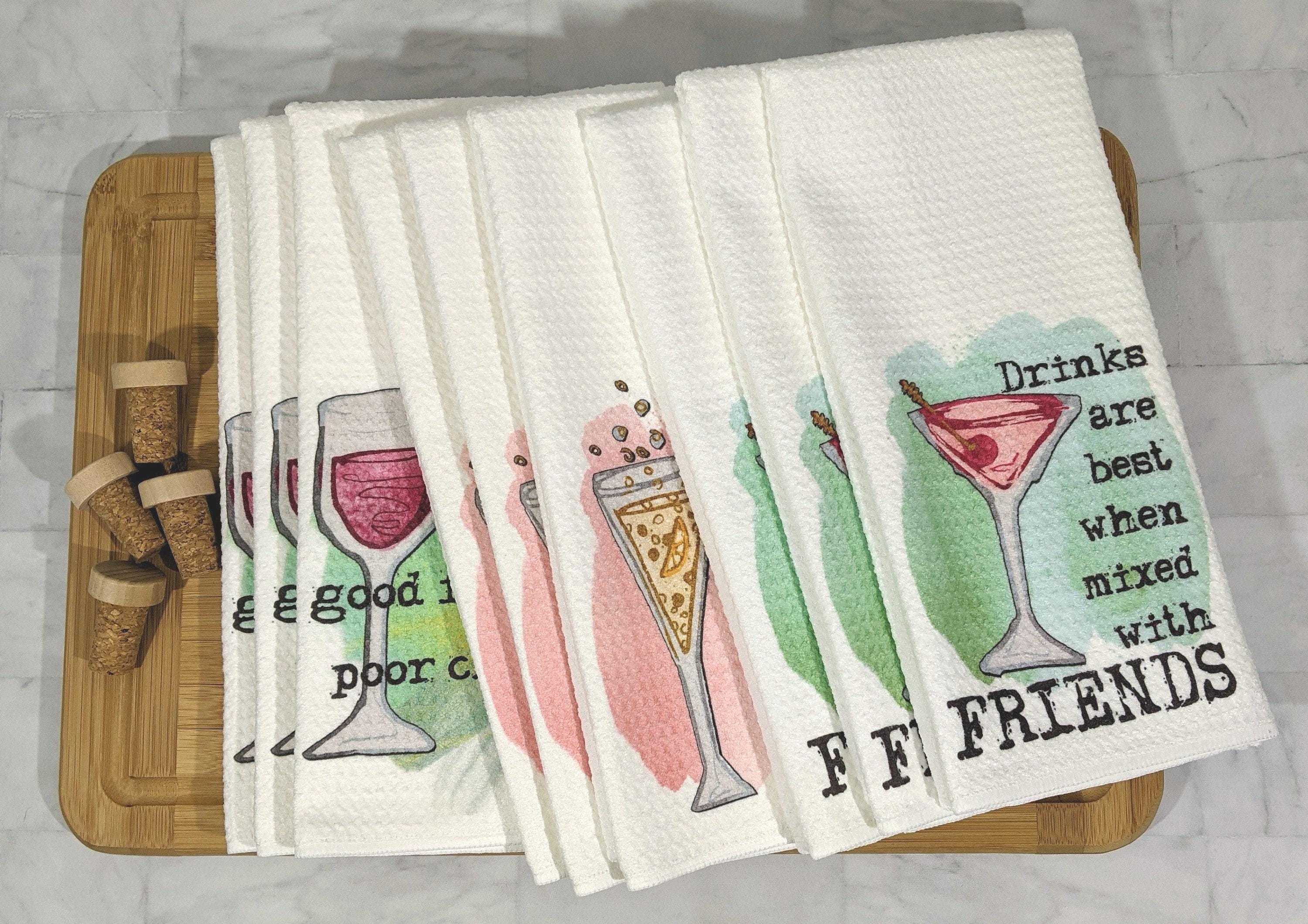 Bring laughter to your kitchen or home bar with This Wine Pairs Well With Good Friends and Poor Choices towels — also featuring sayings like Cheers to You, and Drinks Are Best When Mixed With Friends. Perfect as wine-themed Christmas gifts for neighbors or friends who love a good laugh. Purchase individually or as a full set for the ultimate funny kitchen collection.