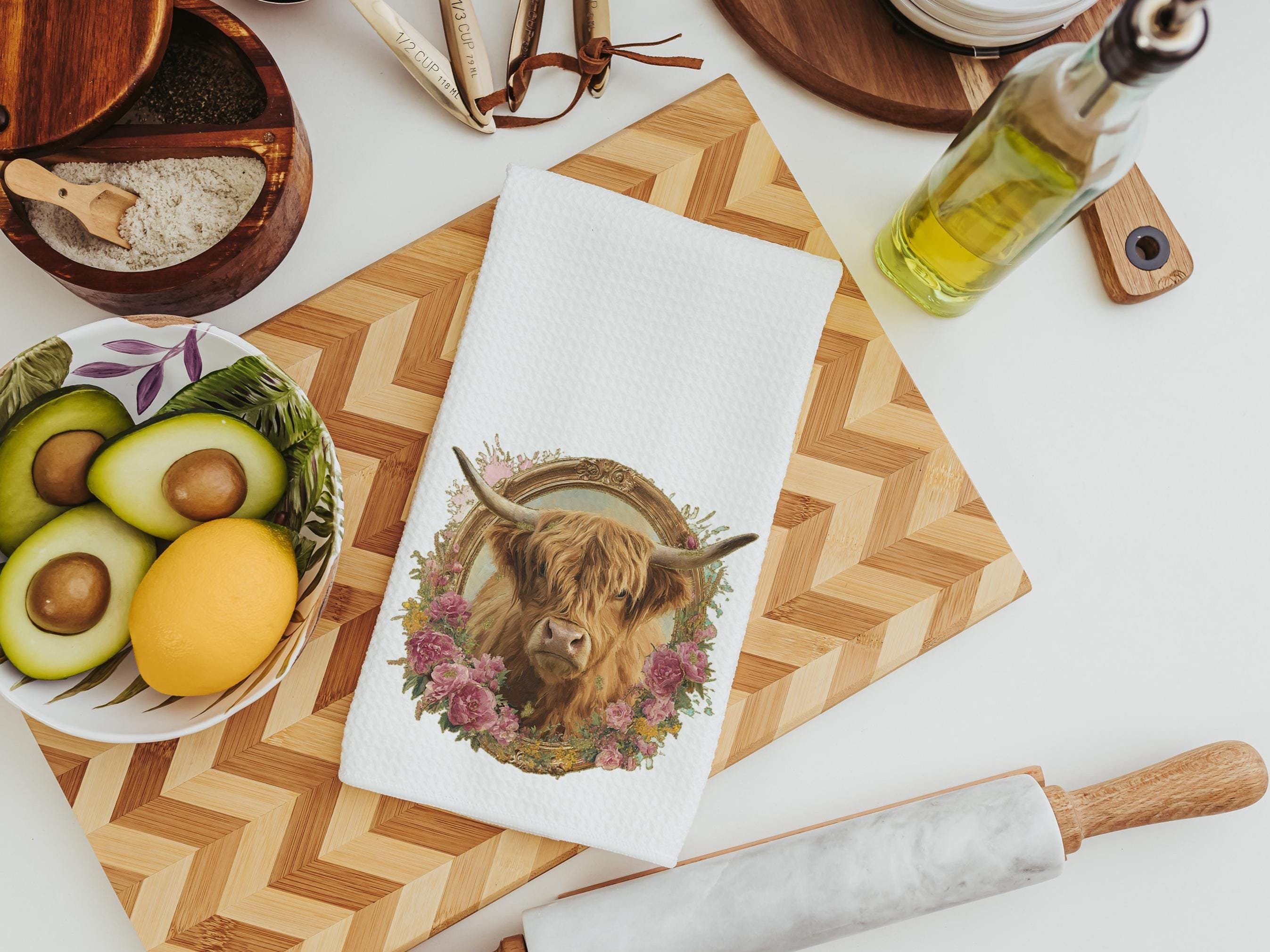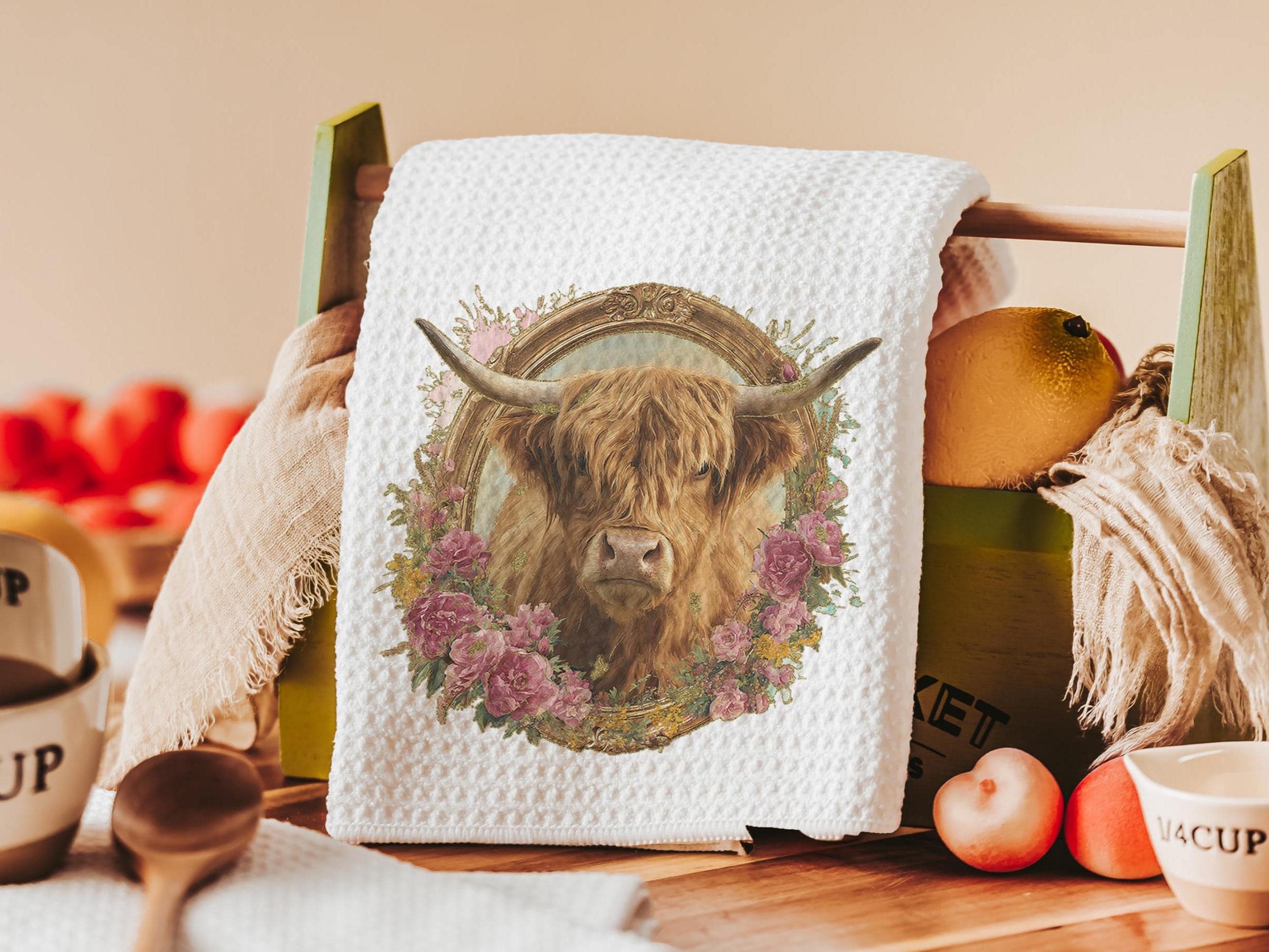 Add a farmhouse touch with this highland cow pillow and matching towel set. It’s perfect for a nursery, living room, or any cow lover’s home. A fun and thoughtful pick for a secret Santa gift or a cute gift for any cow lover.