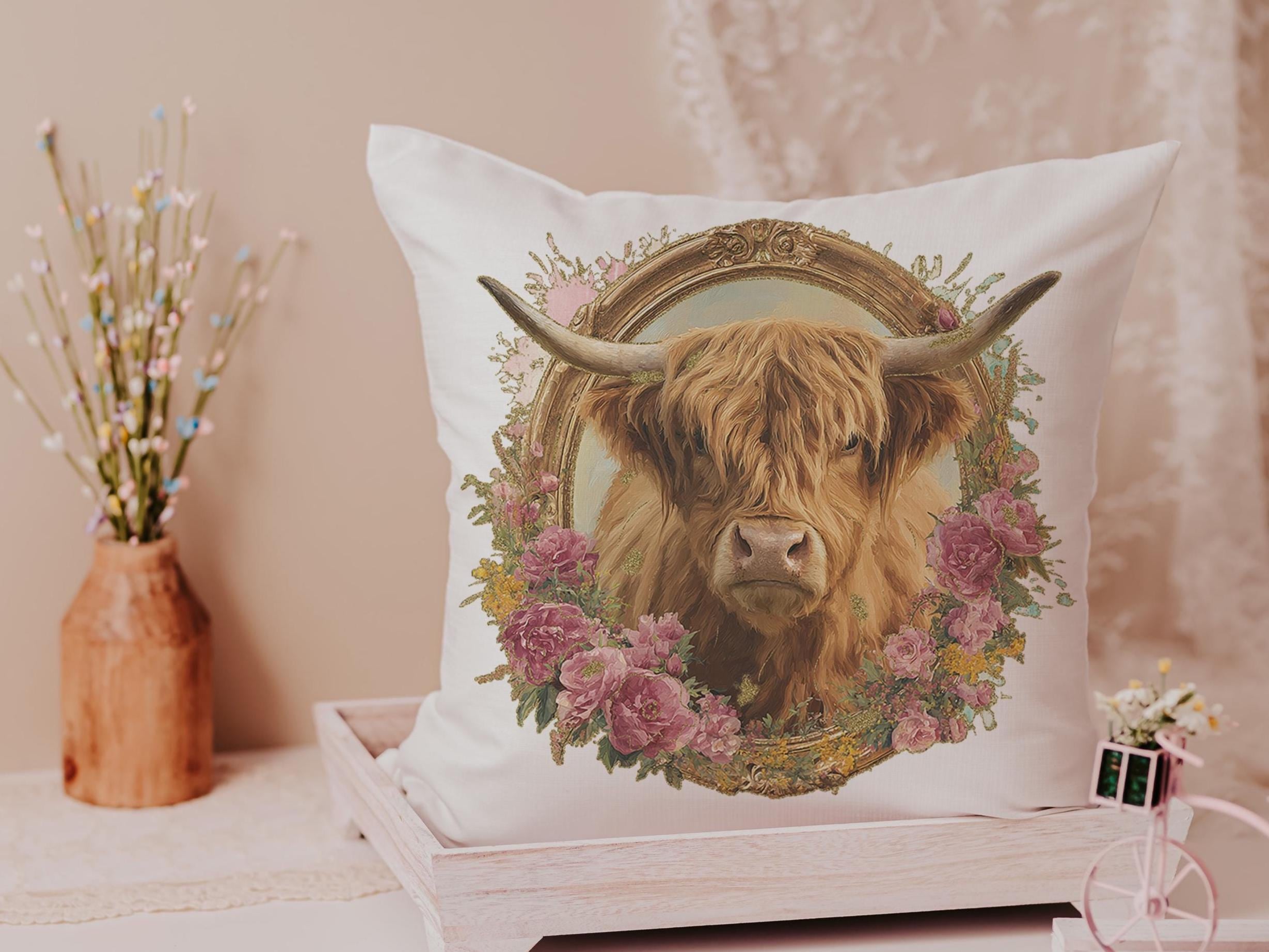 highland cow throw pillows for couch floral decorative pillows for nursery, secret Santa gifts for her, cute cow gifts for cow lovers, best