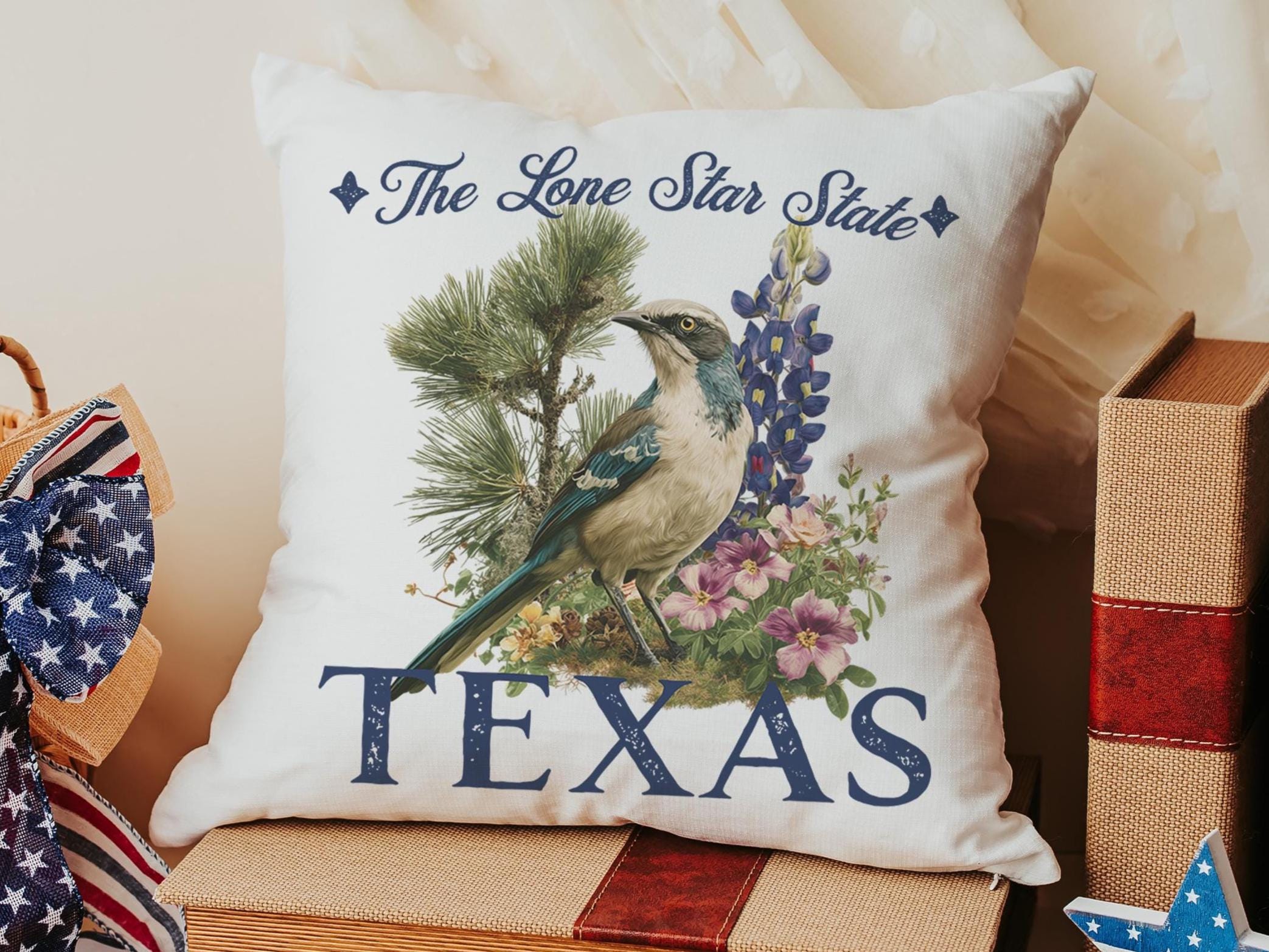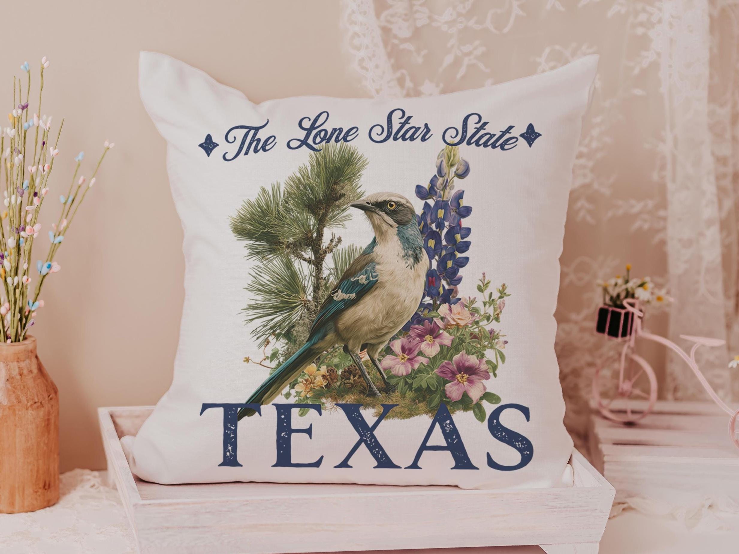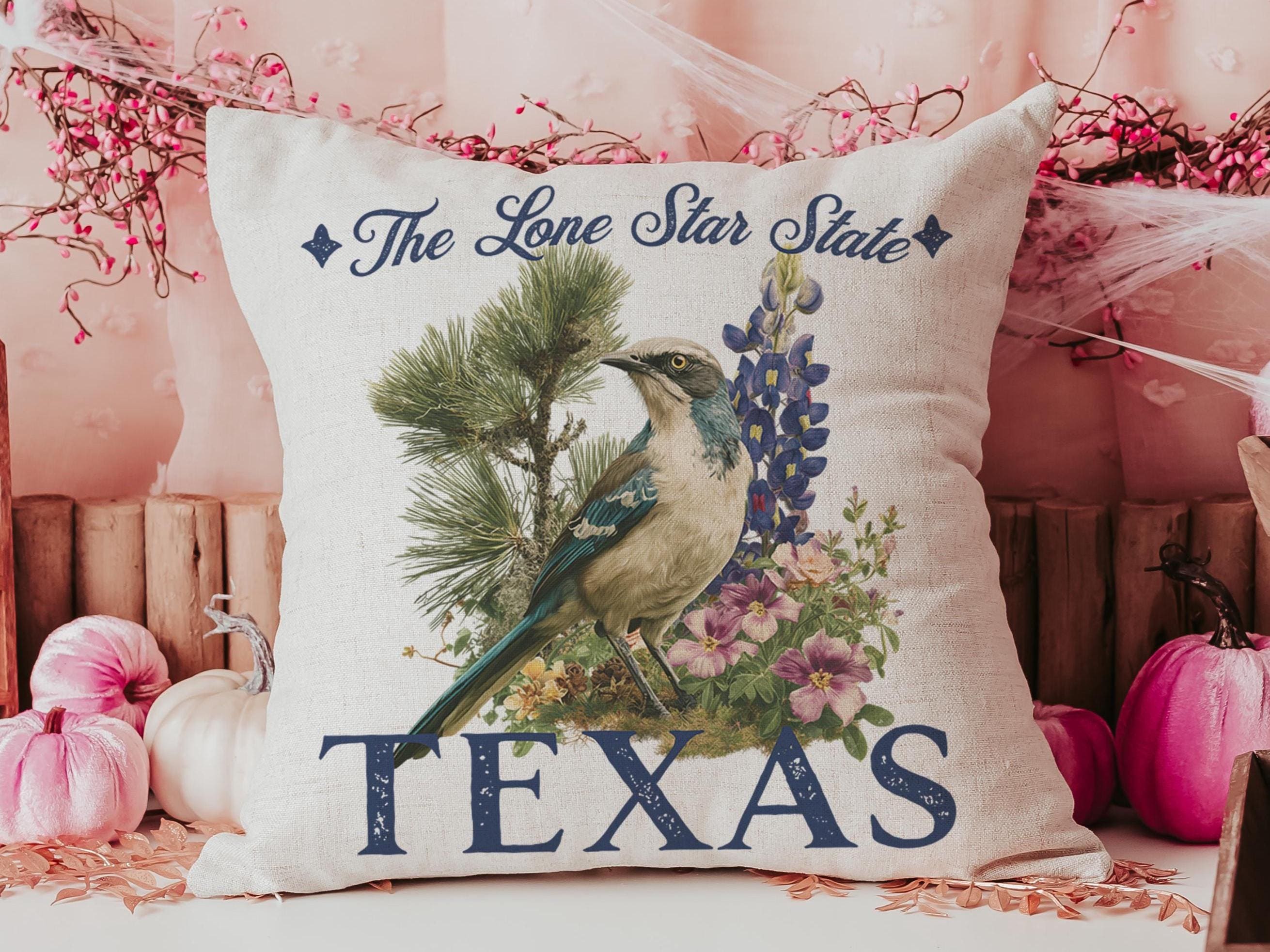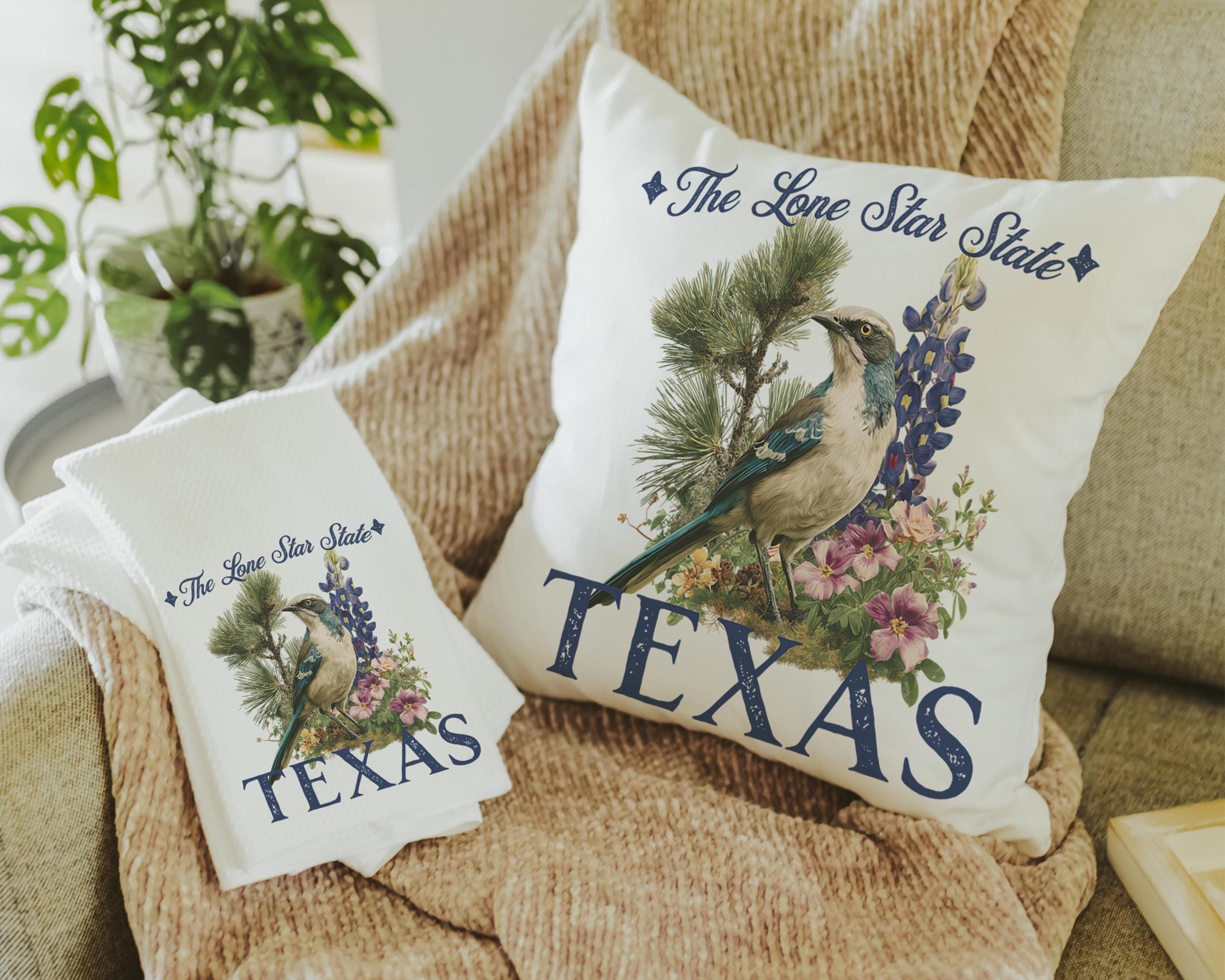 floral Texas throw pillows for couch, Texas home gifts for Mom, bluebonnet gifts, Texas Christmas gifts for neighbors, Lone Star State decor