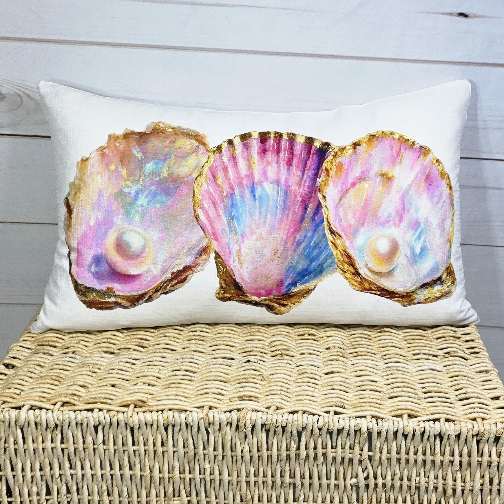 beach lumbar pillows for bedroom, opalite pearl oyster throw pillow for couch, beach Christmas gifts for beach lovers, coastal decorative